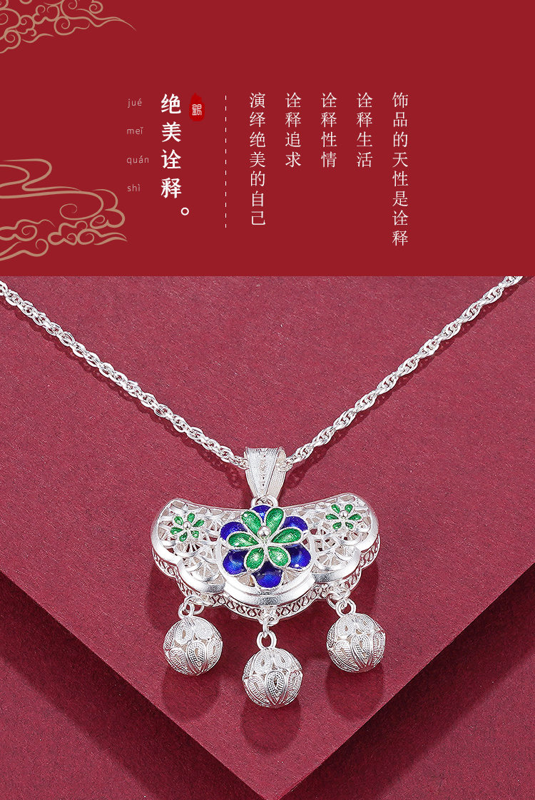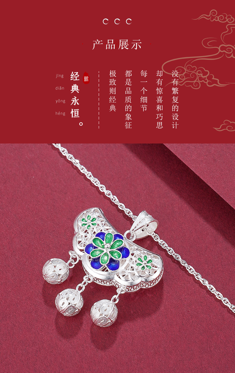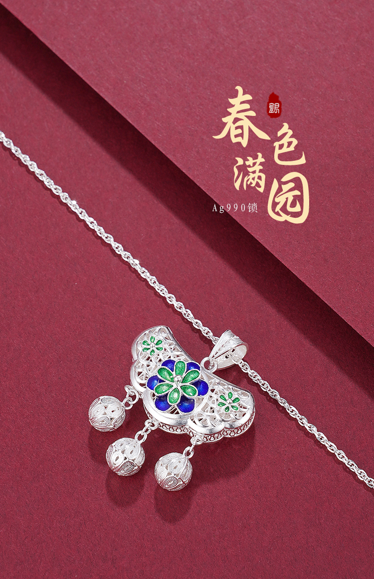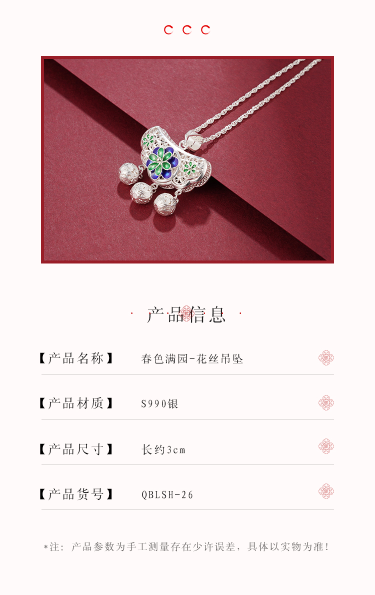 【春色满园】子佩集S990银花丝锁吊坠【QBLSH-26】 (不含链)珐琅彩花丝2004204