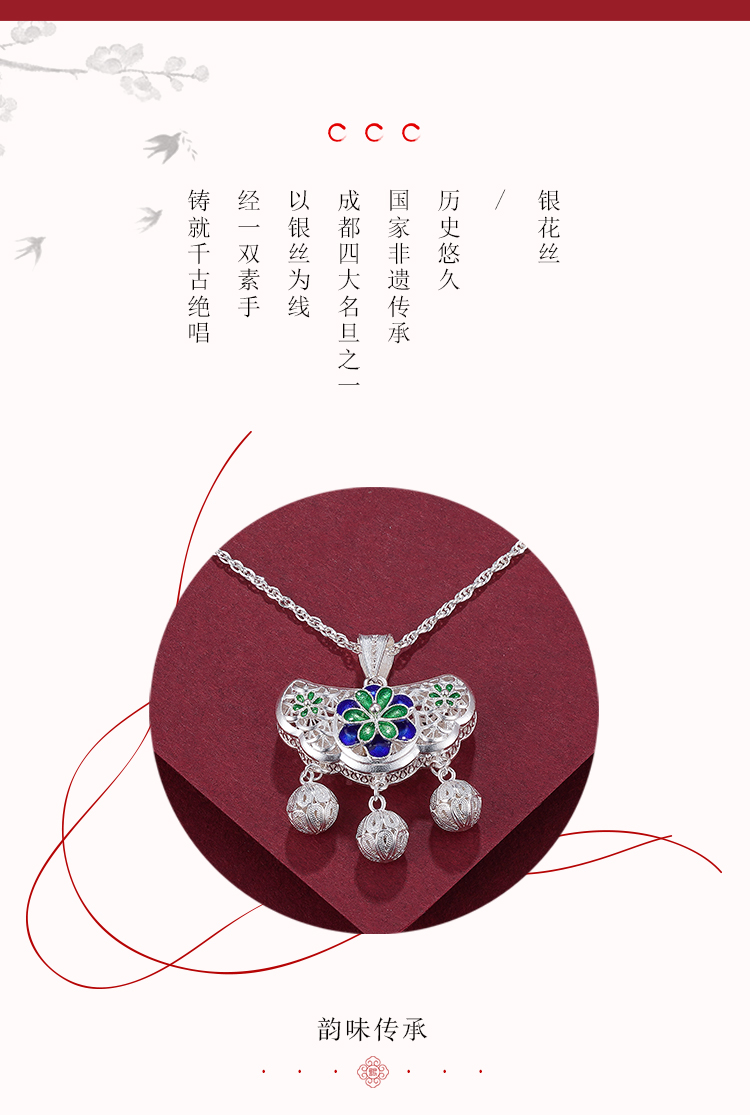- 国家级非遗项目成都银花丝优秀传承单位 四川工艺美术行业协会副会长单位 四川传统文化促进会常务副会长单位 成都非物质文化遗产保护中心协会会员单位 国货品牌 历史400余年