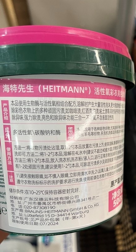 海特先生(HEITMANN™)活性氧彩衣亮色除渍粉500g