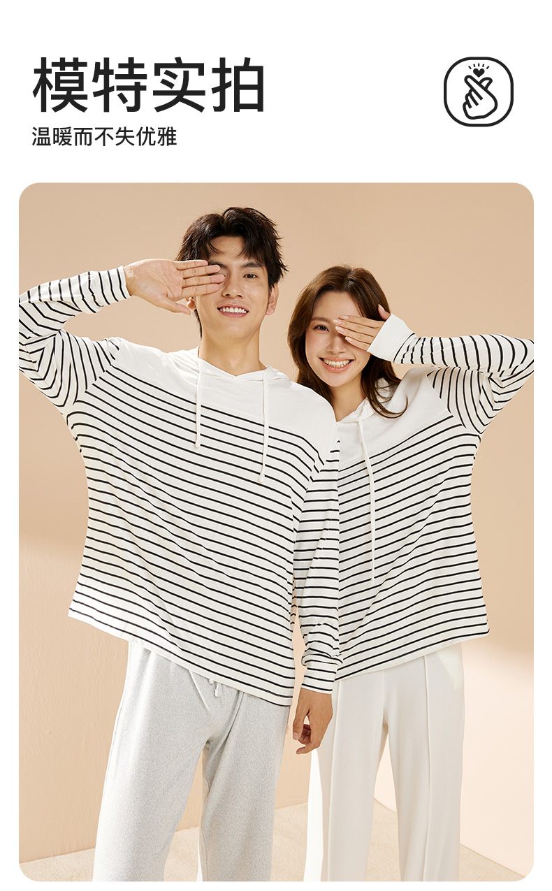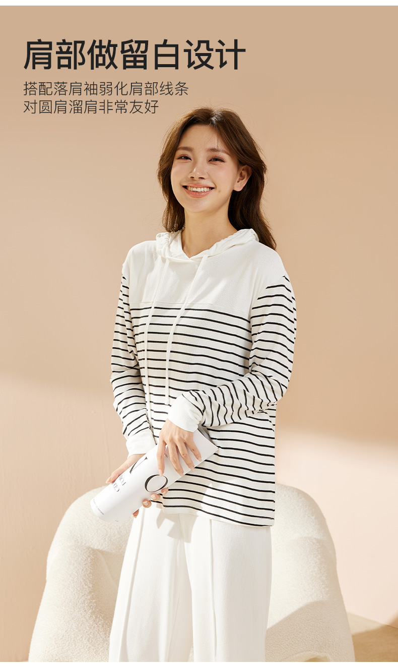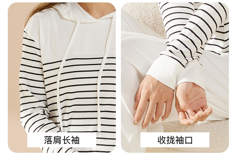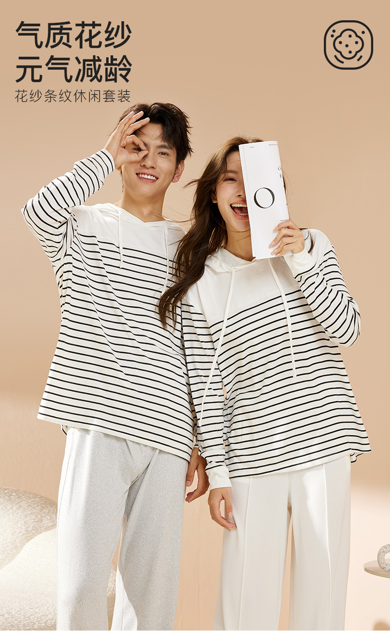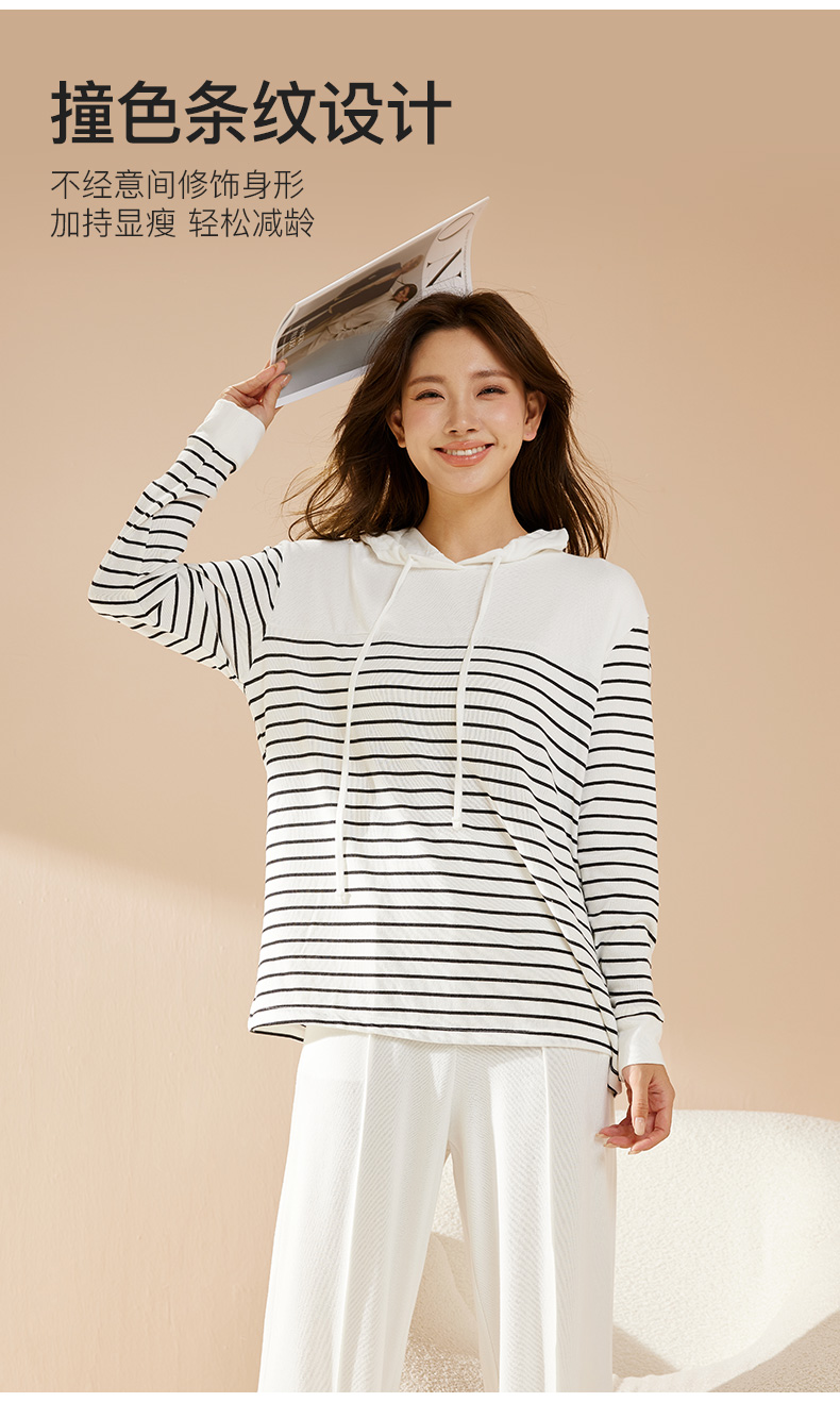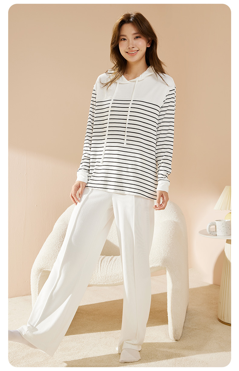 I'd爱帝绵柔云感花纱居家服经典条纹长袖休闲套装