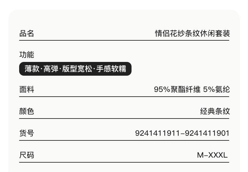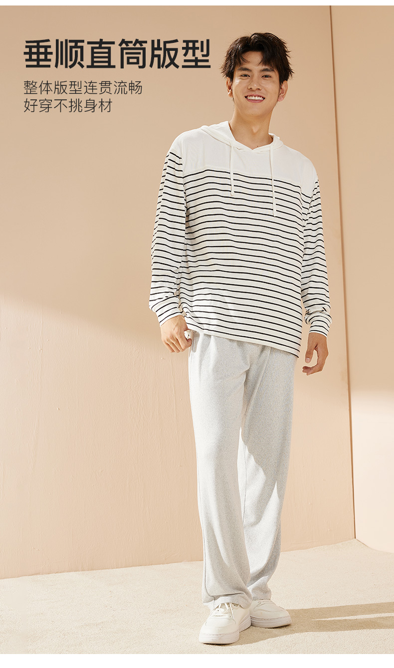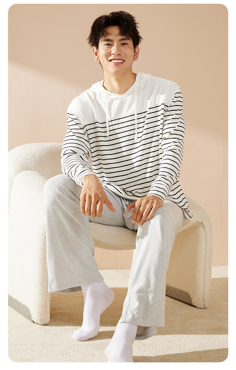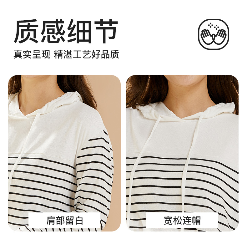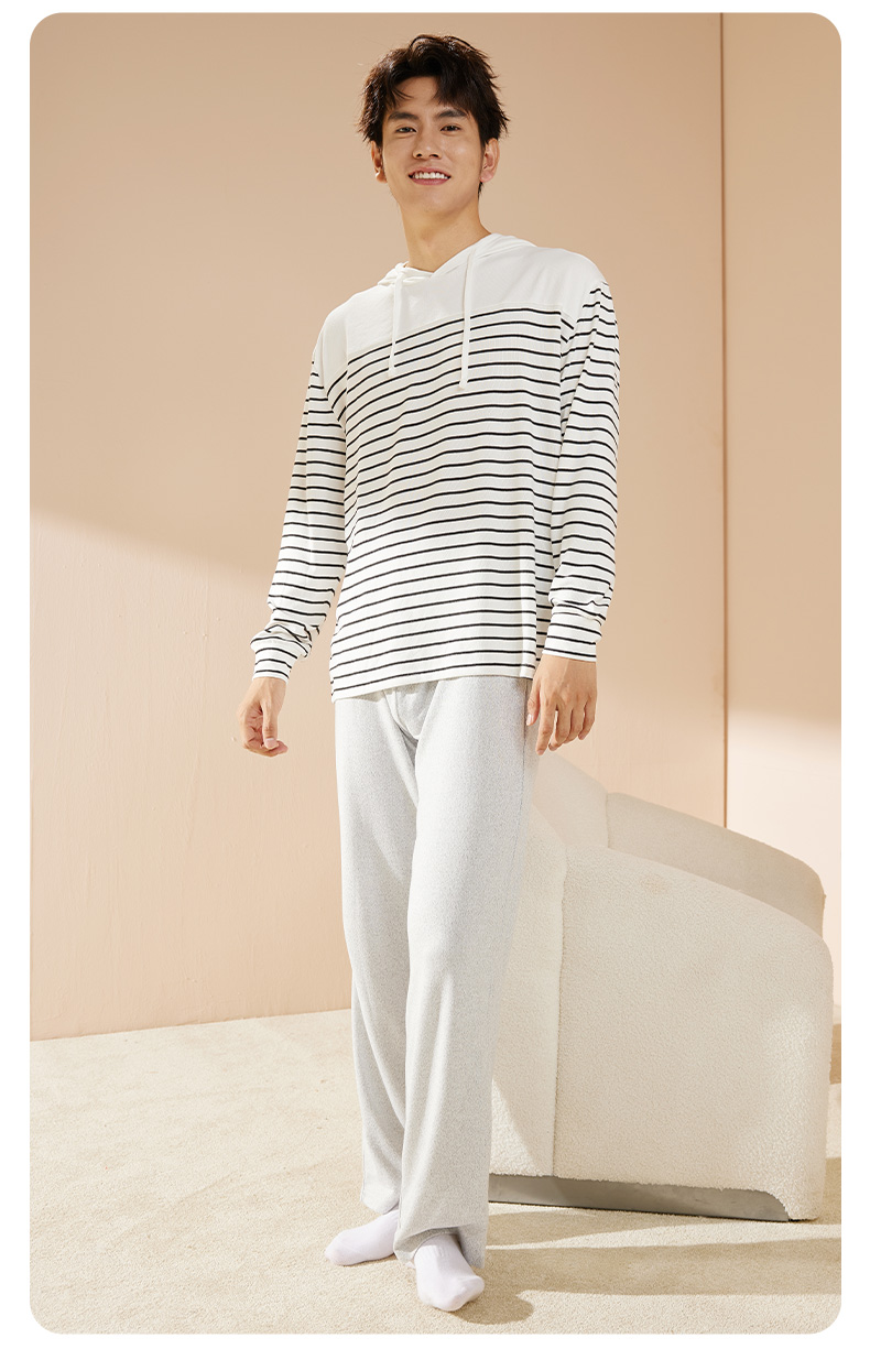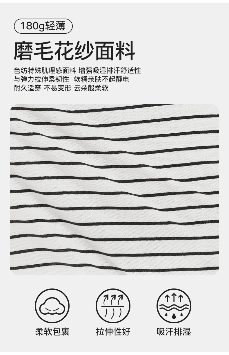 I'd爱帝绵柔云感花纱居家服经典条纹长袖休闲套装