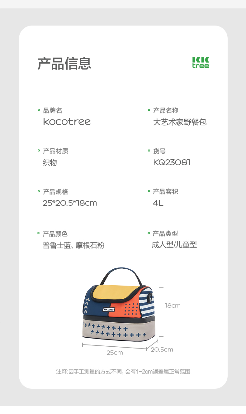 KK树饭盒保温袋户外野餐包春游儿童露营手提袋铝箔两层干湿分离