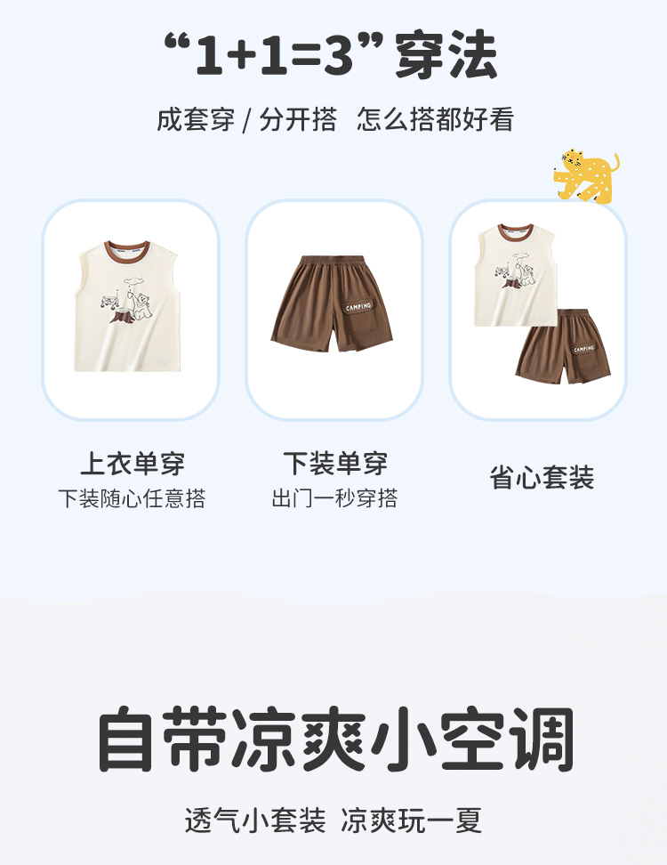 【凉感抑菌套装】【90-140】【MQDmini】男童背心短裤套装