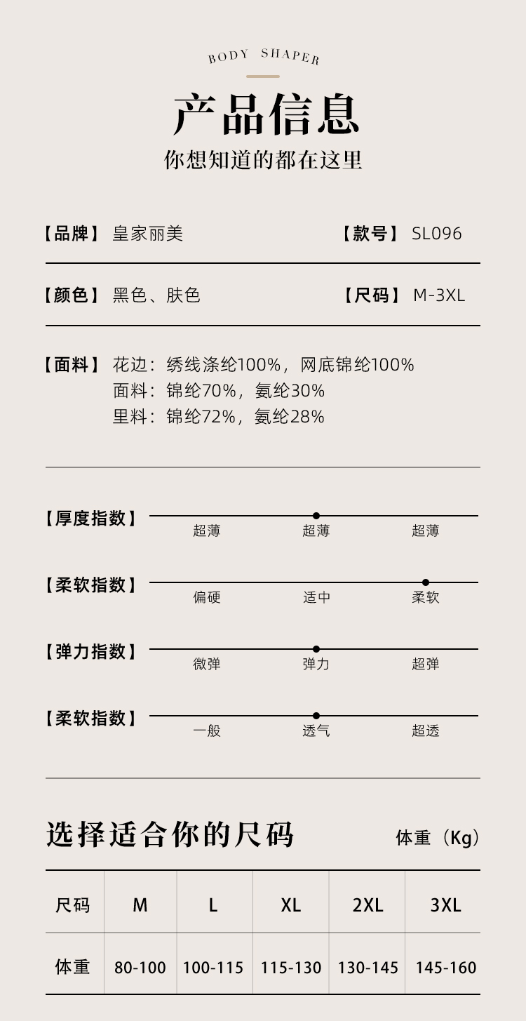 皇家丽美收腹束腰美体显瘦翘臀塑身内衣连体塑形乳SL096