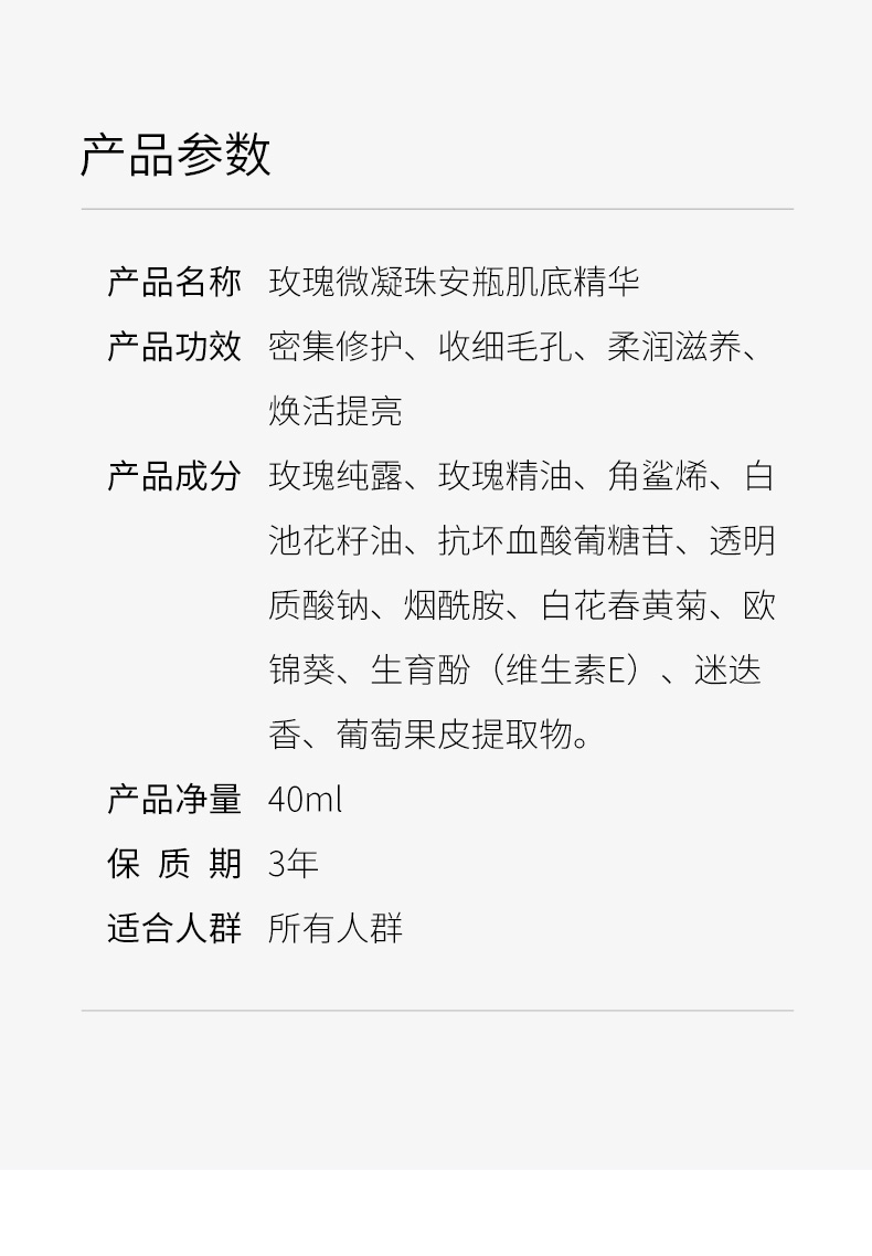 “油包水” 补水又补油,用前摇一摇哦!玫瑰微凝珠安瓶肌底精华 40ml