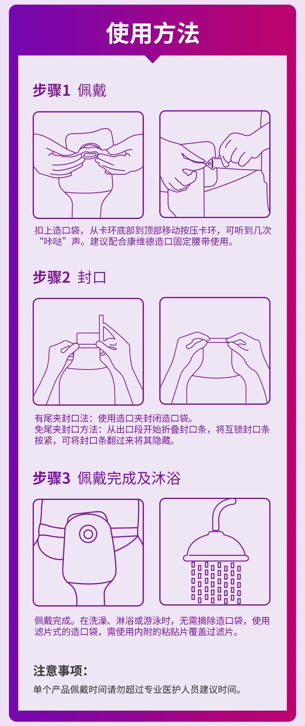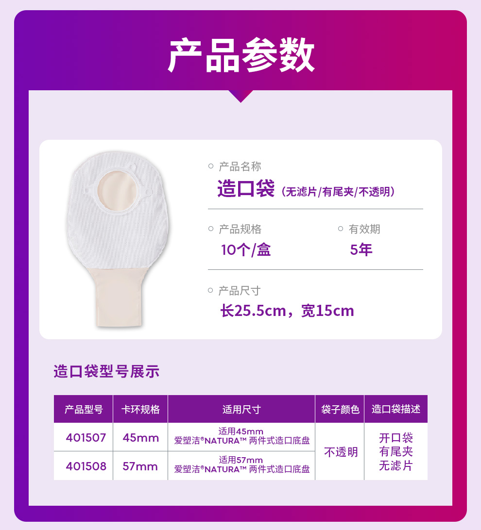 康维德NATURA两件式有尾夹不透明开口造口袋 401507 401508
