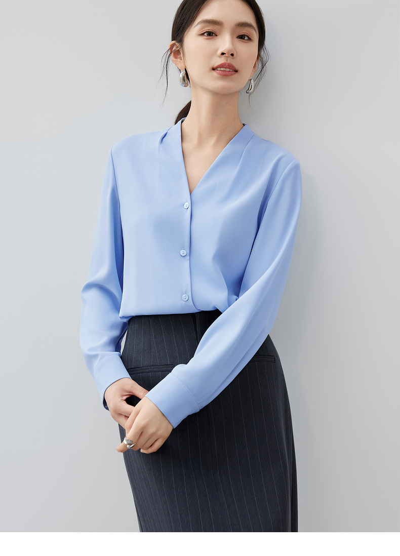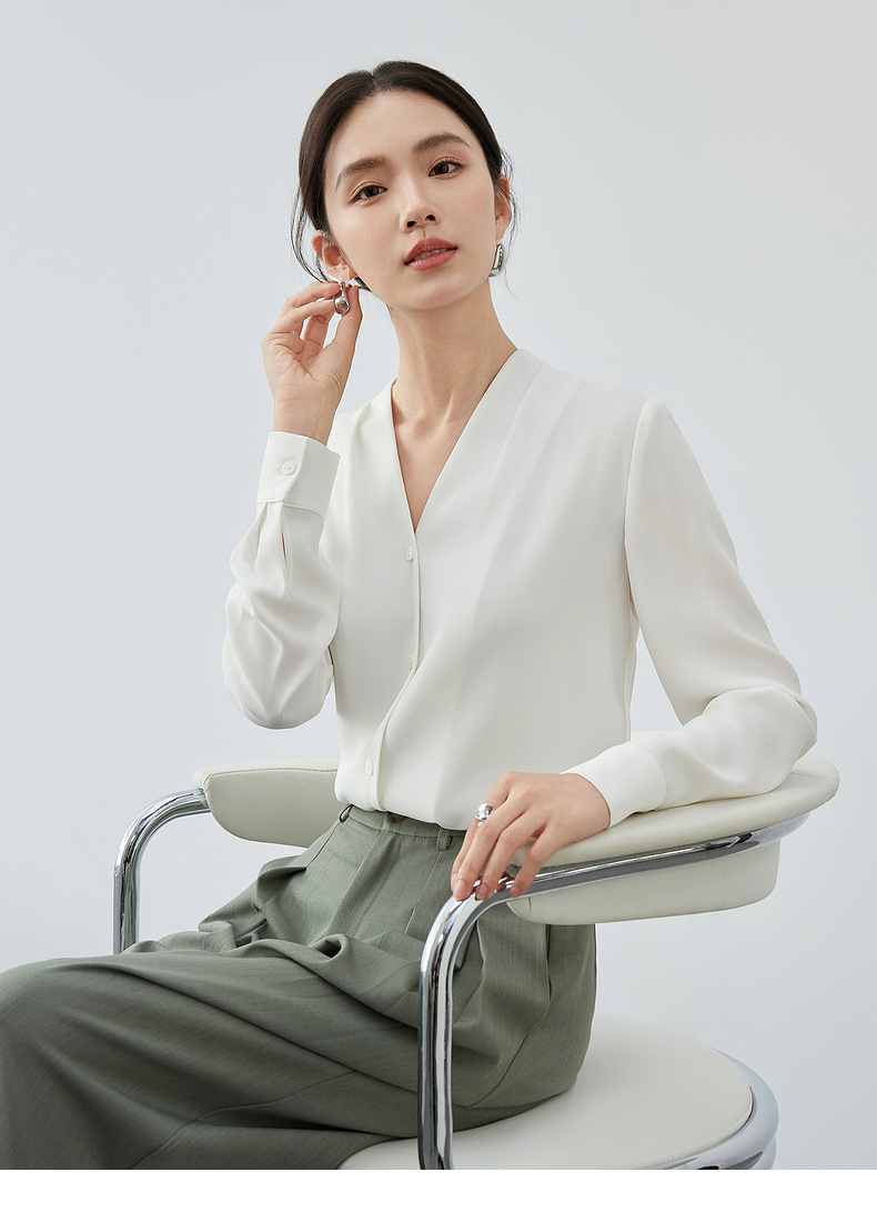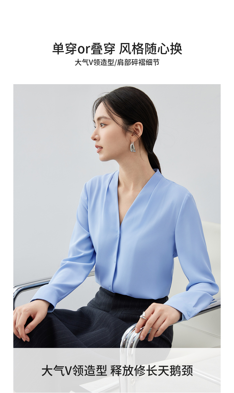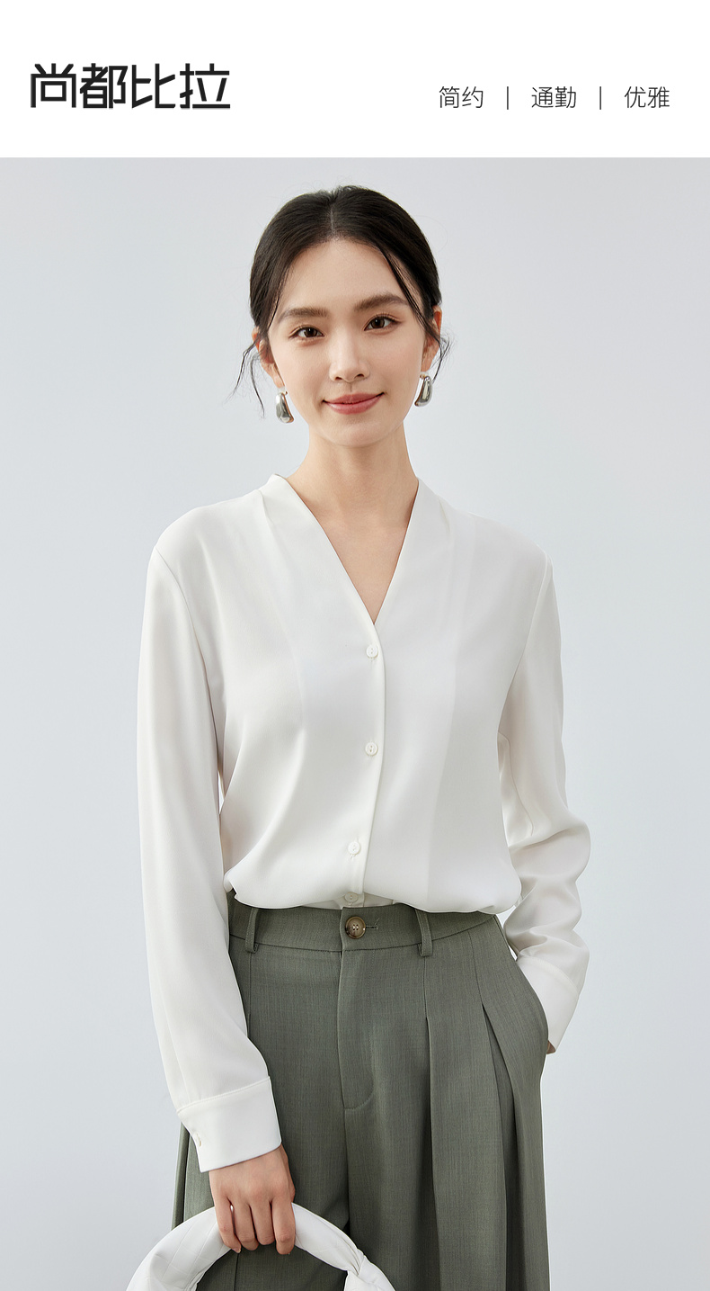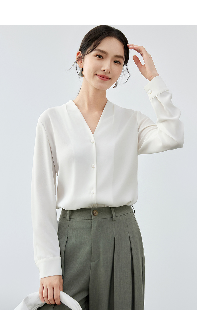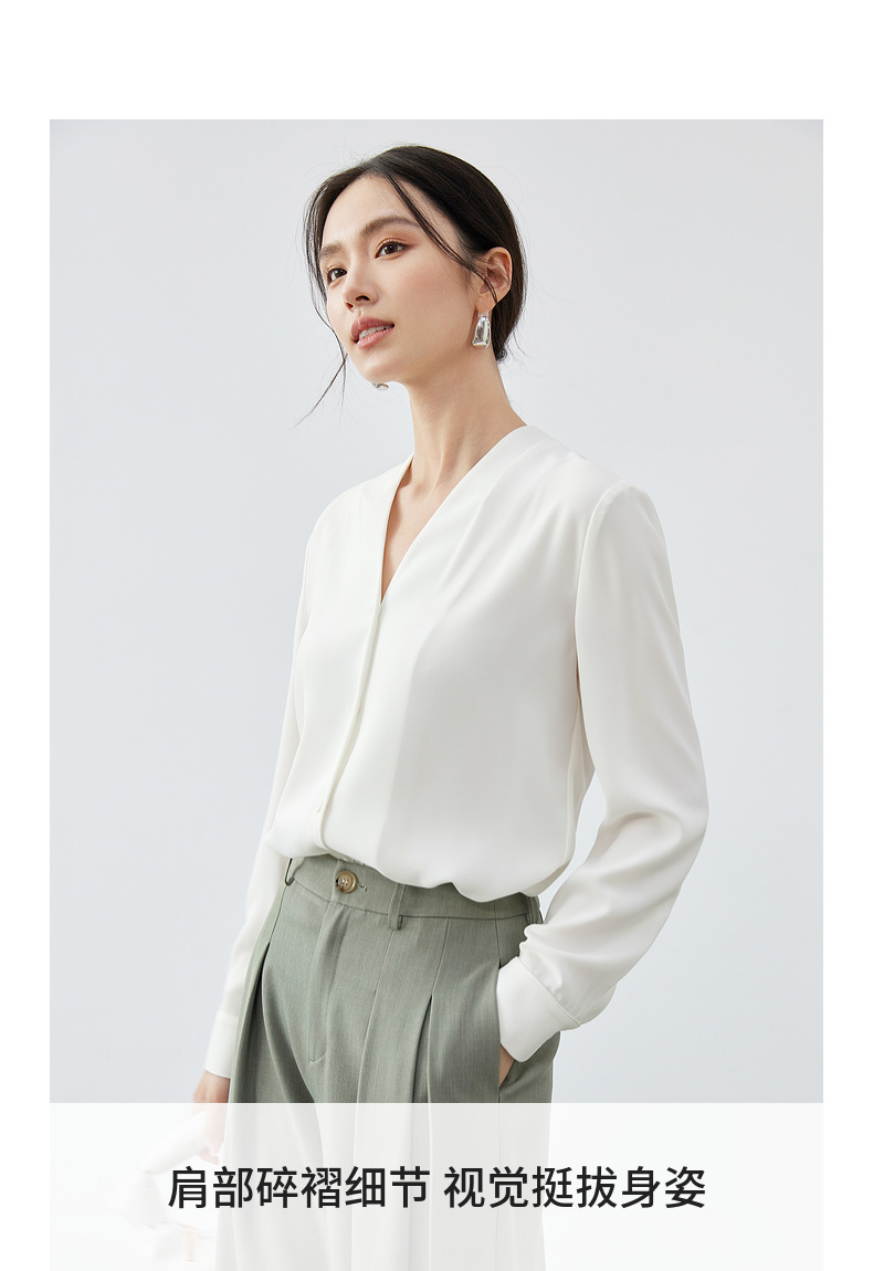 【内购】通勤王利落轻职场V领垂感显瘦面试正装OL打底上衣叠穿白衬衫-151C56196