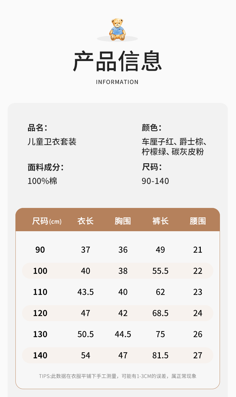 【两件套】【精典泰迪】【90-140】男童休闲卫衣卫裤套装