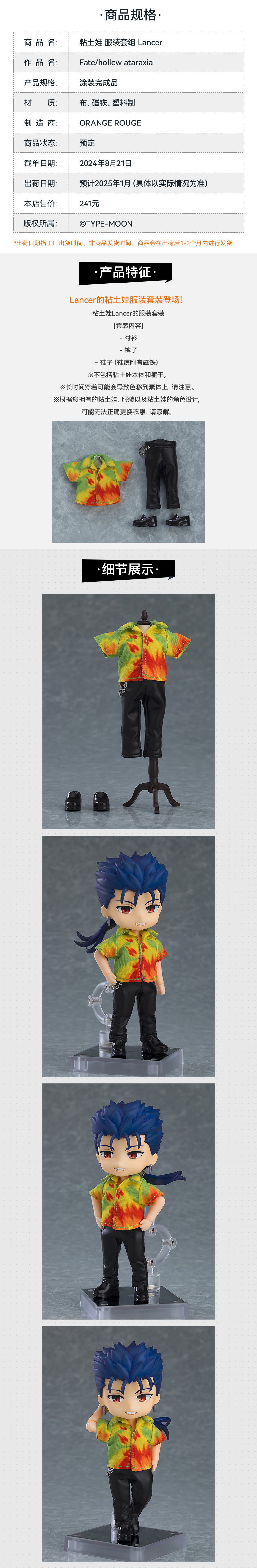 【GSC现货】粘土娃 Lancer/服装套组 Lancer Fate/hollow ataraxia