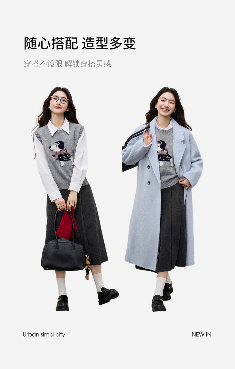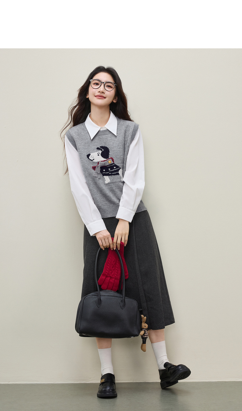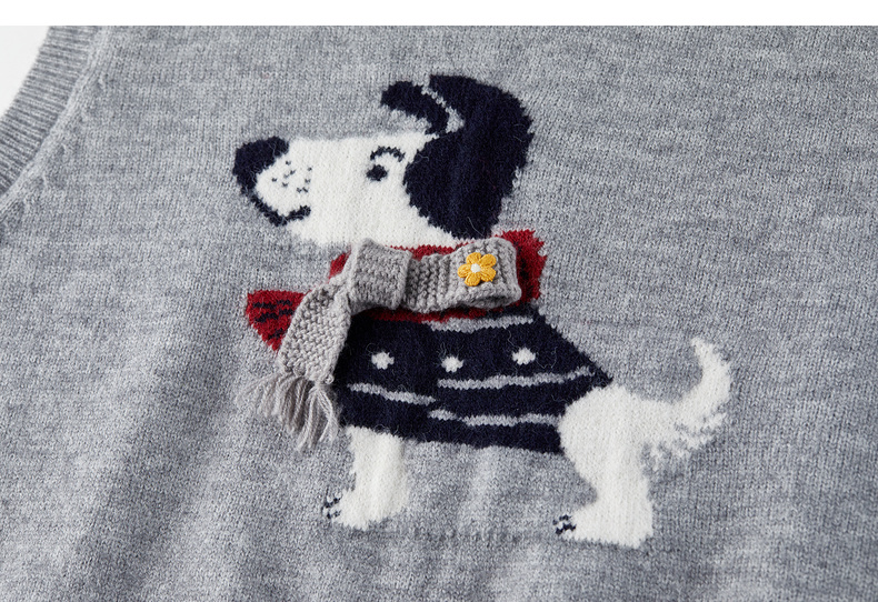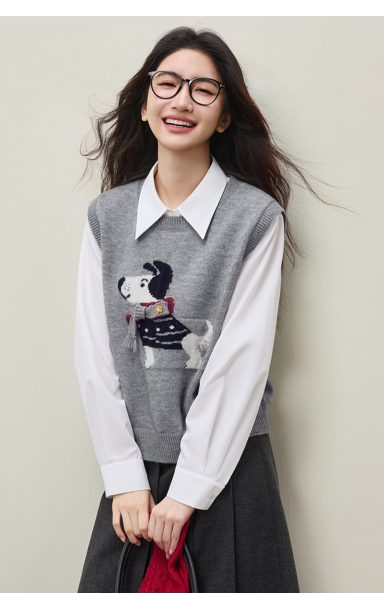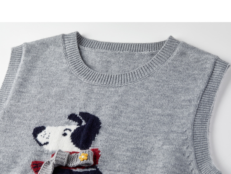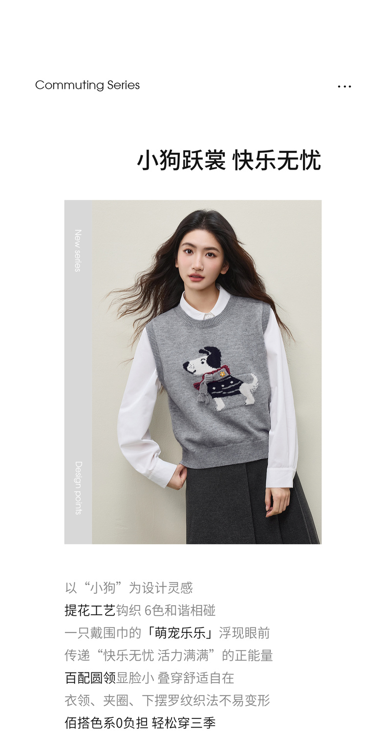 【内购】【萌宠乐乐】休闲通勤圆领提花小狗图案弹力厚穿三季毛织马夹-W54JB5368