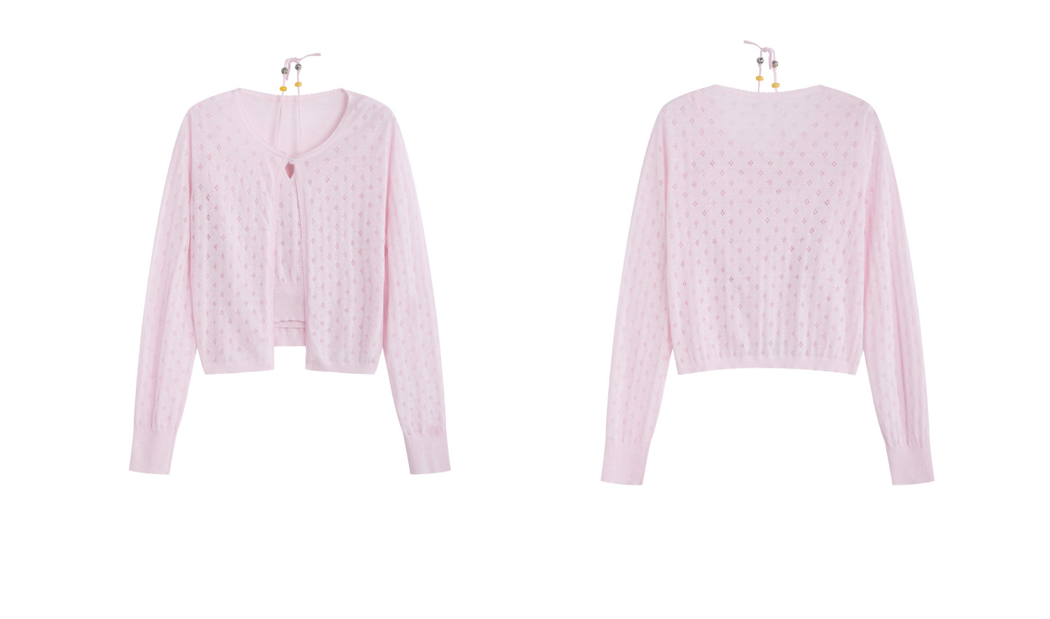 HERLIAN 2026年夏季新品提花镂空吊带开衫两件套女士针织衫