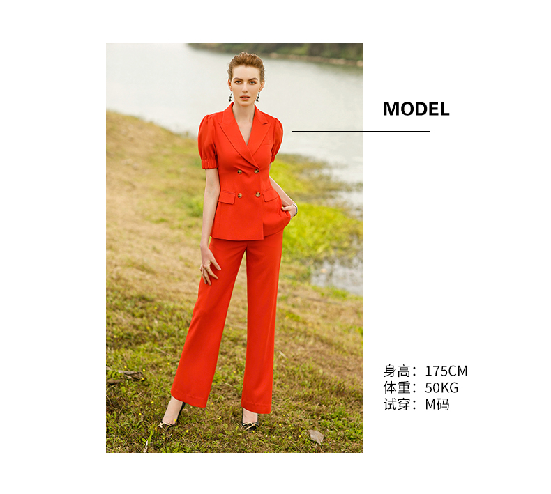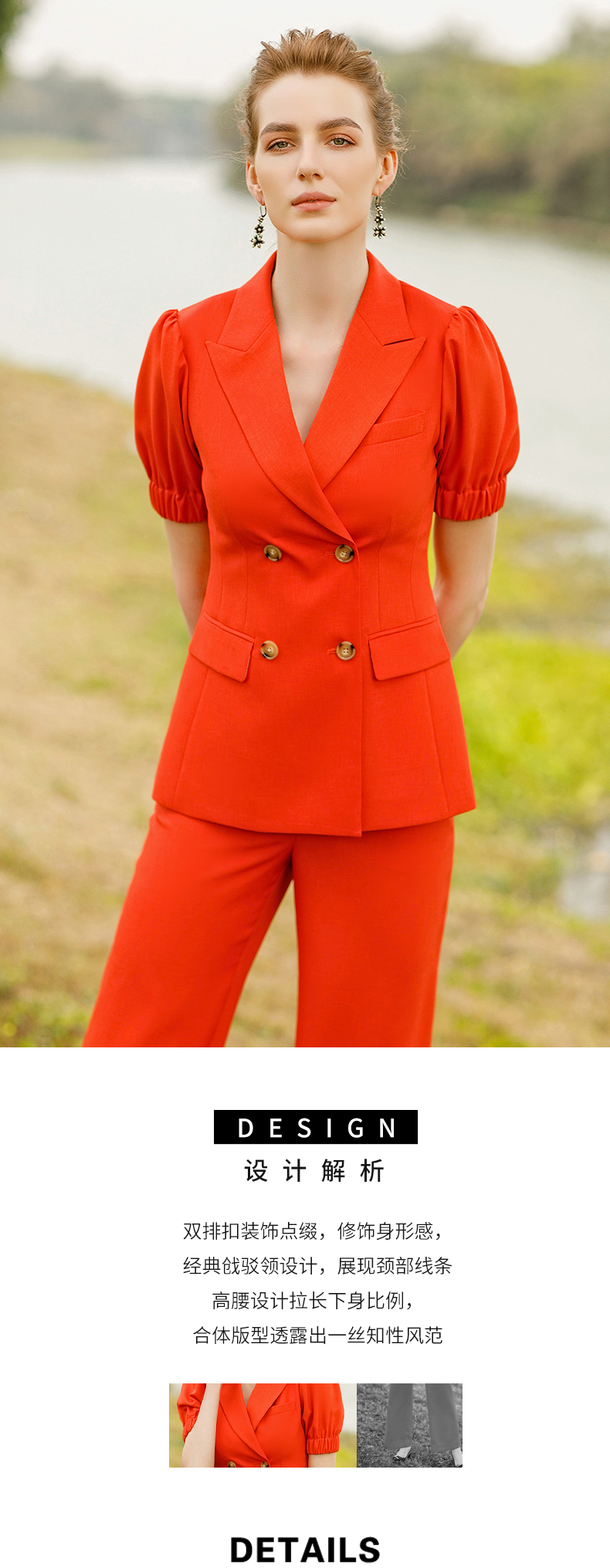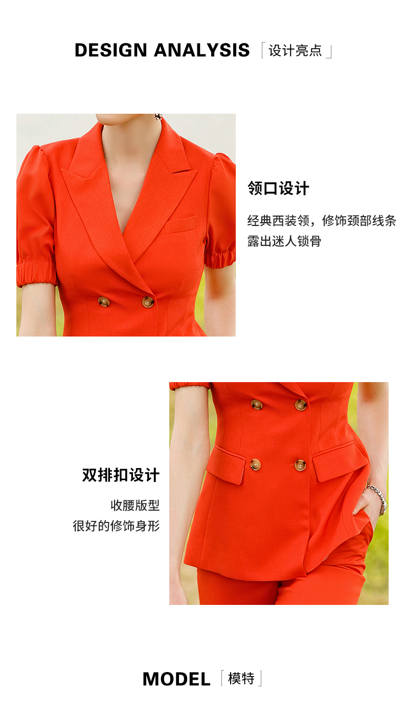 IWY/红色西装套装女夏季薄款高级感职业装短袖美容院工作服主持人正装222063C1+P2