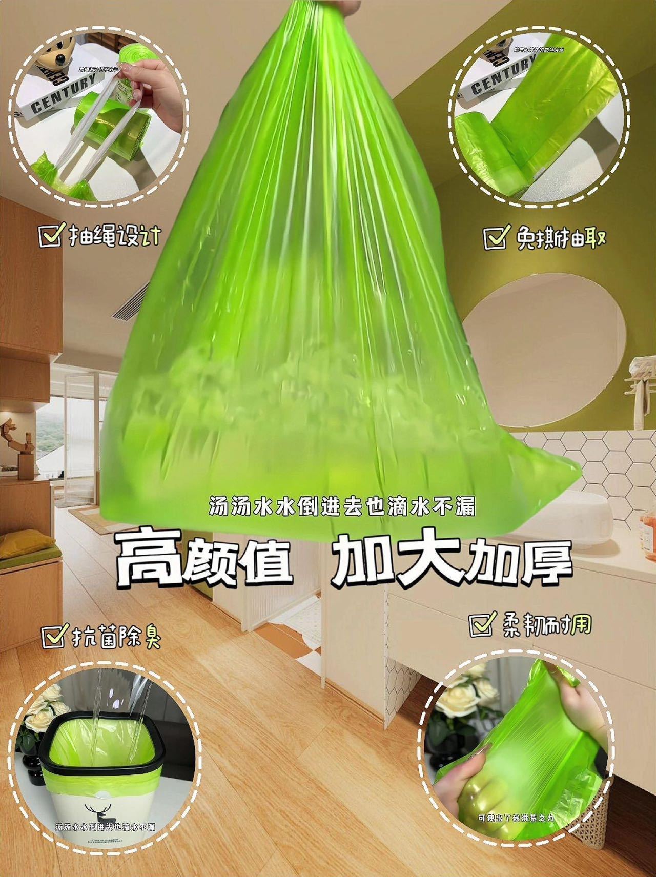 ✅加厚的设计可以装更多的垃圾且不昜破漏