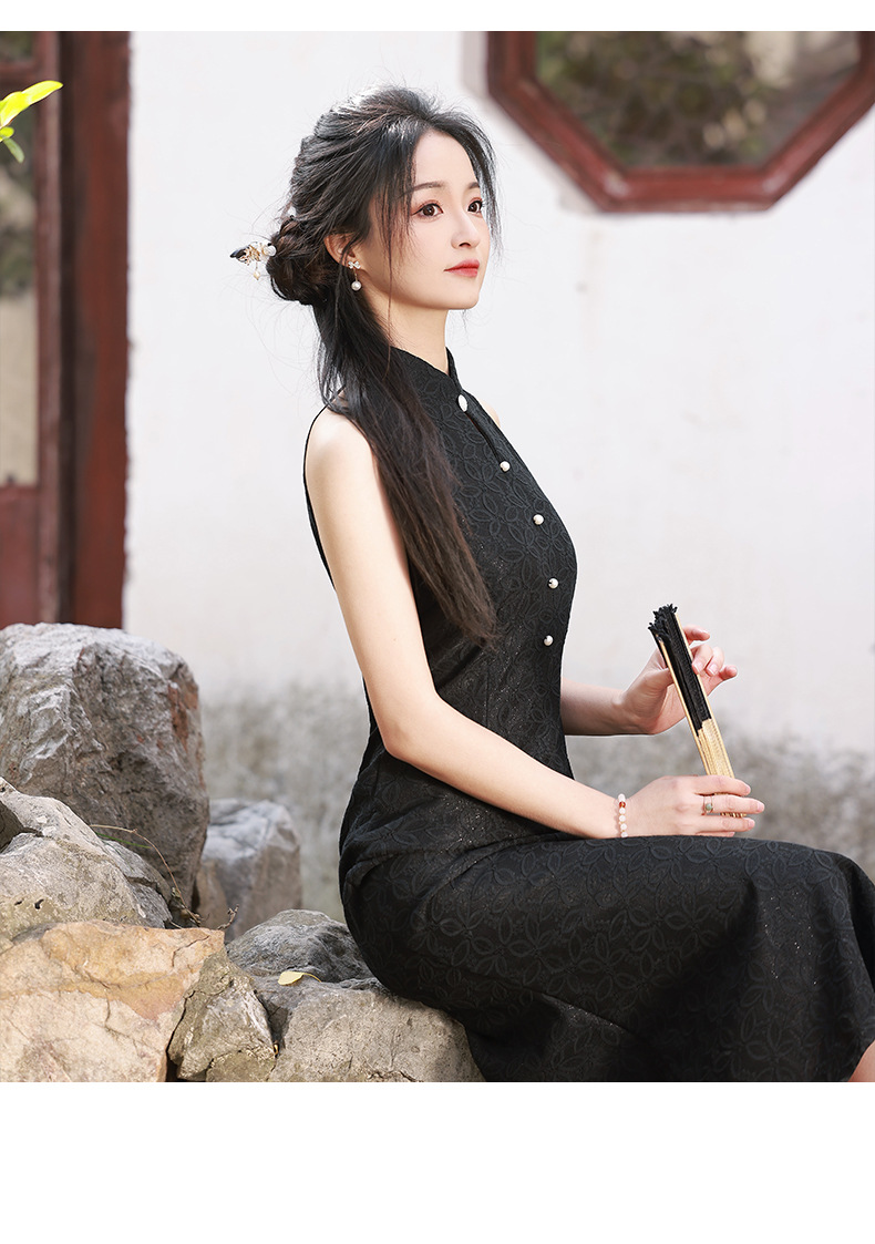 复古少女中国风鱼尾蕾丝旗袍BJS5372