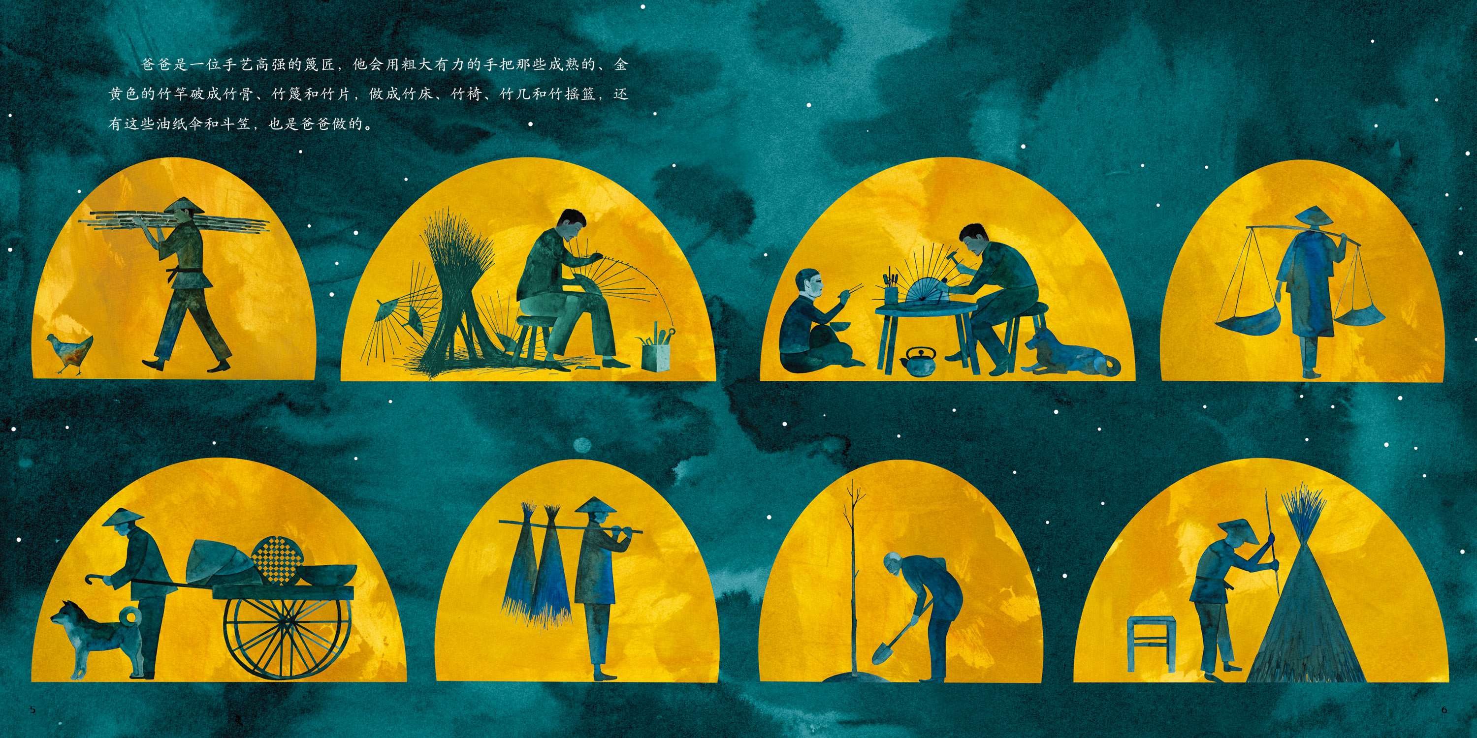 中国传统文化与外国插画师的碰撞,颇具看点。舞龙灯、剪纸、油纸伞、竹子等元素充满传统文化风情。