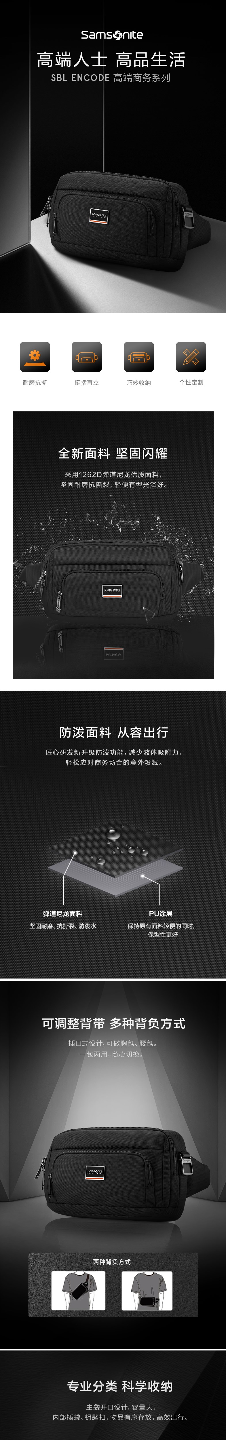 新秀丽SBL ENCODE高端黑标系列 男士商务休闲时尚单肩包HO0*012