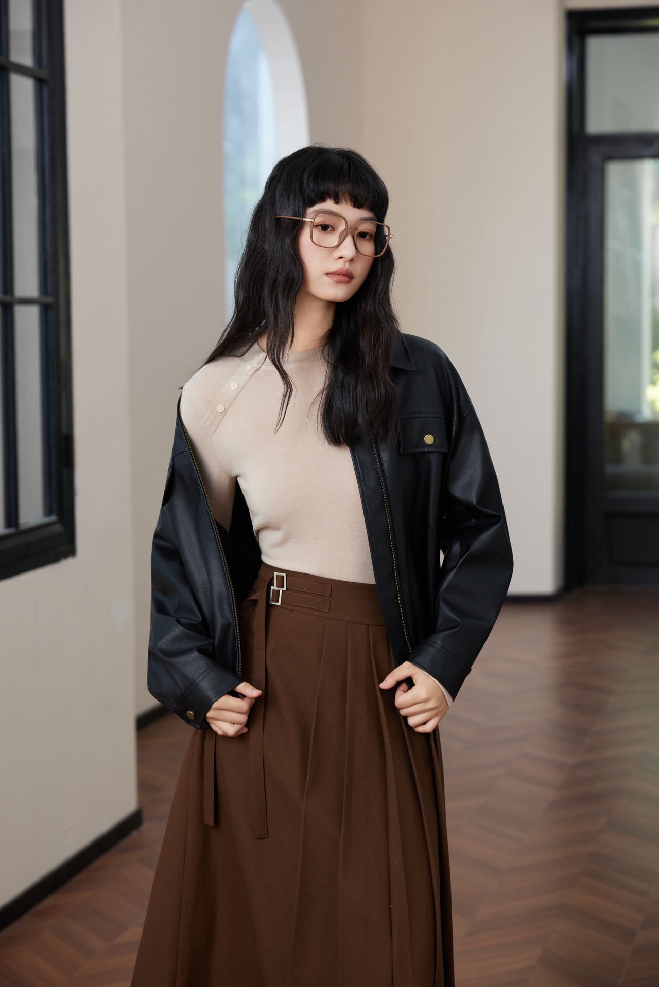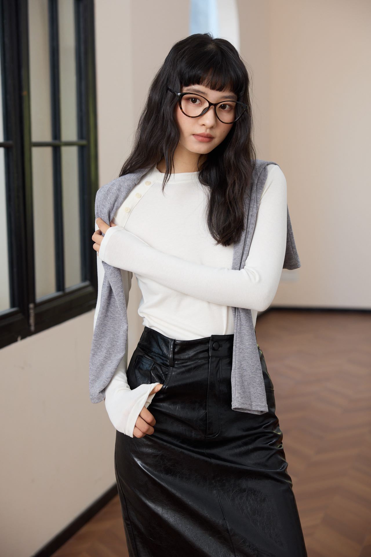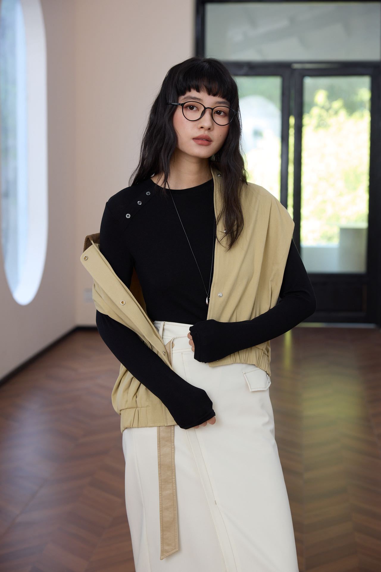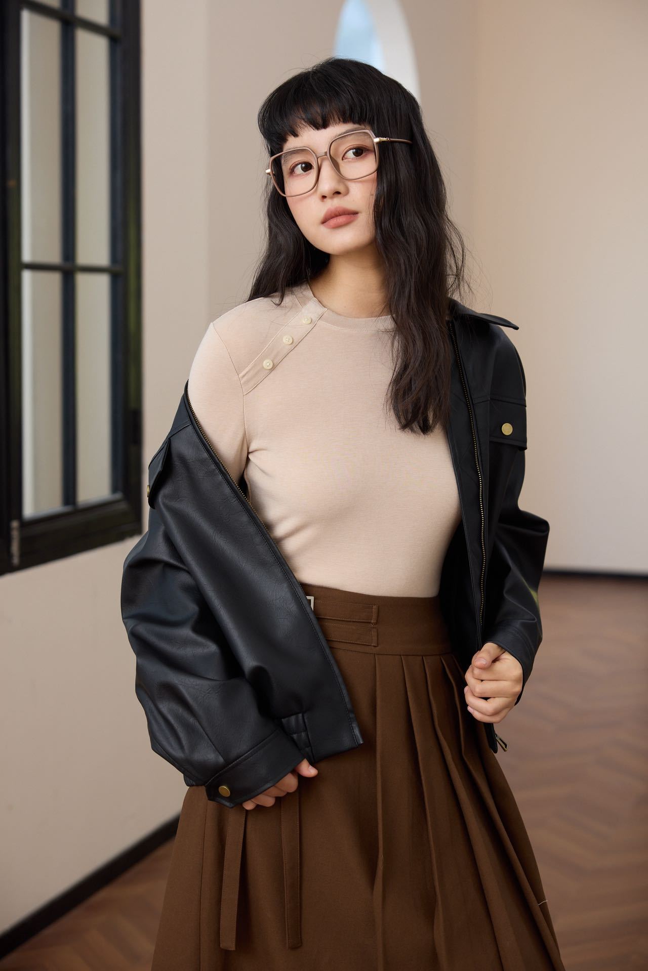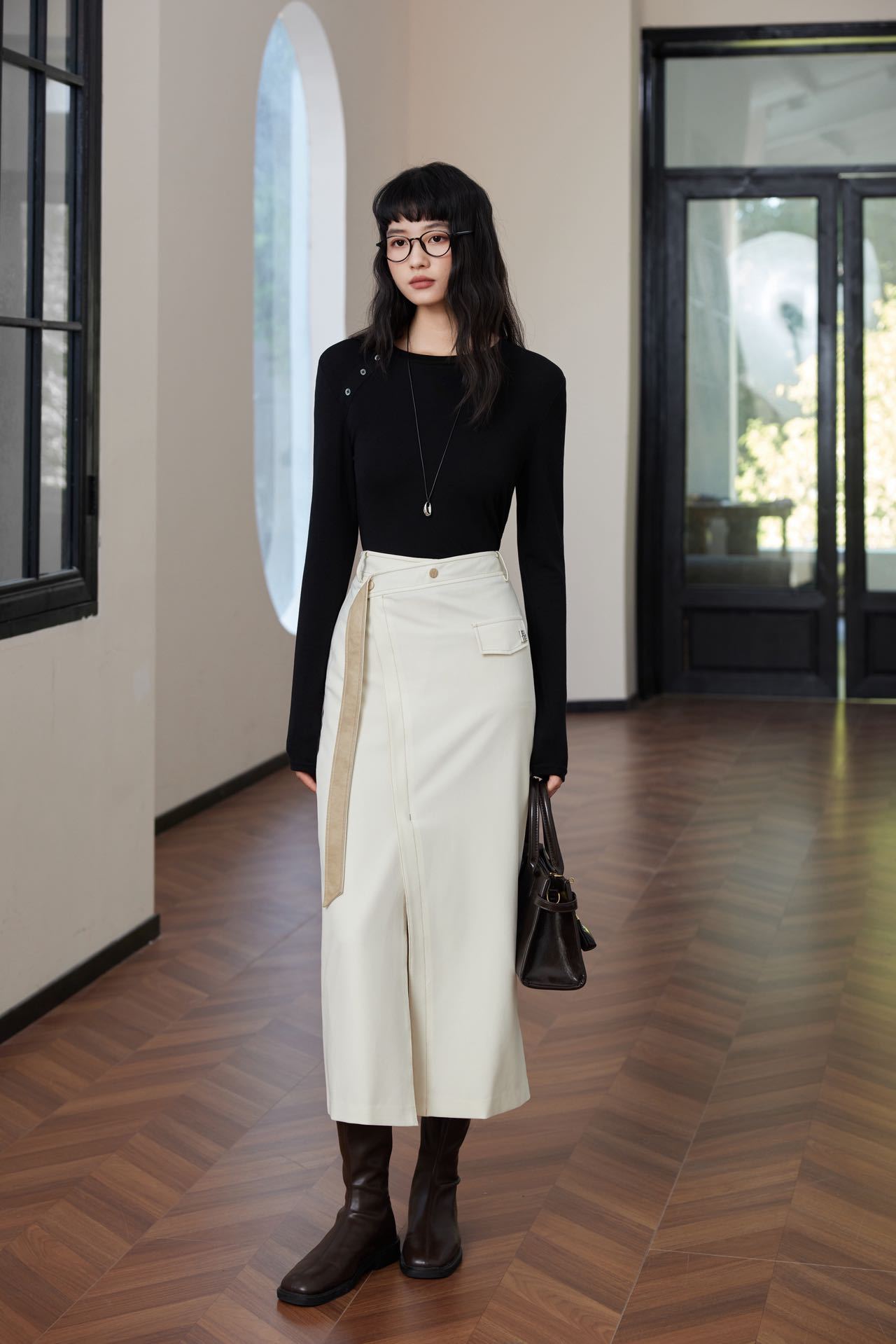 会呼吸的面料【春夏天丝羊毛轻奢打底衫】领口不对称设计打扣圆领衫 羊毛休闲打底衫撸猫衫