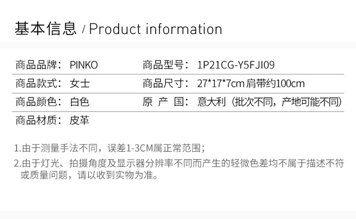 【香港直邮】QHSS19 Pinko 品高 女士挎包 1P21CG-Y5FJI09