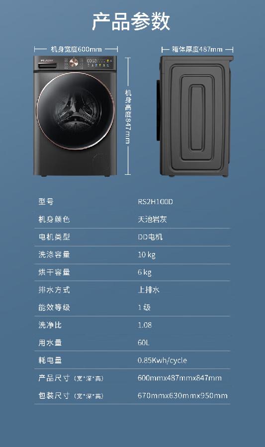 广电优选 美菱LRS1G100D天池岩灰X 10公斤全自动大洗衣机