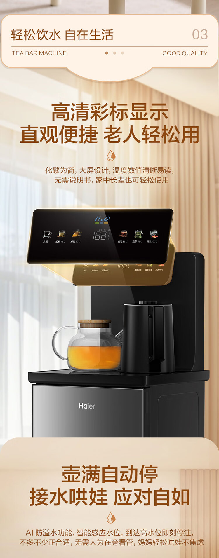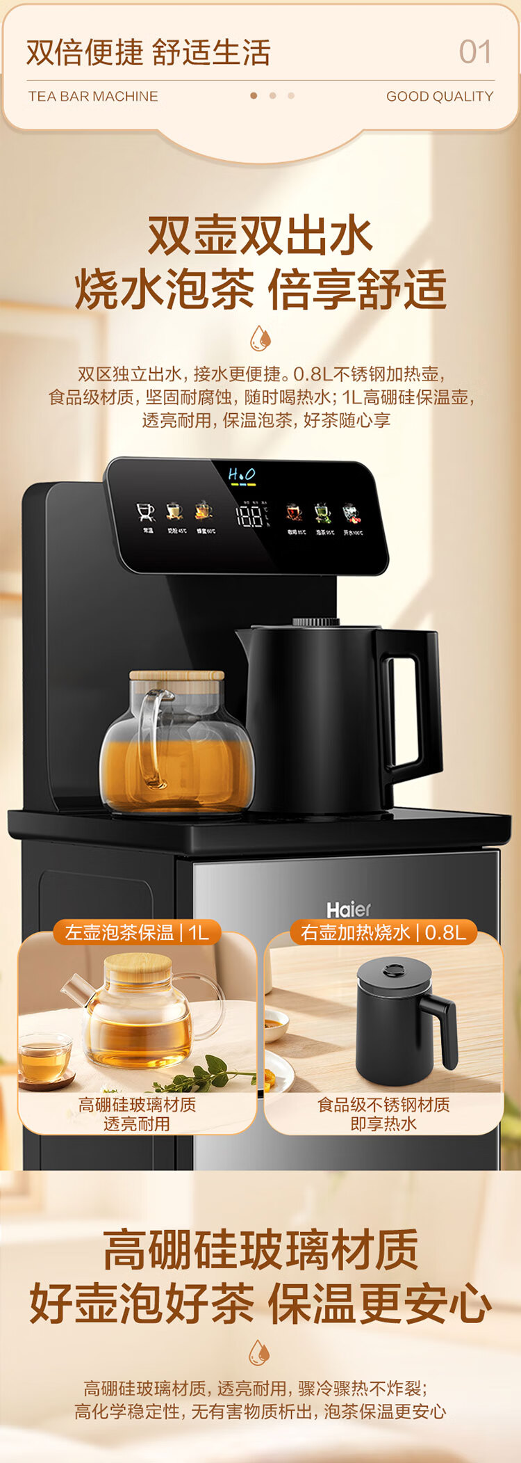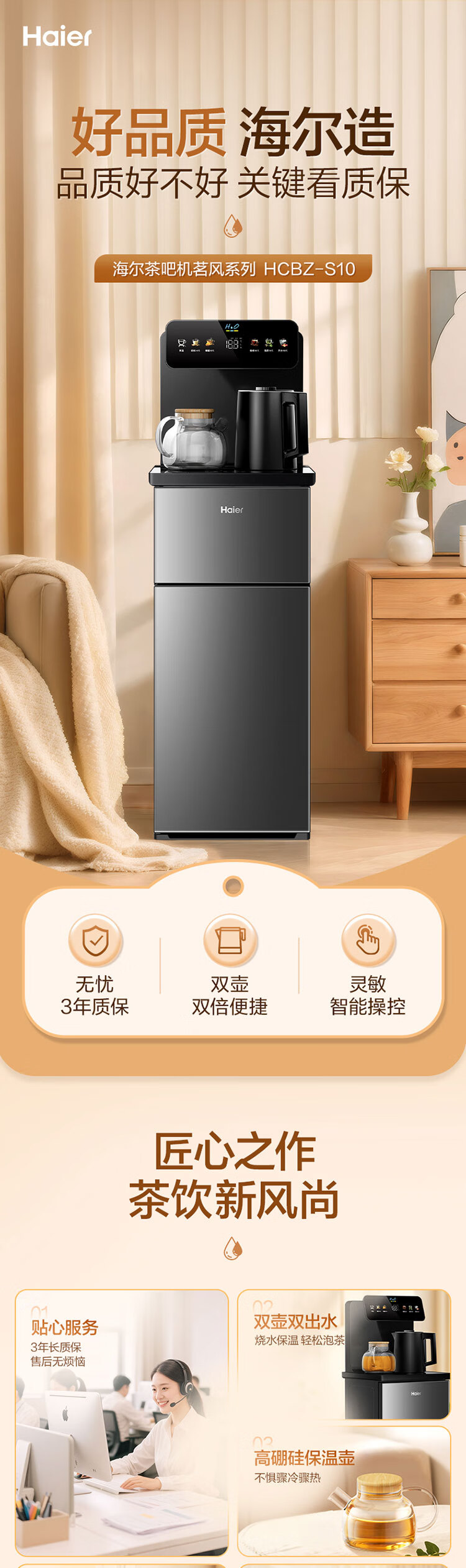 海尔(Haier)智能茶吧机商用立式饮水机高端触控彩屏双出水防干烧防溢水多档调温下置水桶柜办公室专用HCBZ-S10