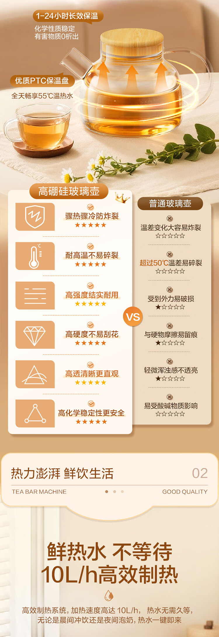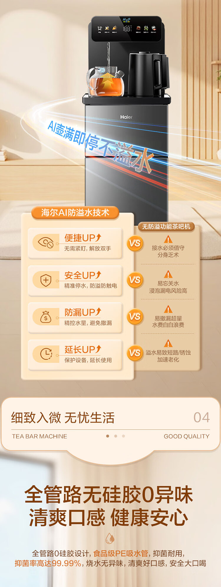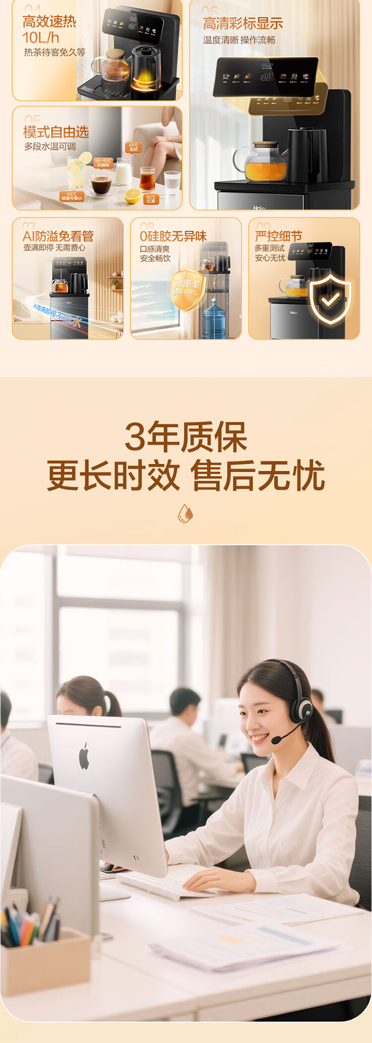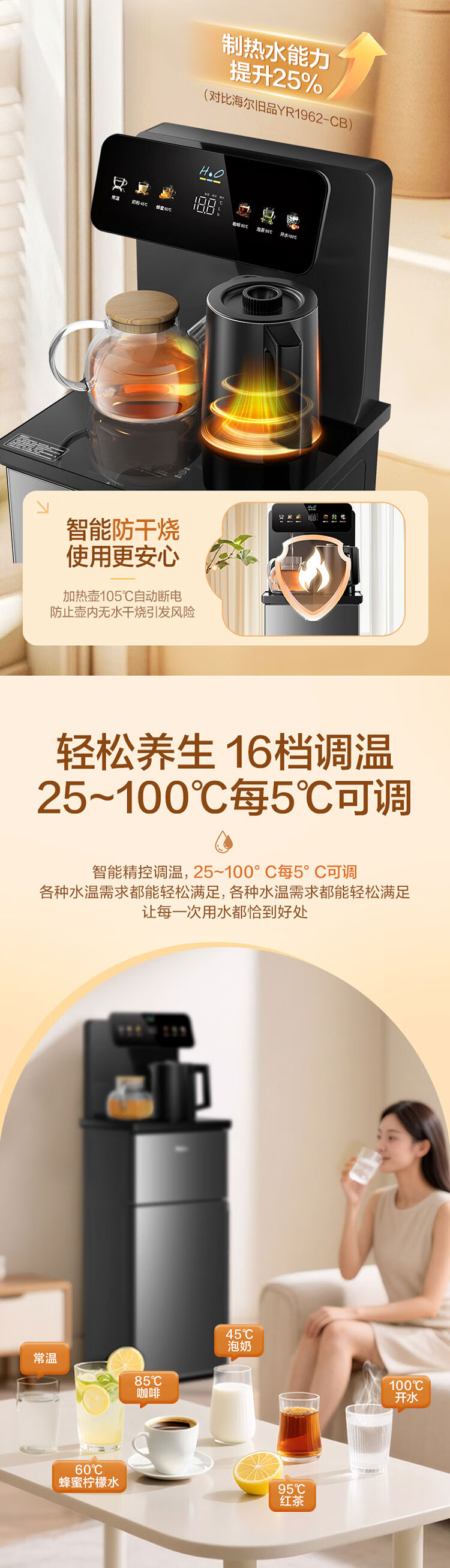 海尔(Haier)智能茶吧机商用立式饮水机高端触控彩屏双出水防干烧防溢水多档调温下置水桶柜办公室专用HCBZ-S10