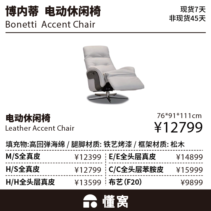 懂窝|博内蒂 电动单人休闲椅 Bonetti Electric Accent Chair