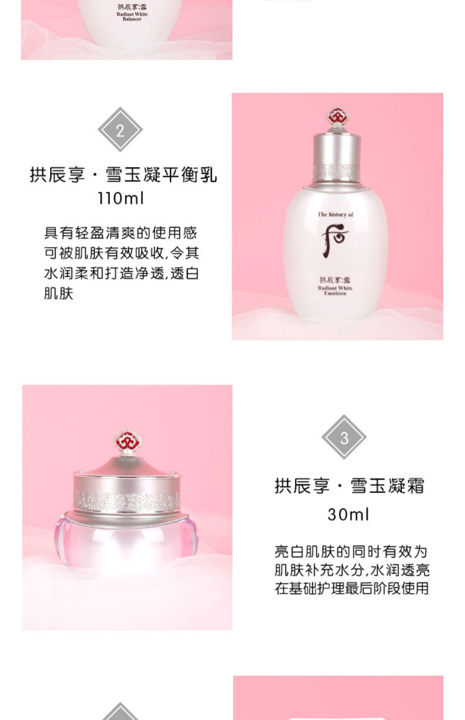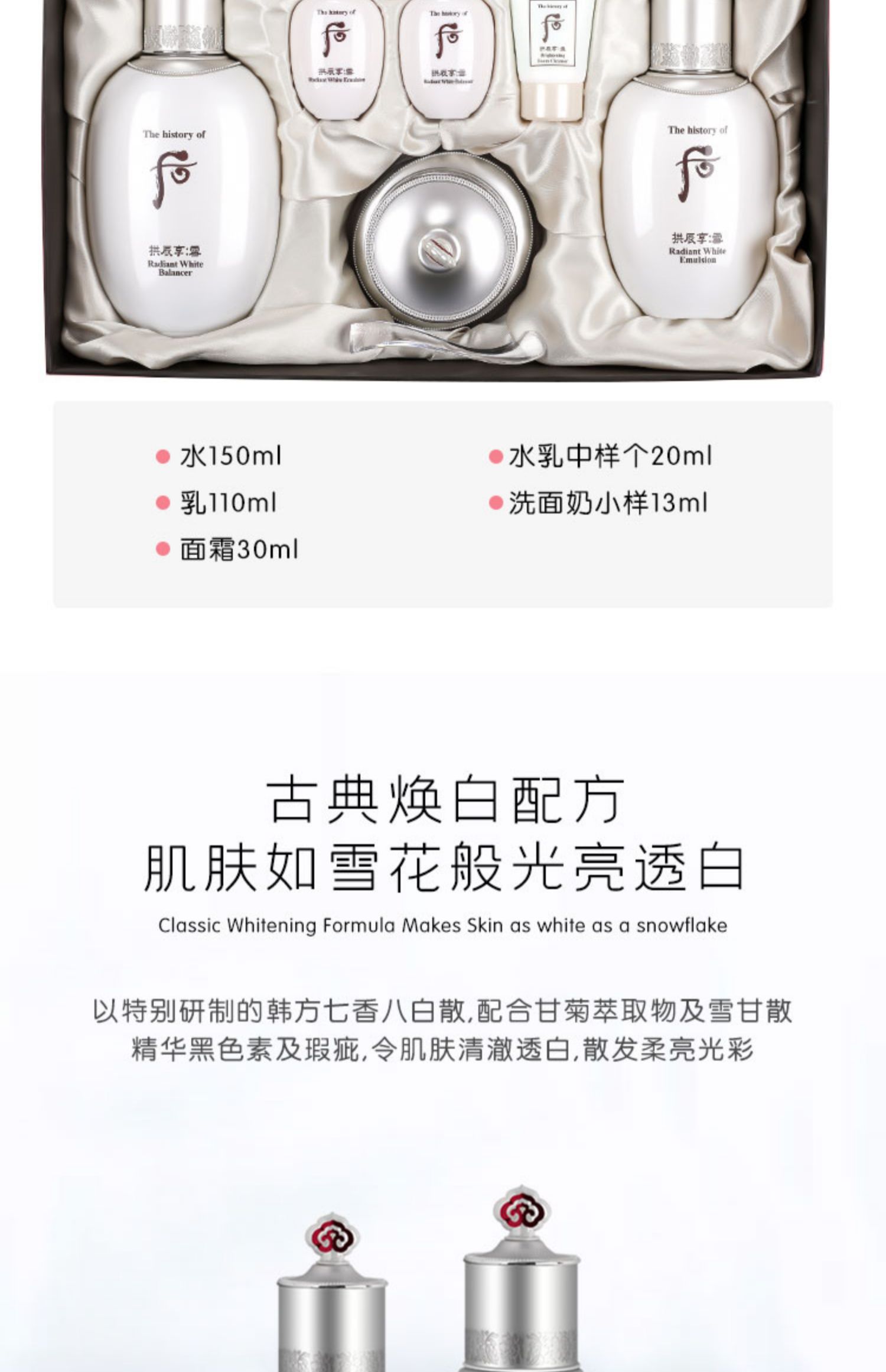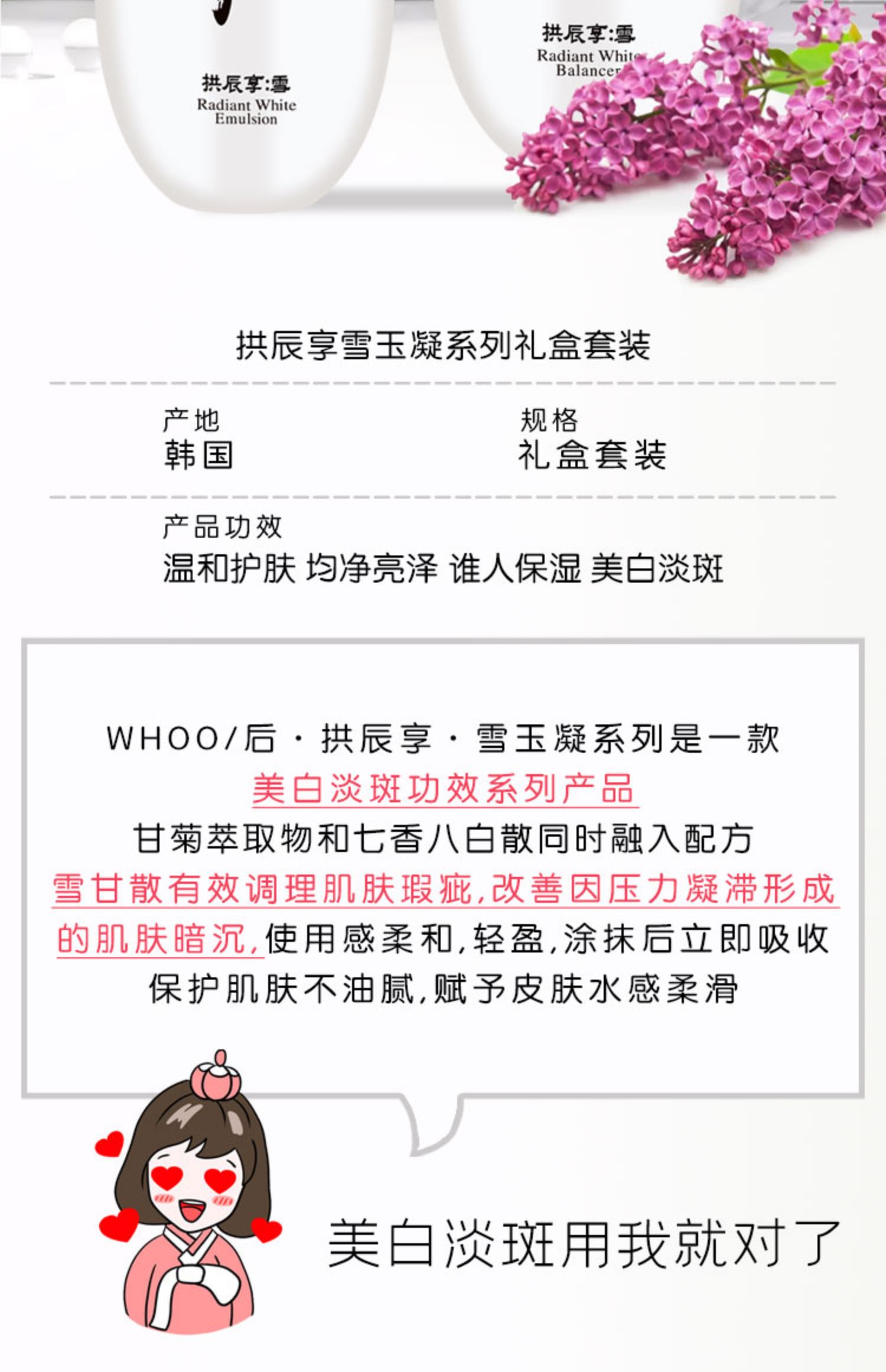 【YZ】Whoo后拱辰享雪美白套盒水乳面霜三件套装 保湿美白提亮