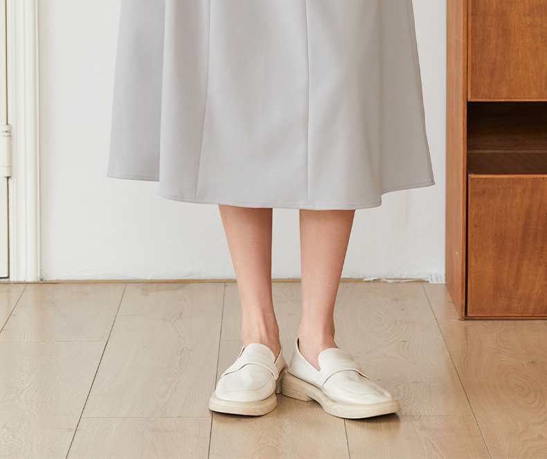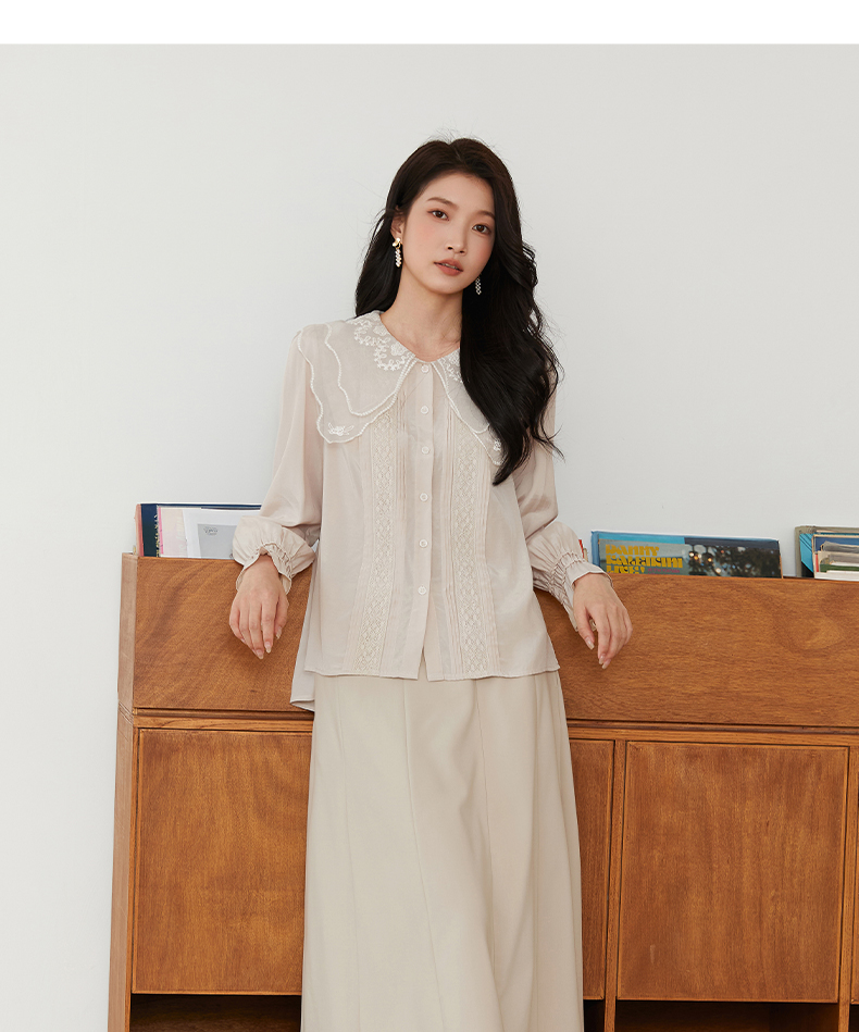 Famecoco范可儿半身裙纯色珍珠边长款A字型摆裙文艺女装秋FAB6HA007