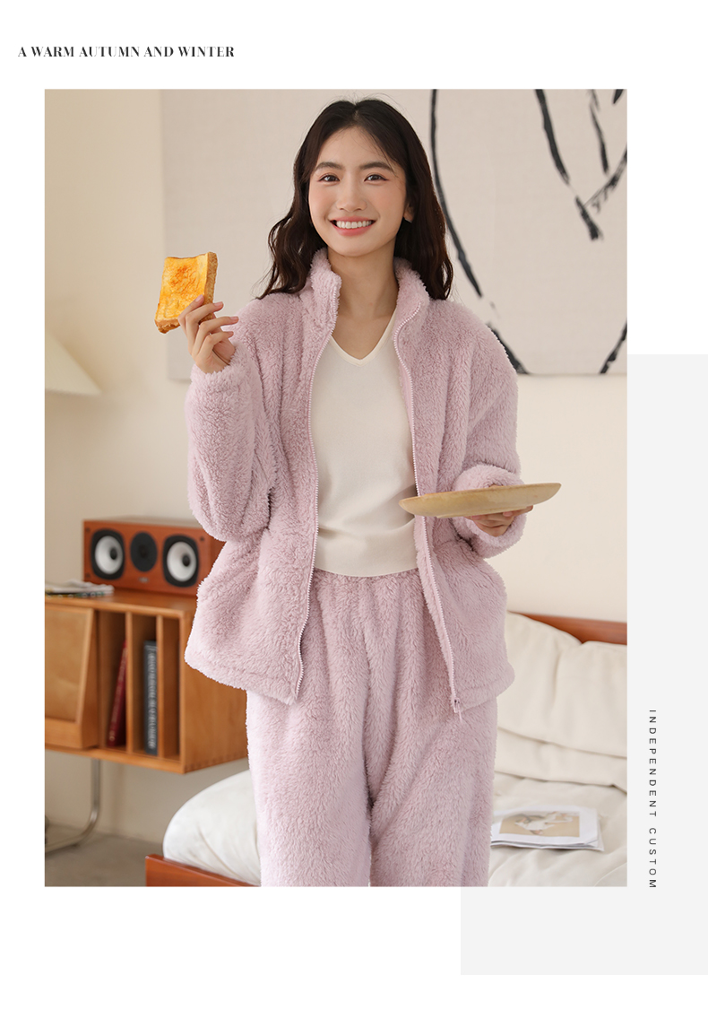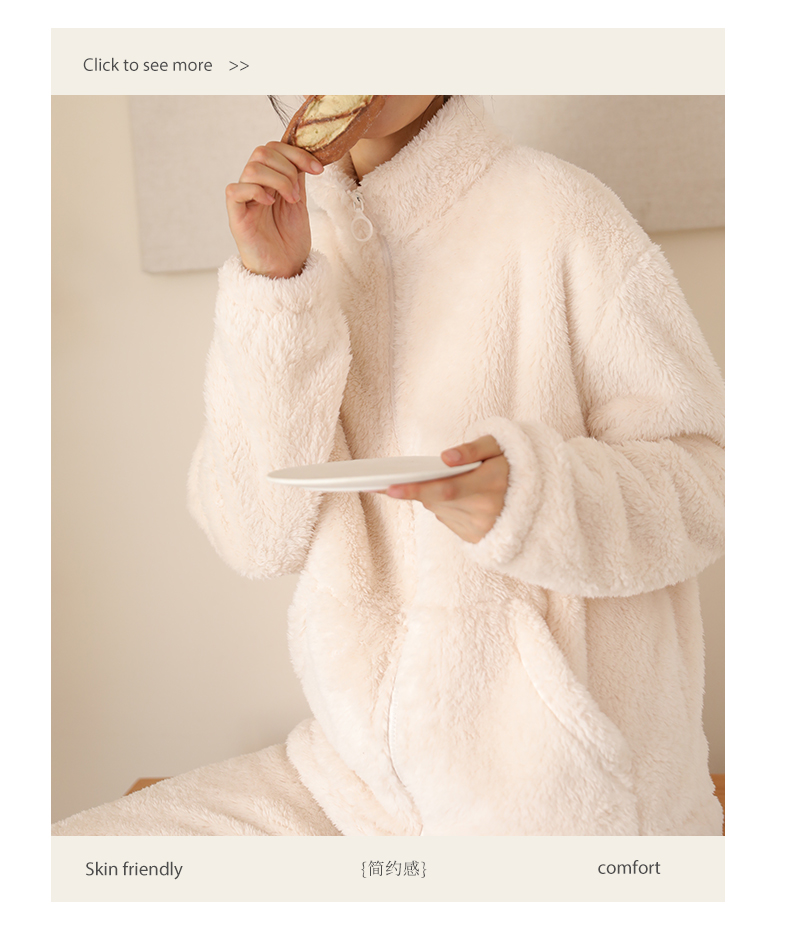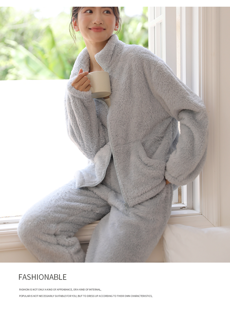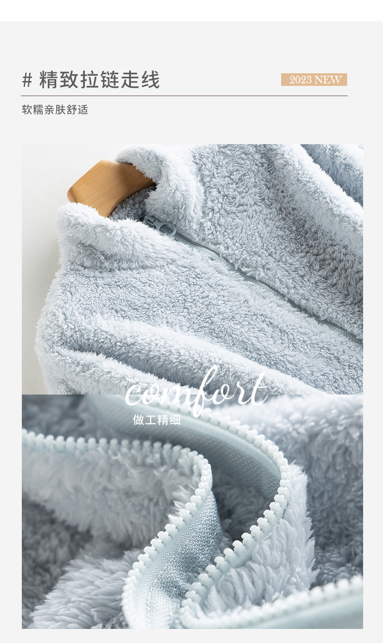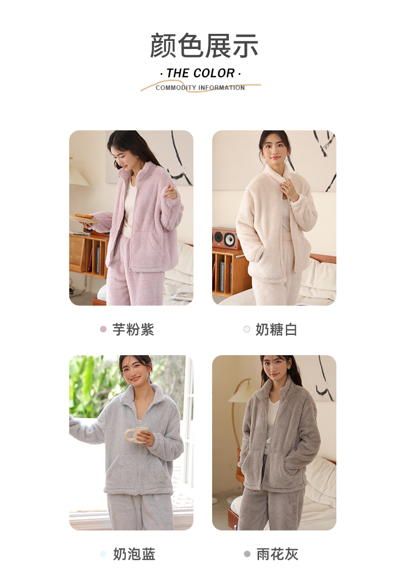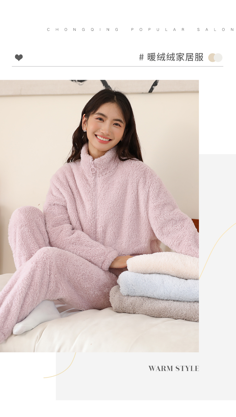 【谷小悠双面暖绒加厚家居服9809】双面暖绒,亲肤软糯,立领设计护颈抗风