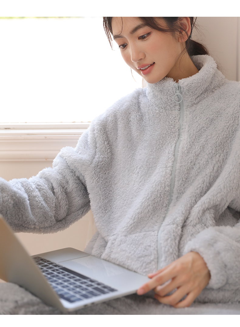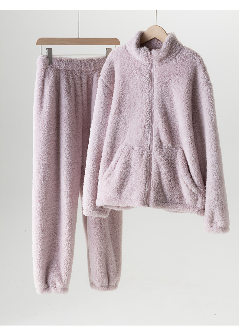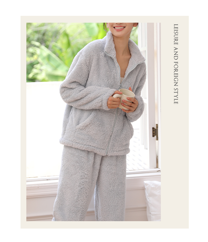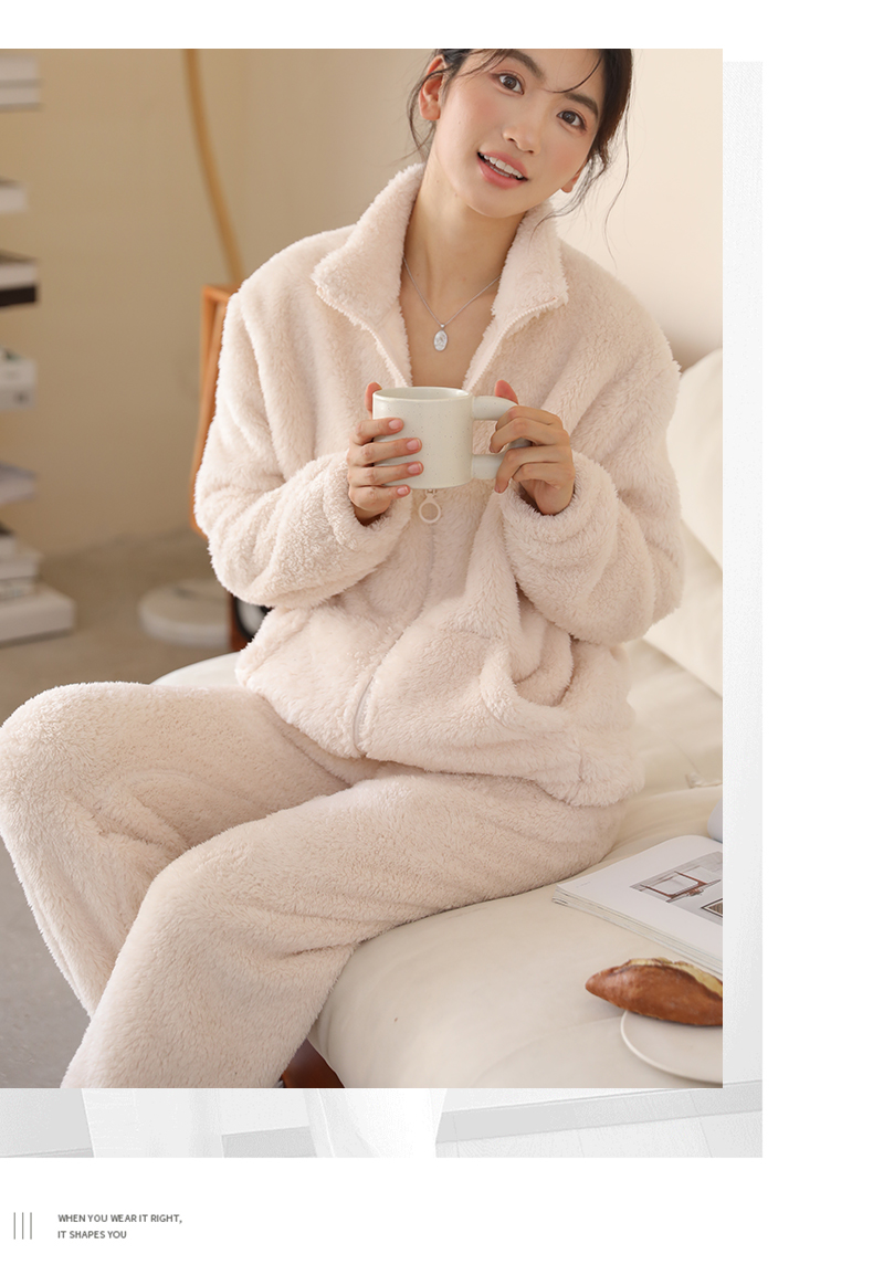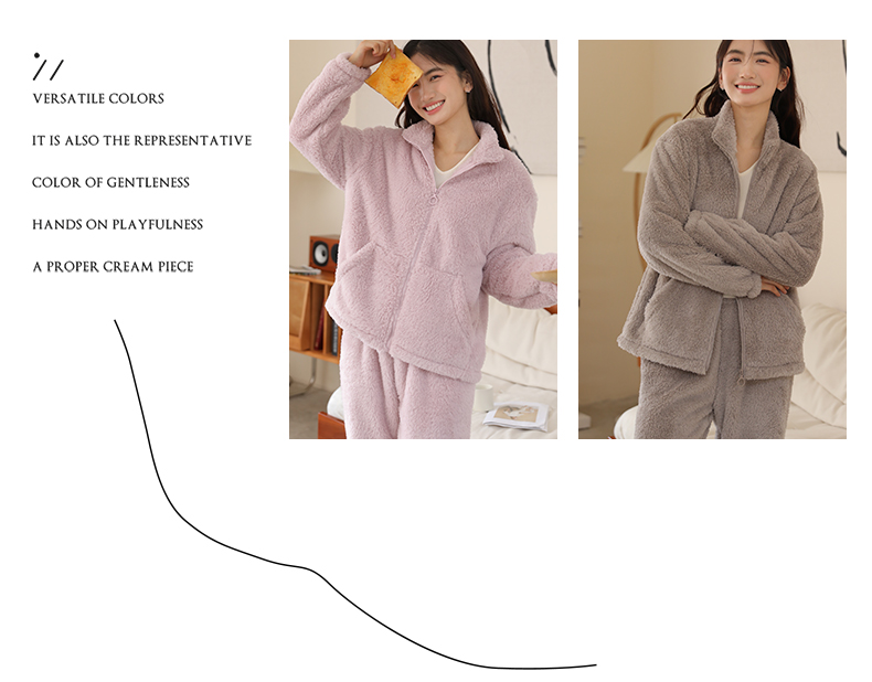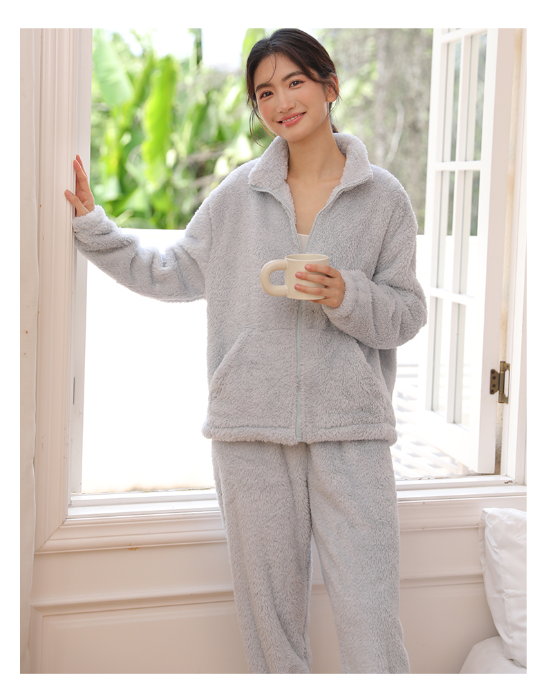 【谷小悠双面暖绒加厚家居服9809】双面暖绒,亲肤软糯,立领设计护颈抗风