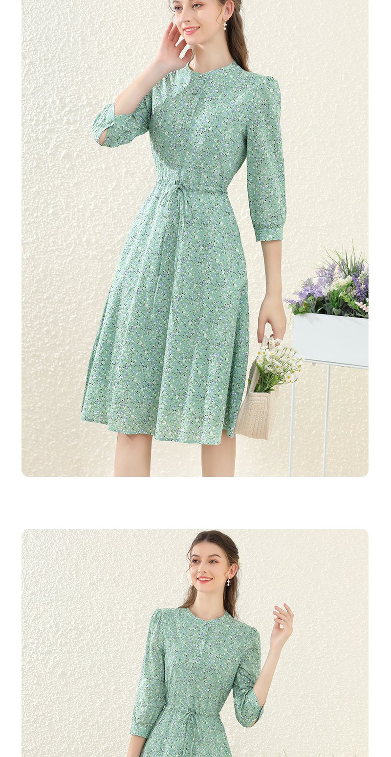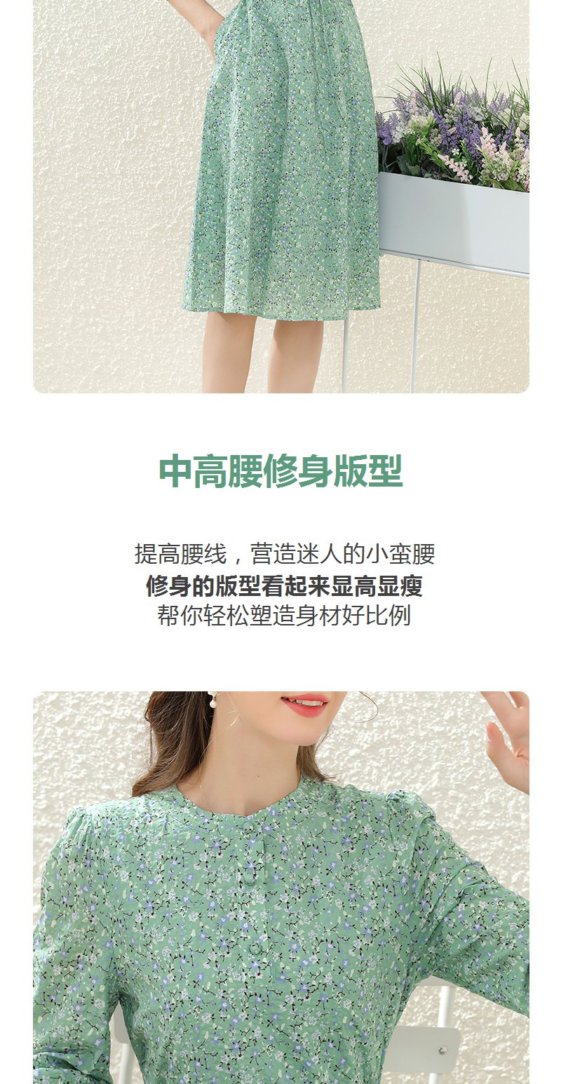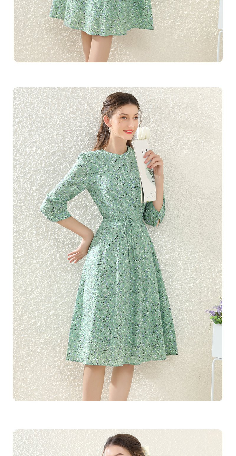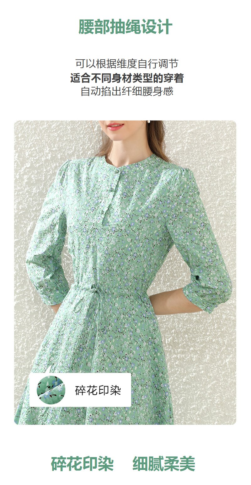 勿忘花绿色纯棉碎花遮肚子减龄连衣裙女2024秋季新款收腰显瘦裙子