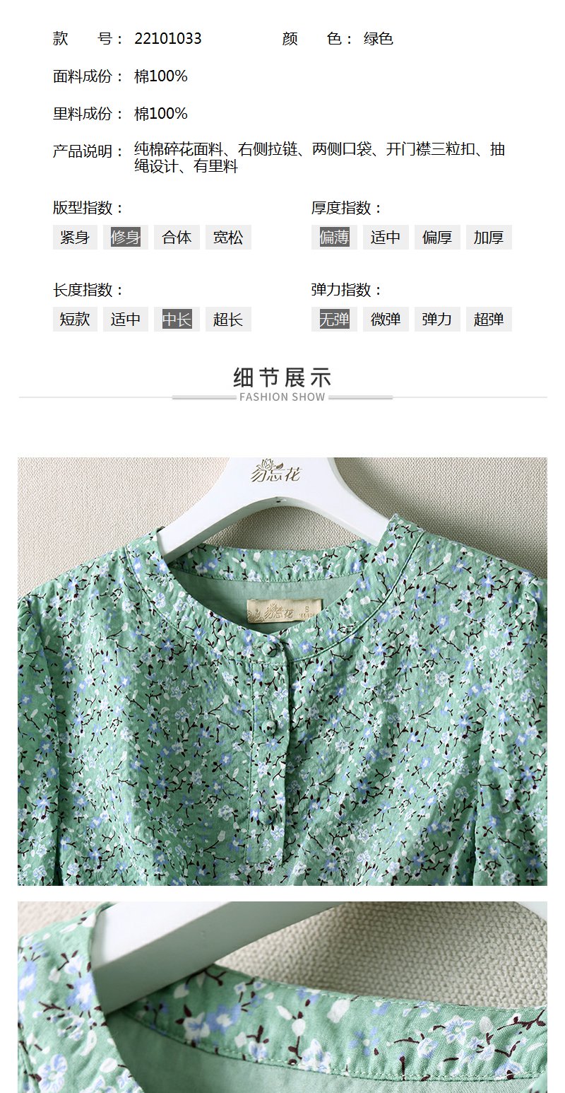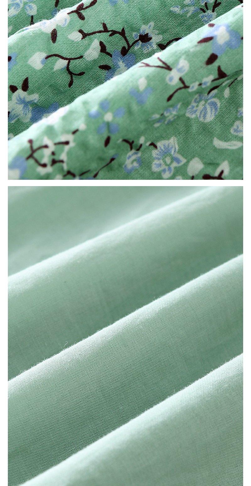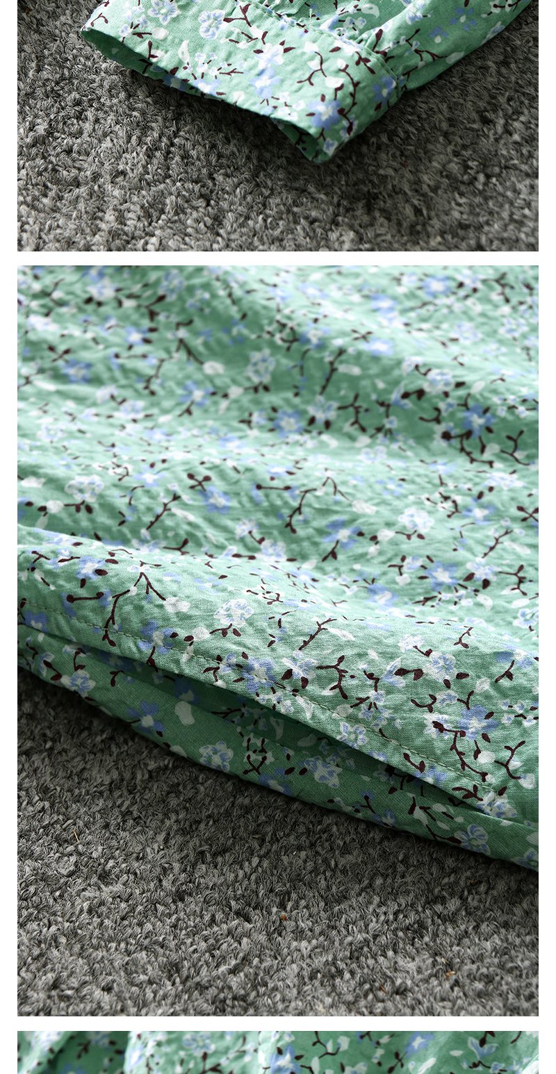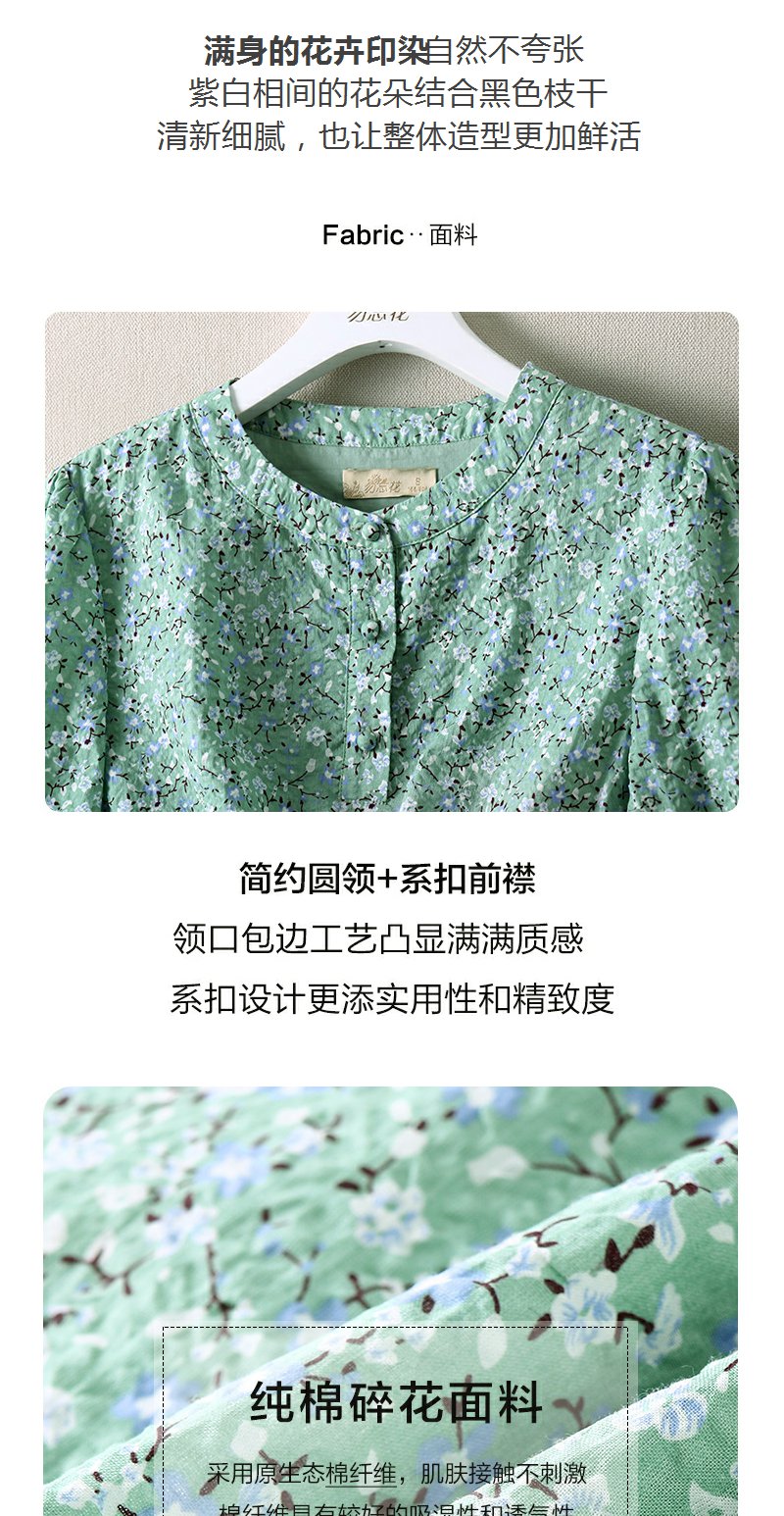 勿忘花绿色纯棉碎花遮肚子减龄连衣裙女2024秋季新款收腰显瘦裙子