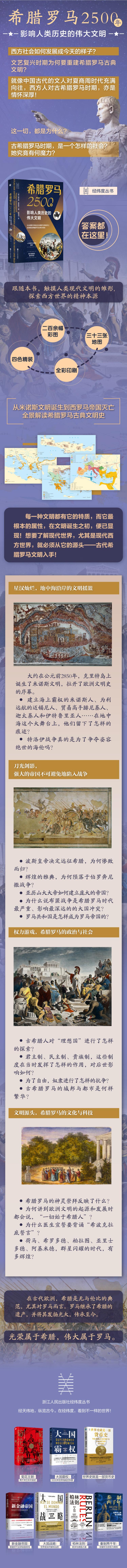 本书讲述了古希腊罗马时期波澜壮阔的历史,从克里特岛上的米诺斯文明诞生到西罗马帝国灭亡,大约持续了2500年。这一时期充满了征服与发现、文化的交流和碰撞、王朝的繁荣和衰败。古希腊罗马文明是现代西方文明的精神本源,也是人类现代文明的雏形,对整个人类文明的发展具有重要的意义。书中内容分成五大部分,分别是地中海的文明、战争与帝国、政治与社会、文化与科学、危机与衰落,力图多方面还原古典时代的完整面貌。除了清晰明了的文字叙述,本书还包含大量精美的插图、照片、绘画和地图,能够帮助读者更好地理解历史场景,直观而生动地还原古希腊罗马的历史文化状况,全景式展现恢弘壮阔的古典文明。