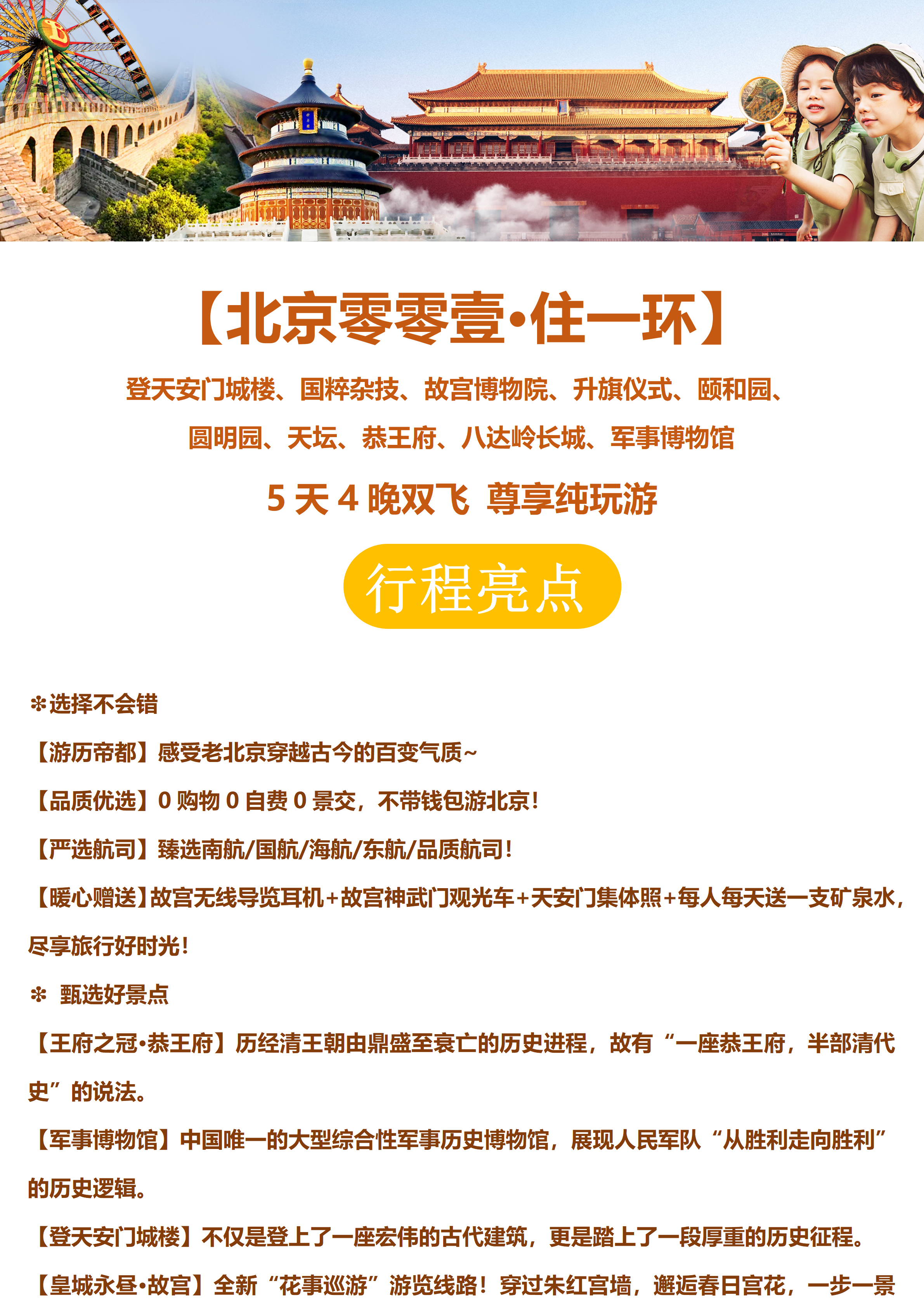 5月【北京零零壹·住一环】北京5天4晚双飞 纯玩(含接送)