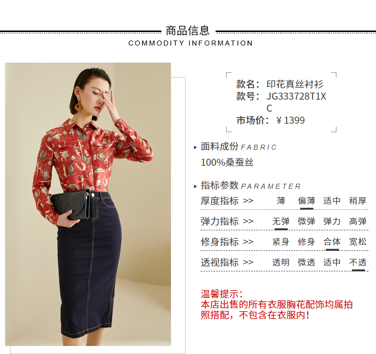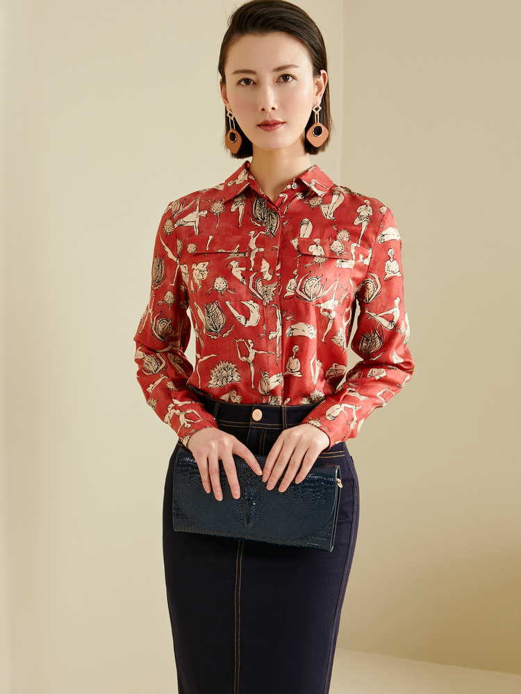 “追光漫舞”瑜伽图腾衬衫JG333728T1XC颈袖添香新款真丝气质时尚修身桑蚕丝印花女士衬衫(四季可穿)