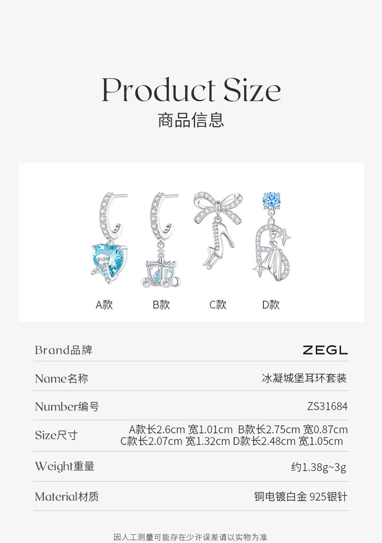 ZEGL设计师冰凝城堡系列蝴蝶结爱心耳环女设计感耳钉银针秋冬耳饰