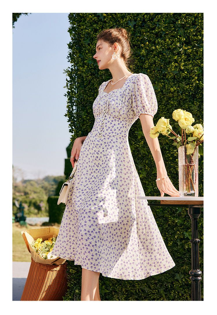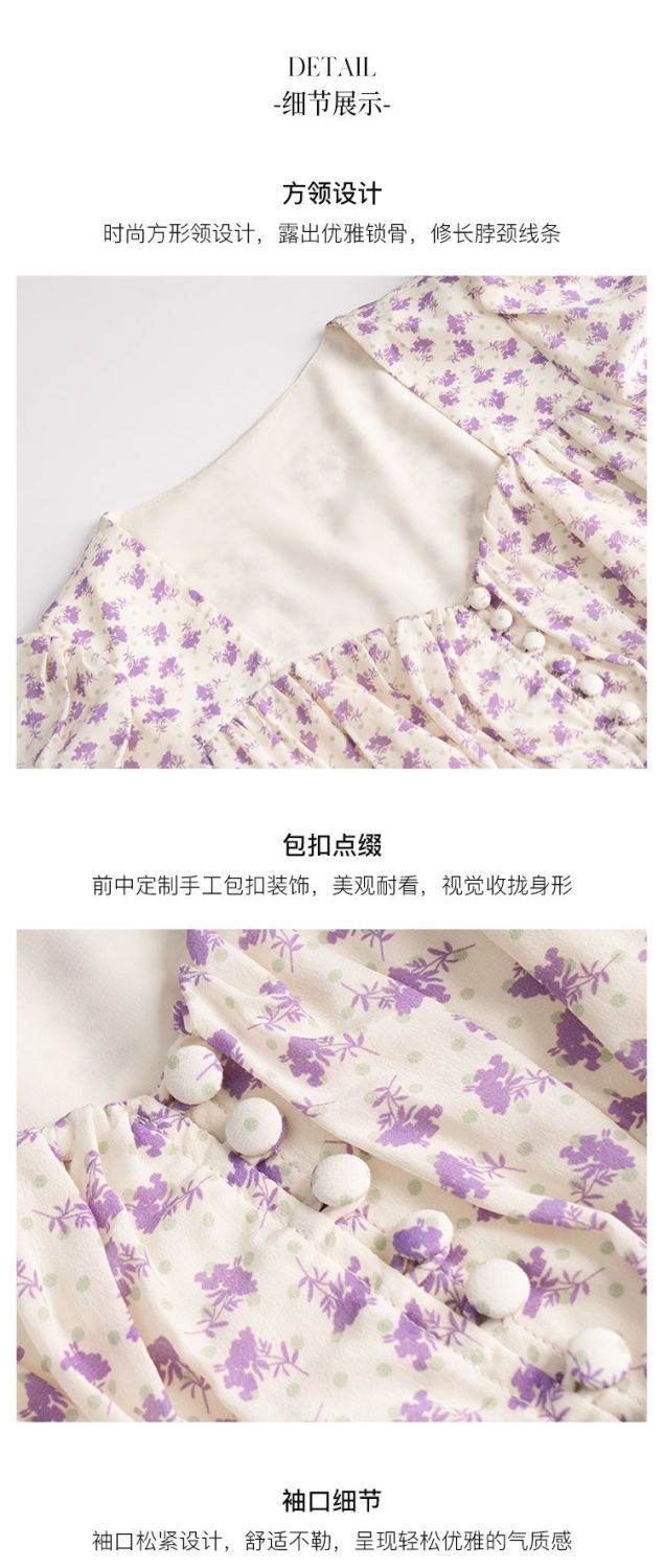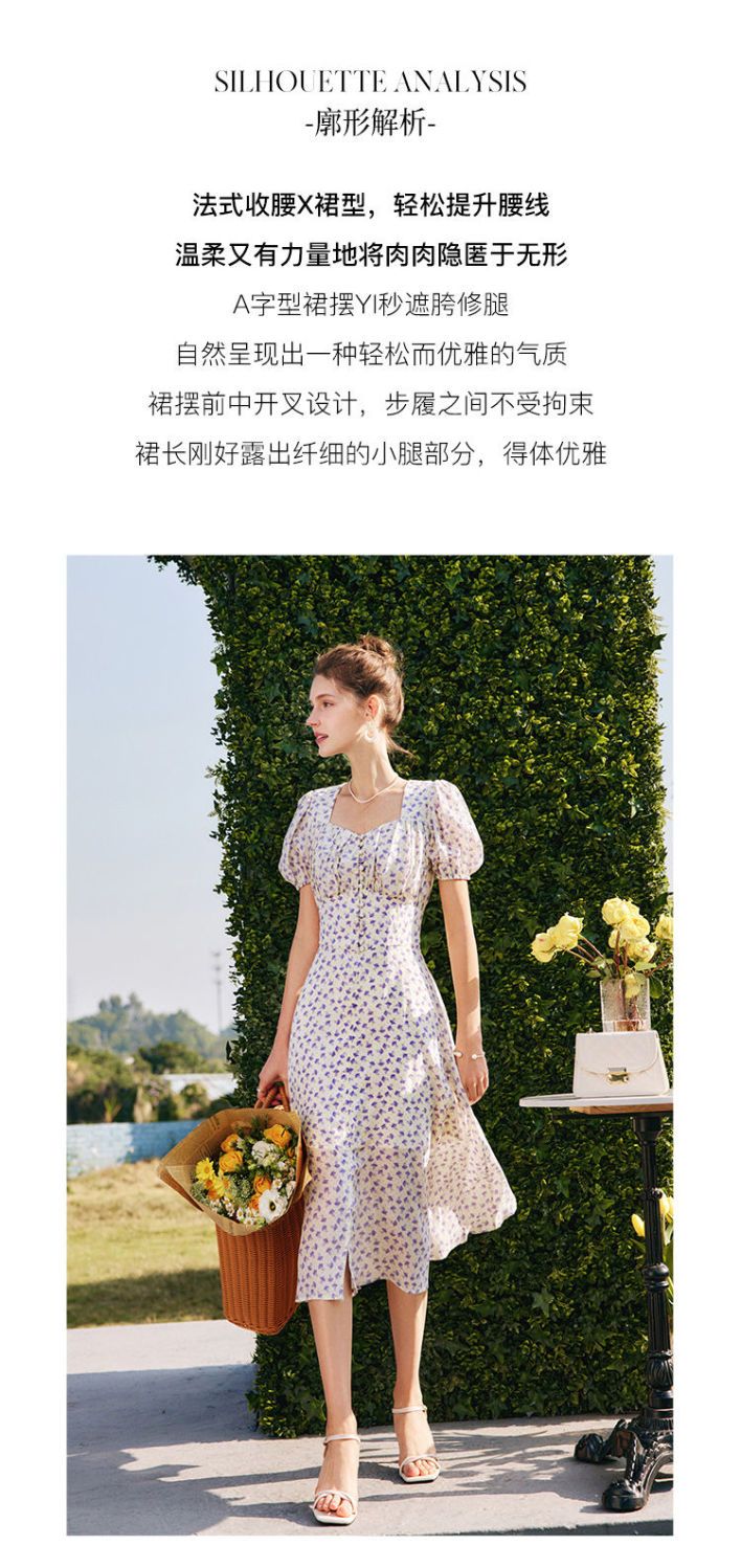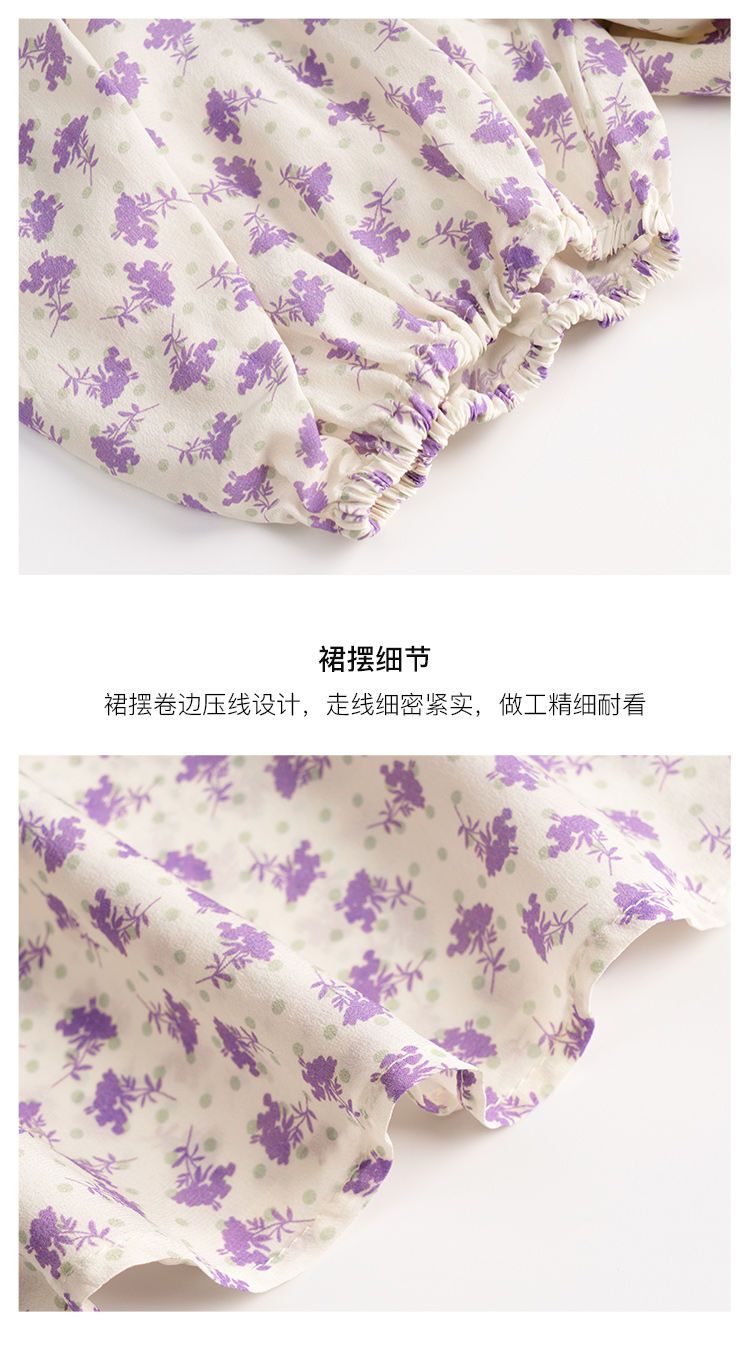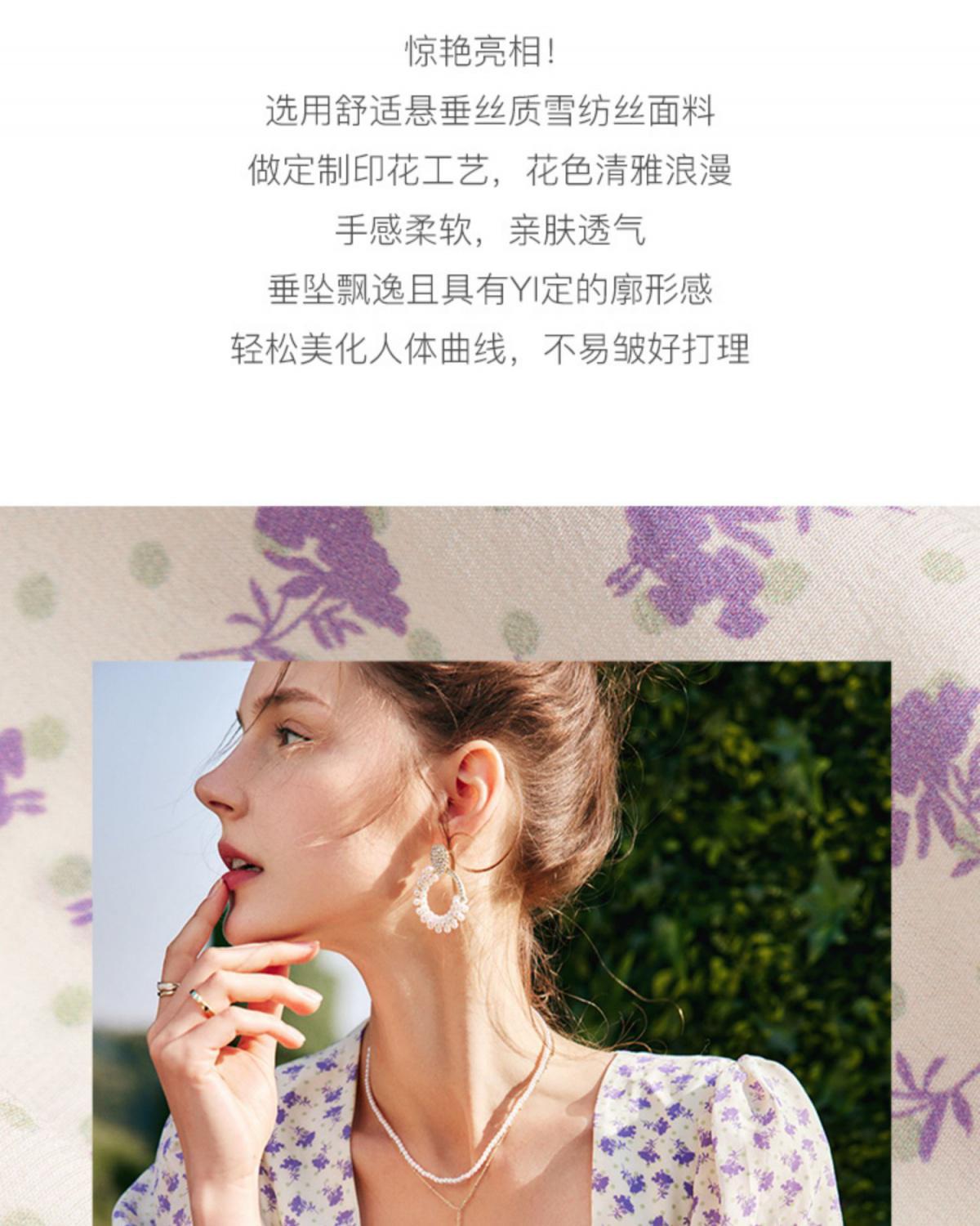 欧芮儿碎花雪纺连衣裙女春装2022年新款收腰时尚法式灯笼袖大摆裙