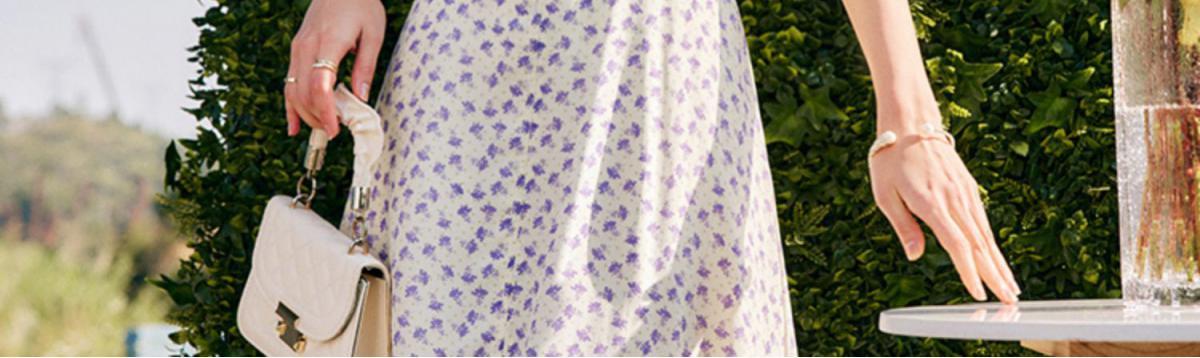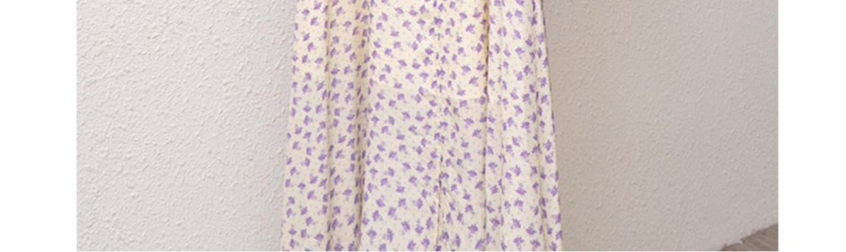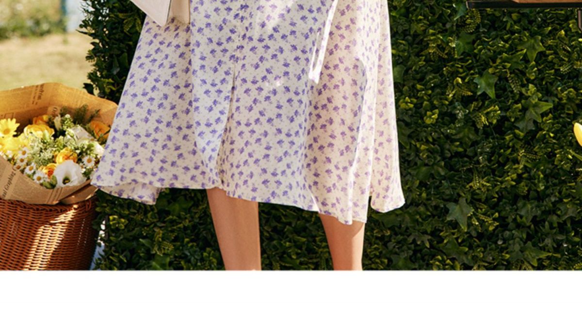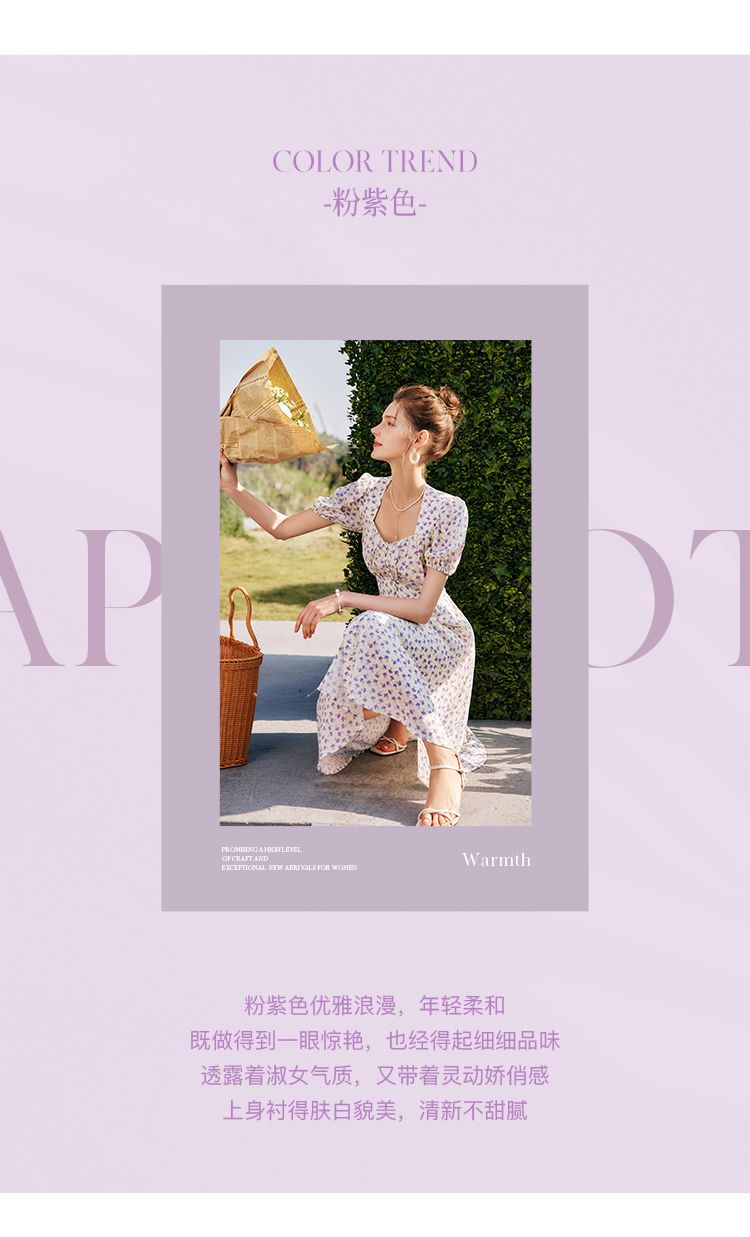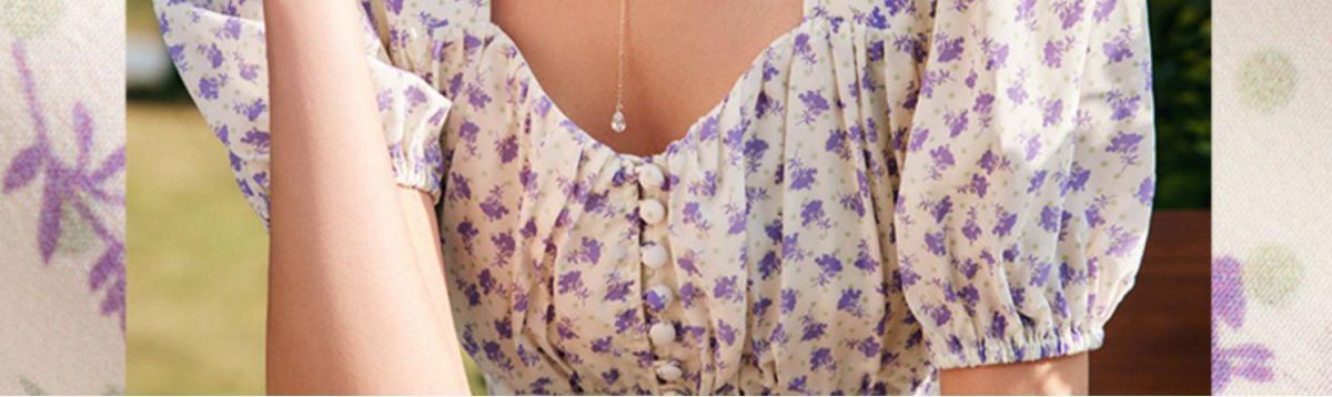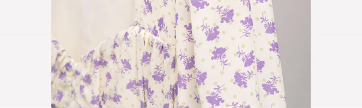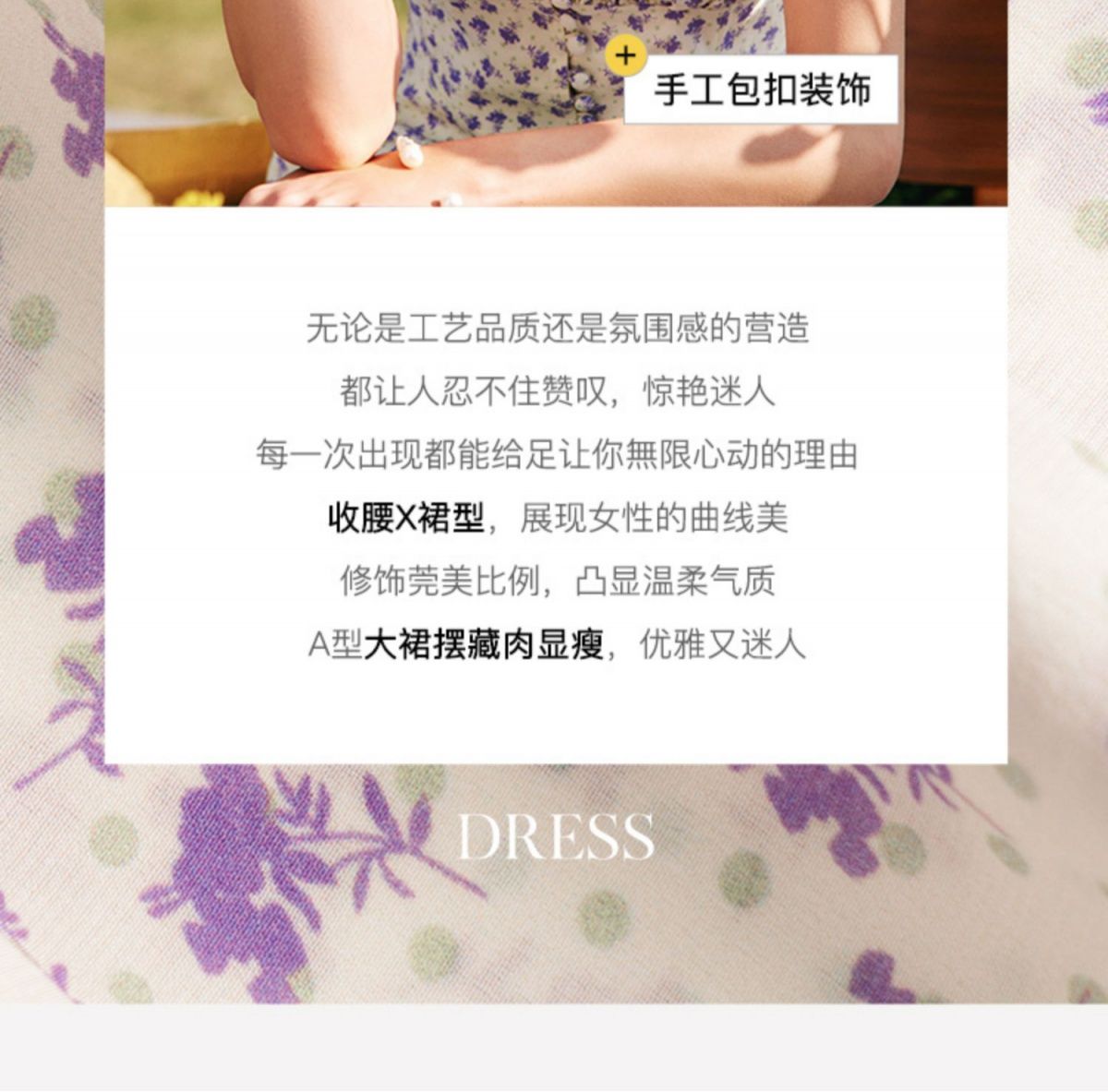 欧芮儿碎花雪纺连衣裙女春装2022年新款收腰时尚法式灯笼袖大摆裙