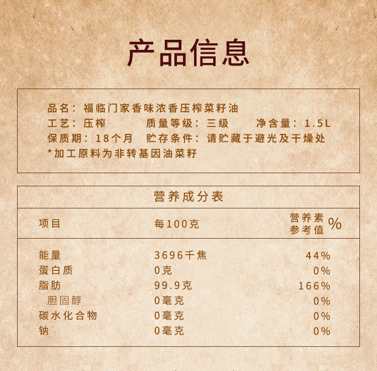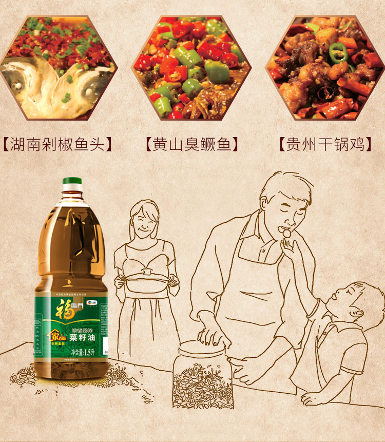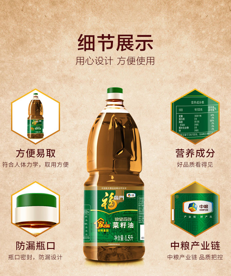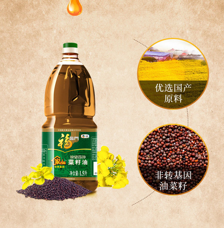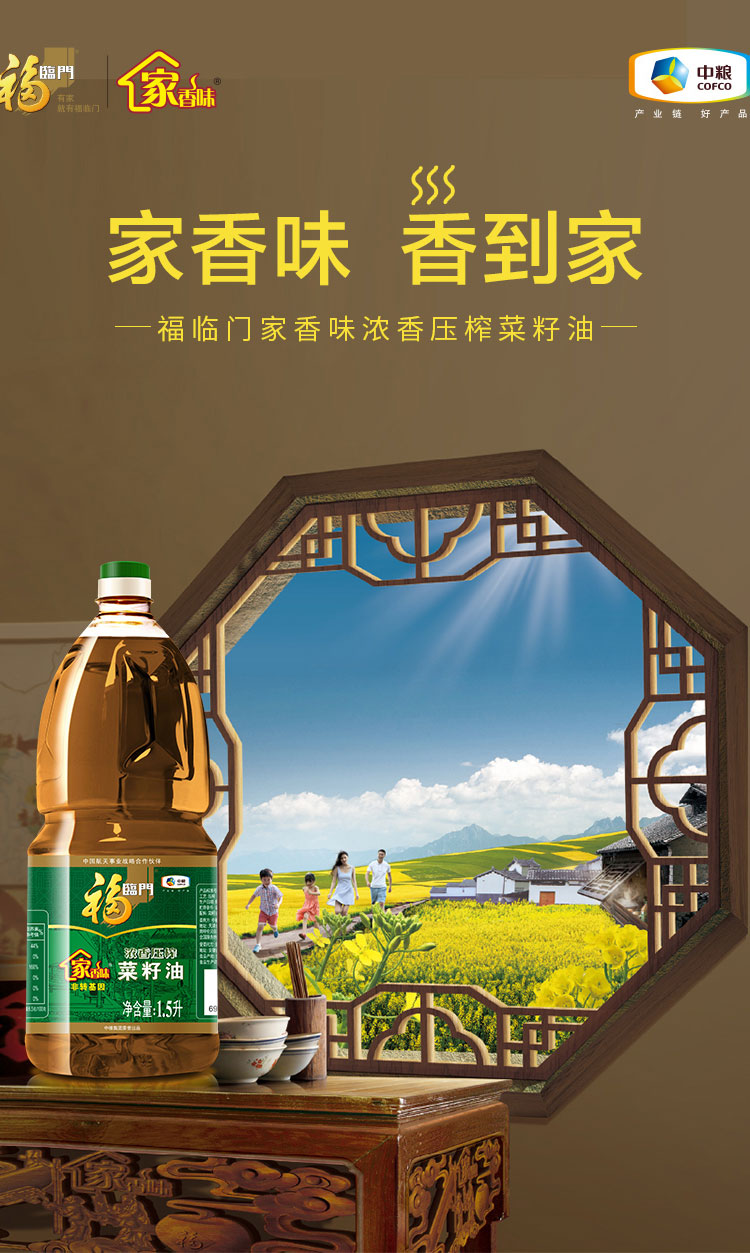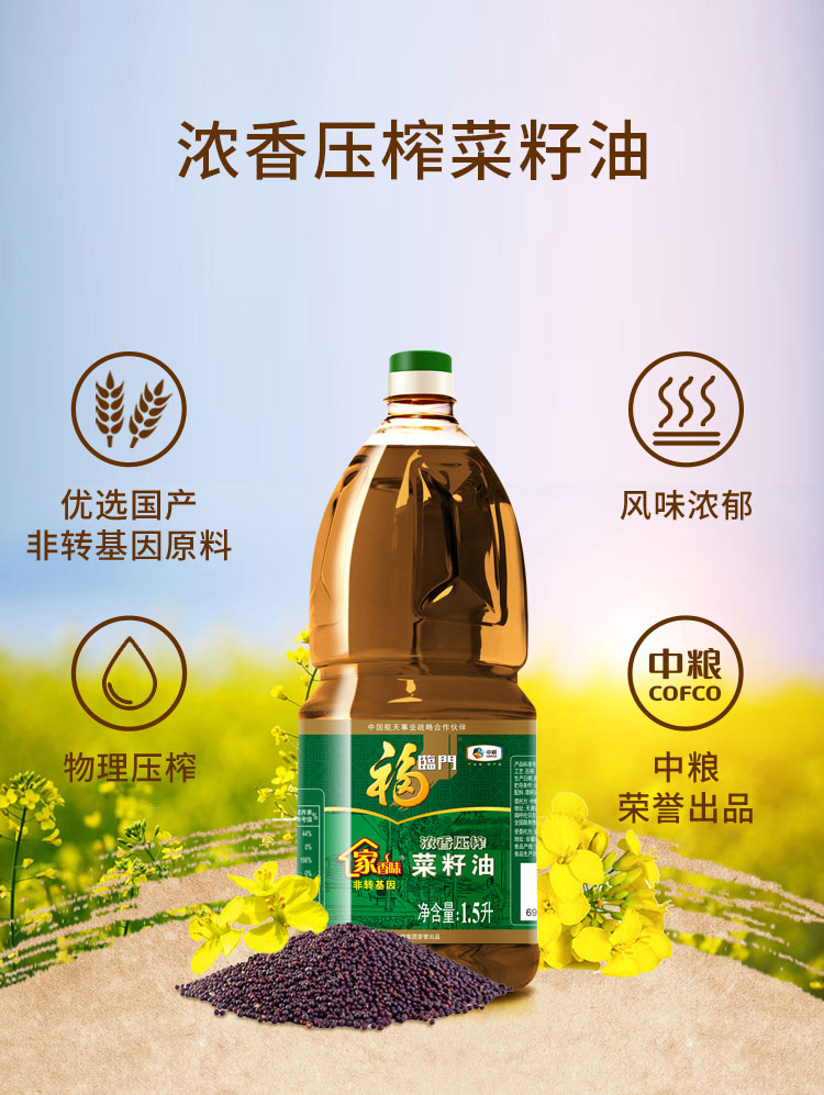 福临门 食用油 家香味非转基因压榨菜籽油1.5L 中粮出品