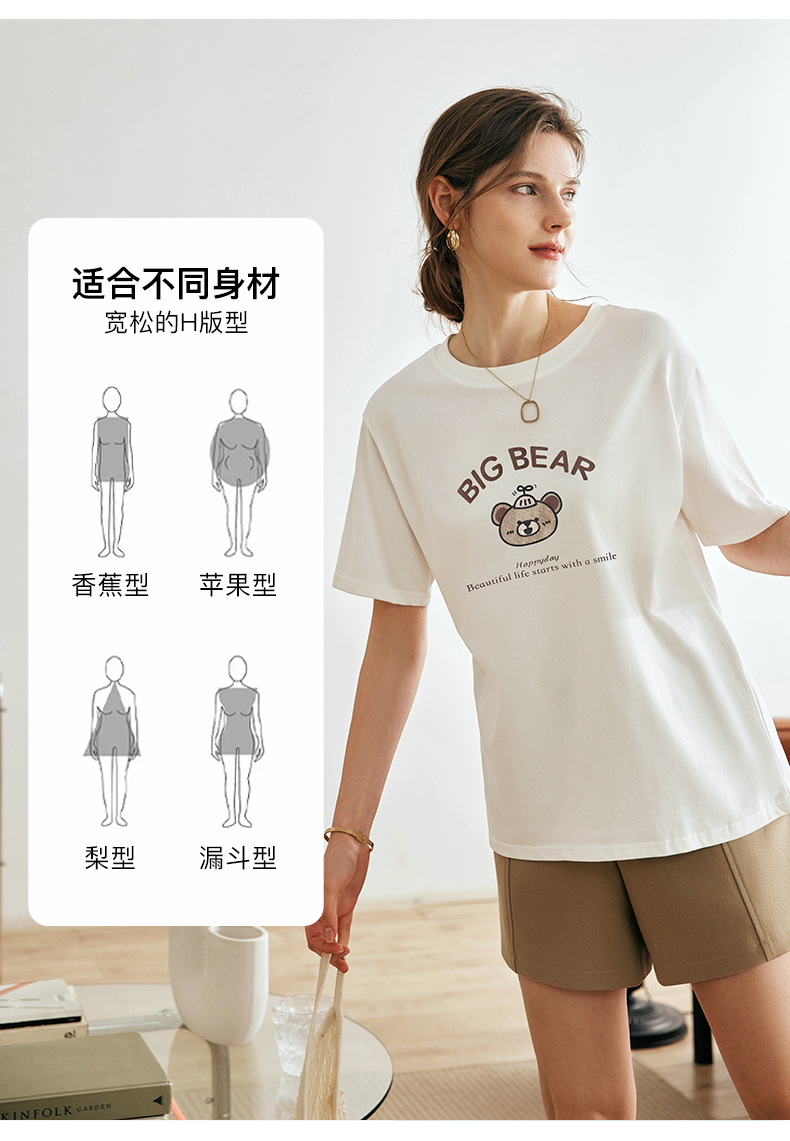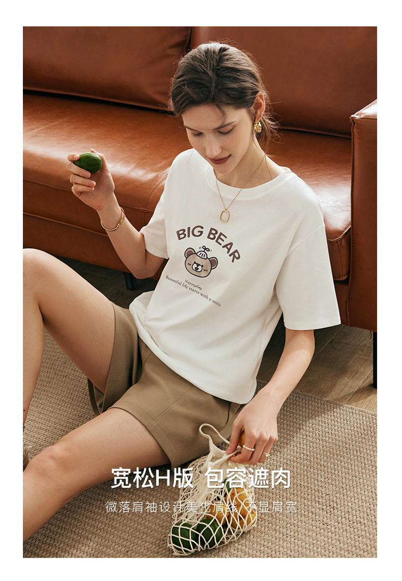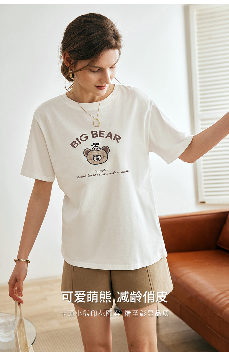 OLrain欧芮儿法式白色短袖T恤女夏季2023年新款卡通印花减龄上衣