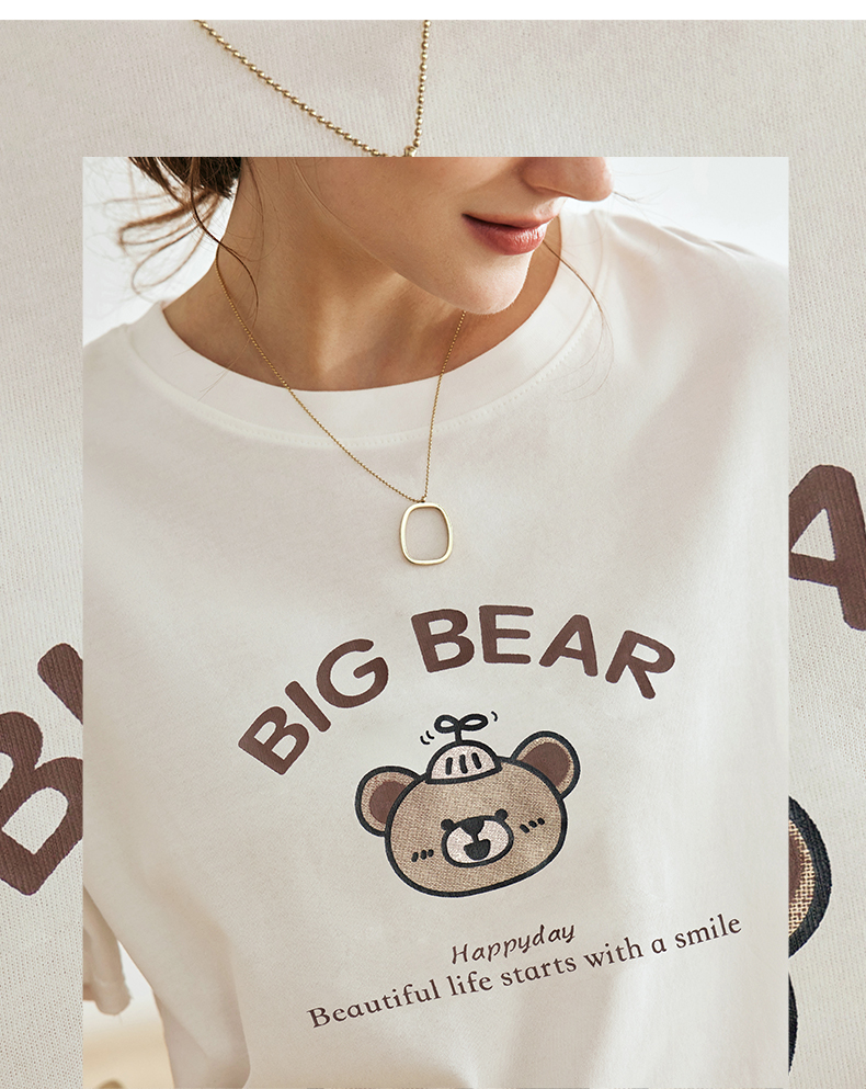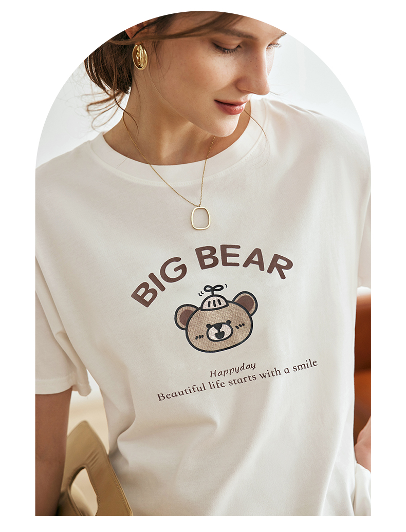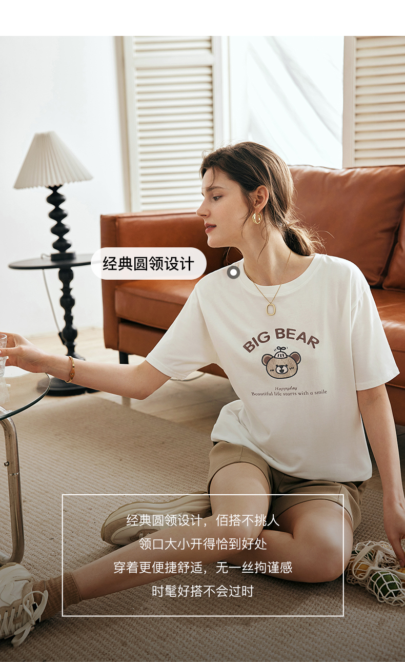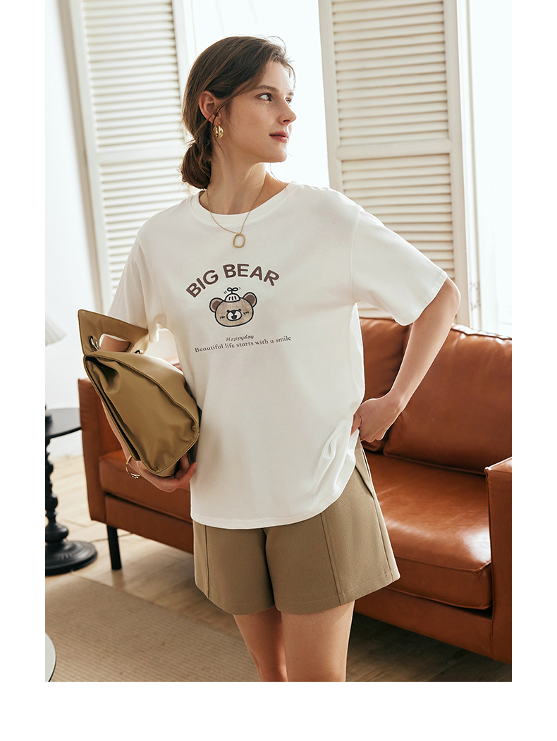 OLrain欧芮儿法式白色短袖T恤女夏季2023年新款卡通印花减龄上衣