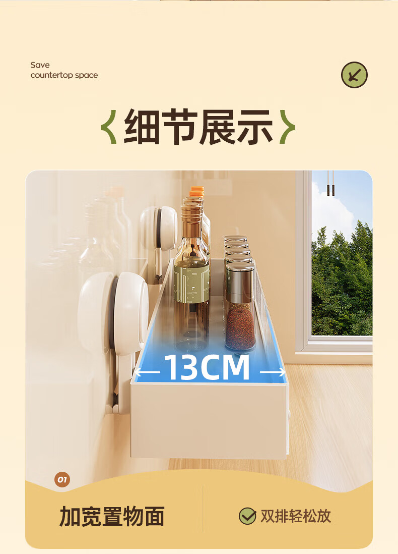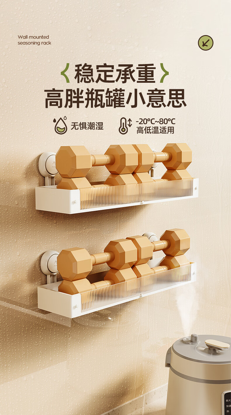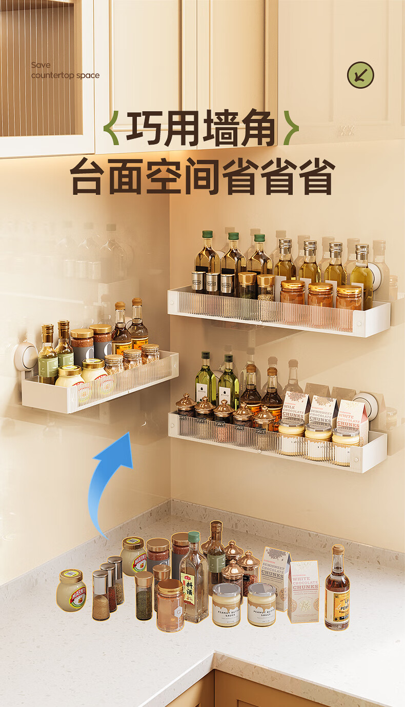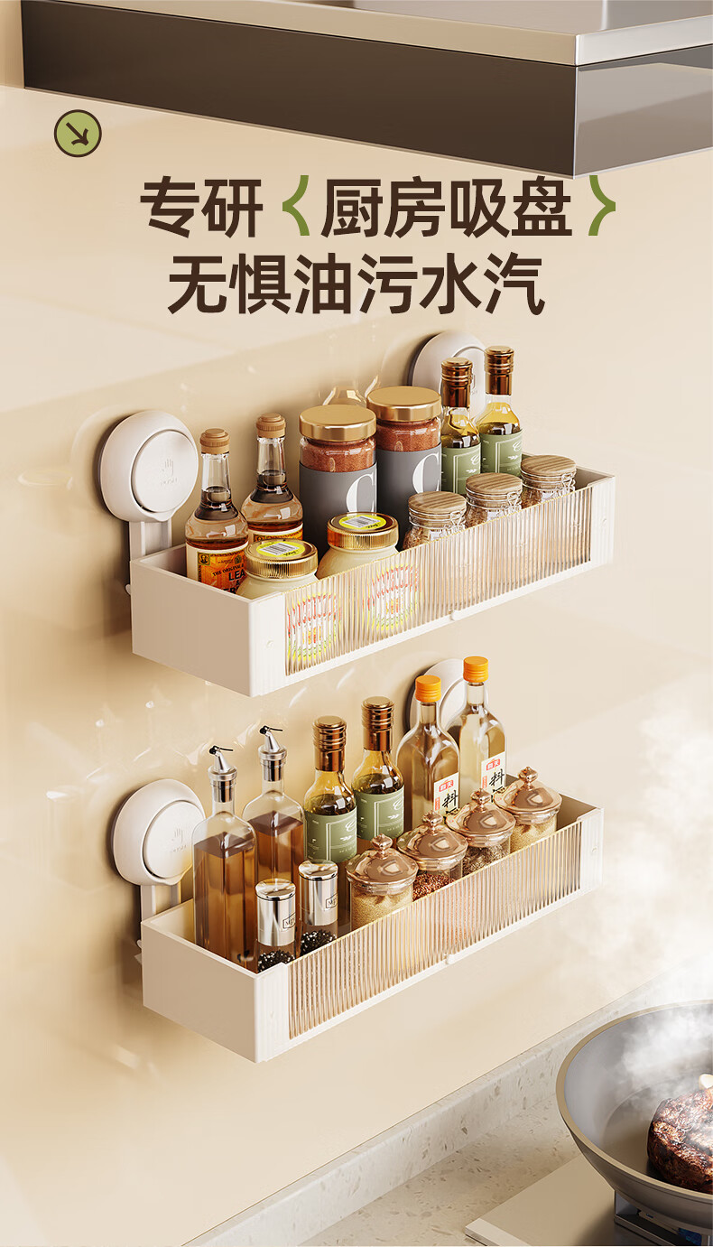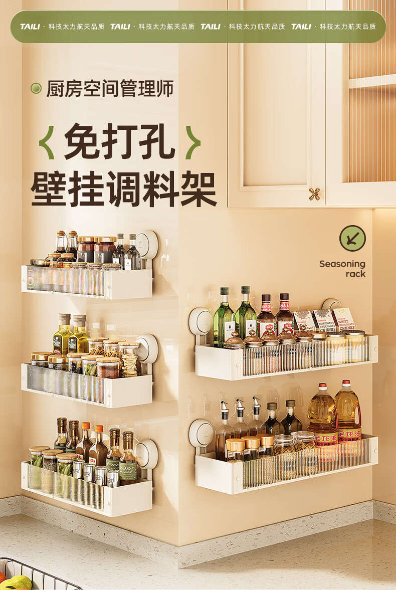 太力(TAILI)吸盘厨房调料置物架壁挂免打孔放调料品厨房用具收纳架白色40CMAWW068