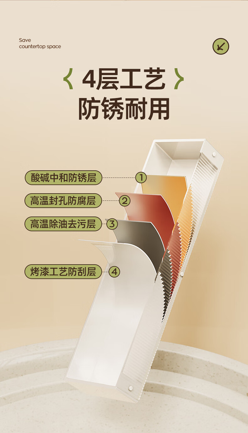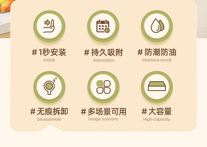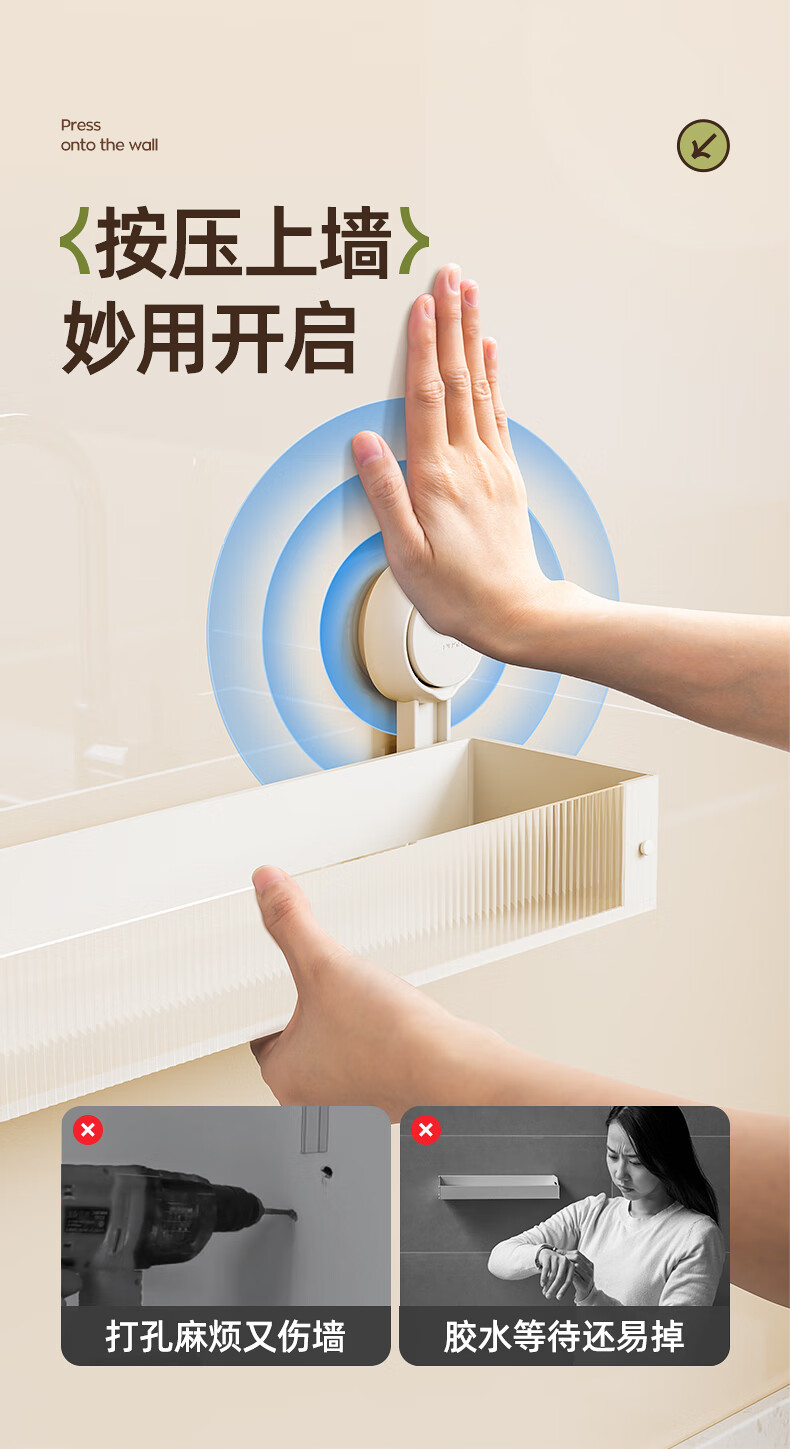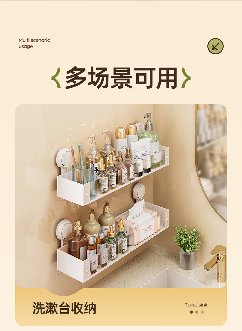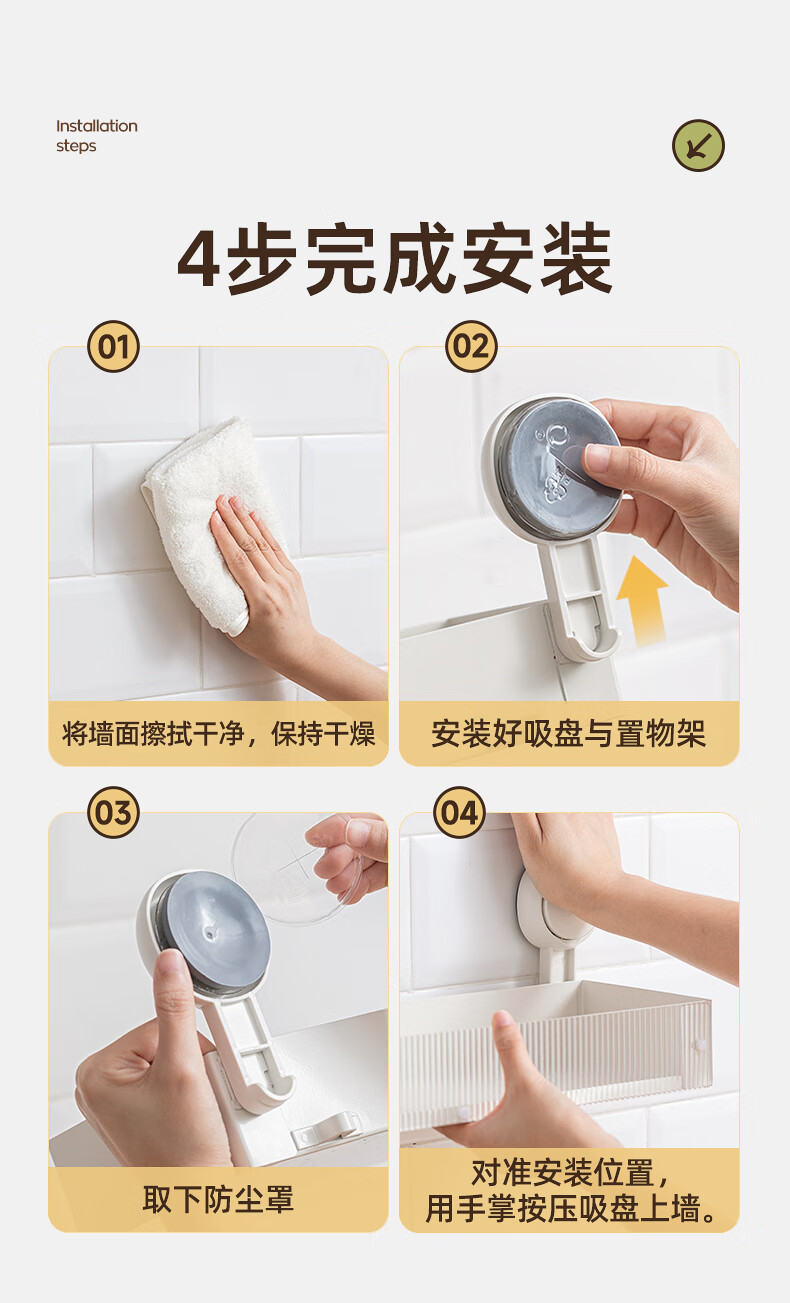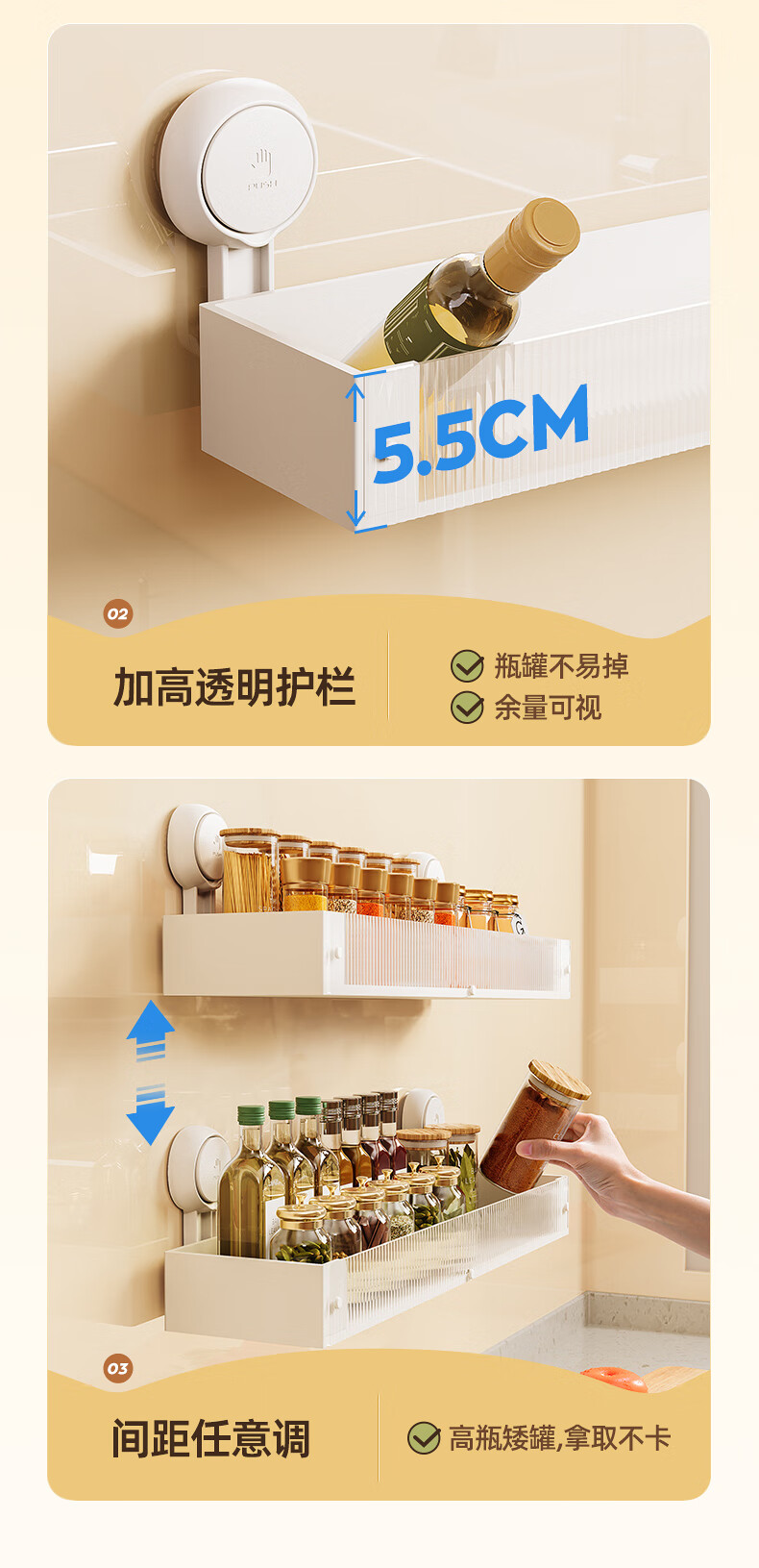 太力(TAILI)吸盘厨房调料置物架壁挂免打孔放调料品厨房用具收纳架白色40CMAWW068