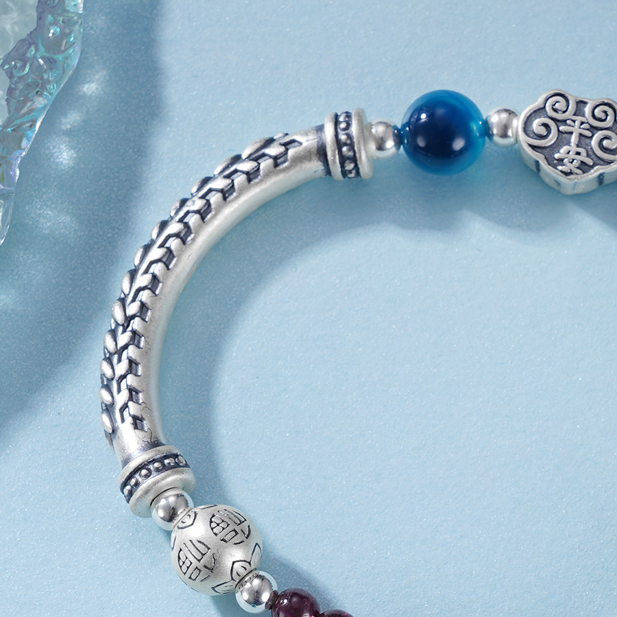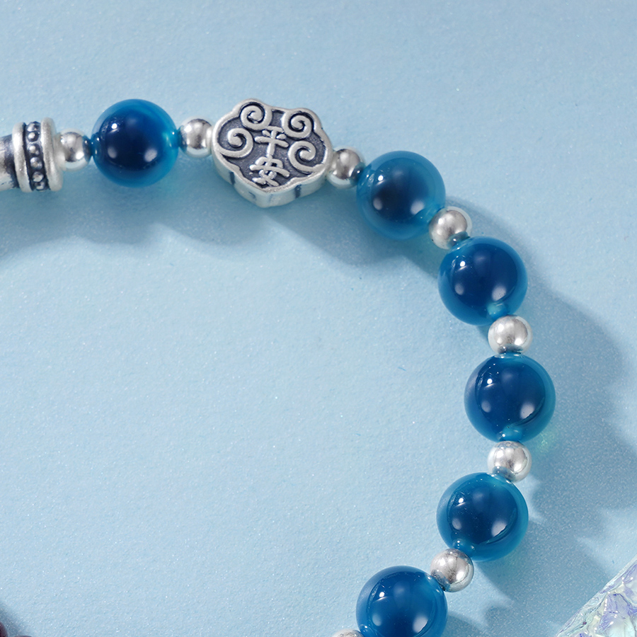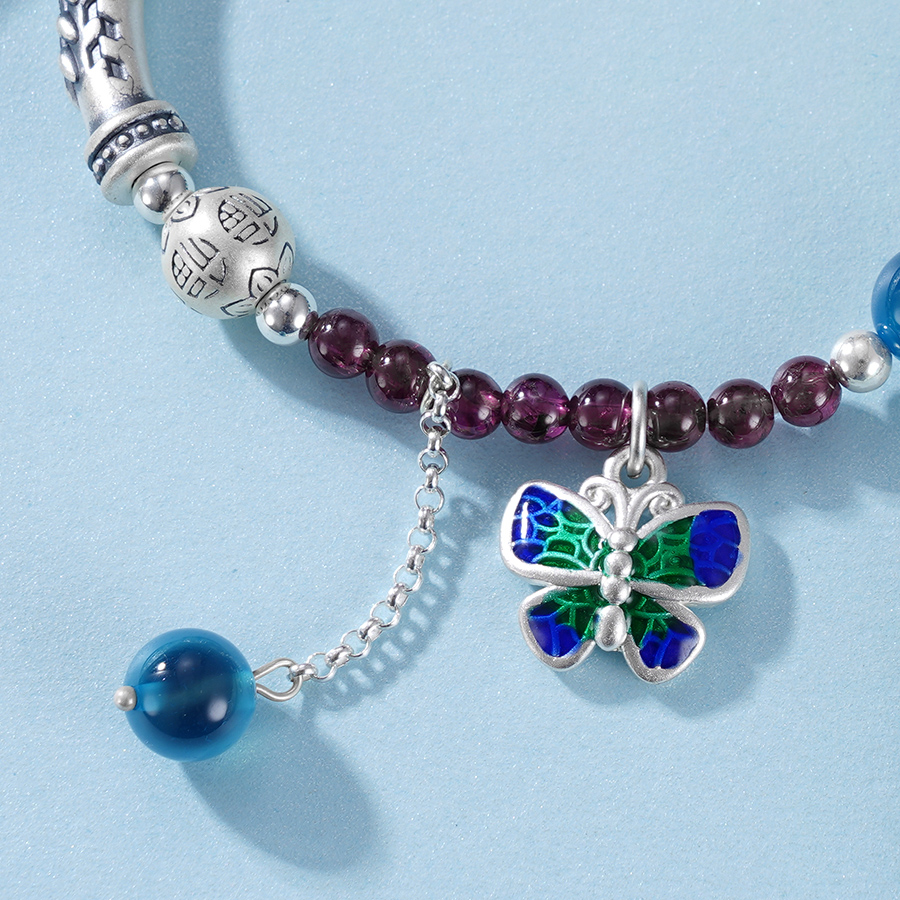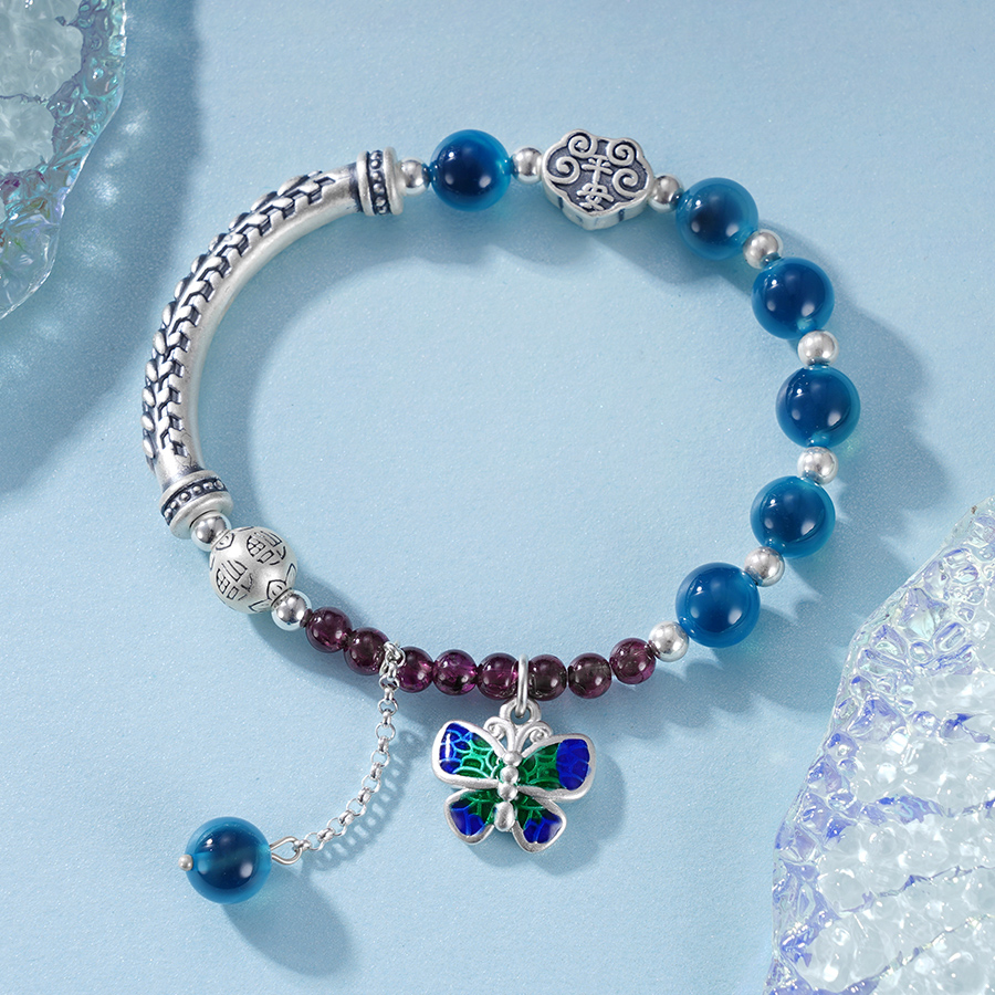 子佩集S999银【乐伦】手串【SC000812】纯银珐琅彩蝴蝶糖心玛瑙蓝色手链2409