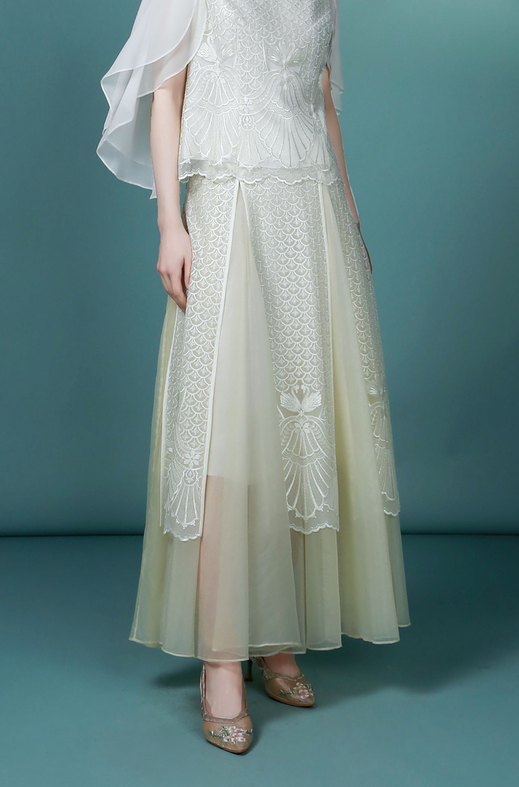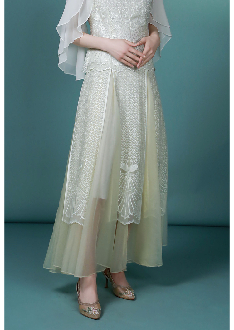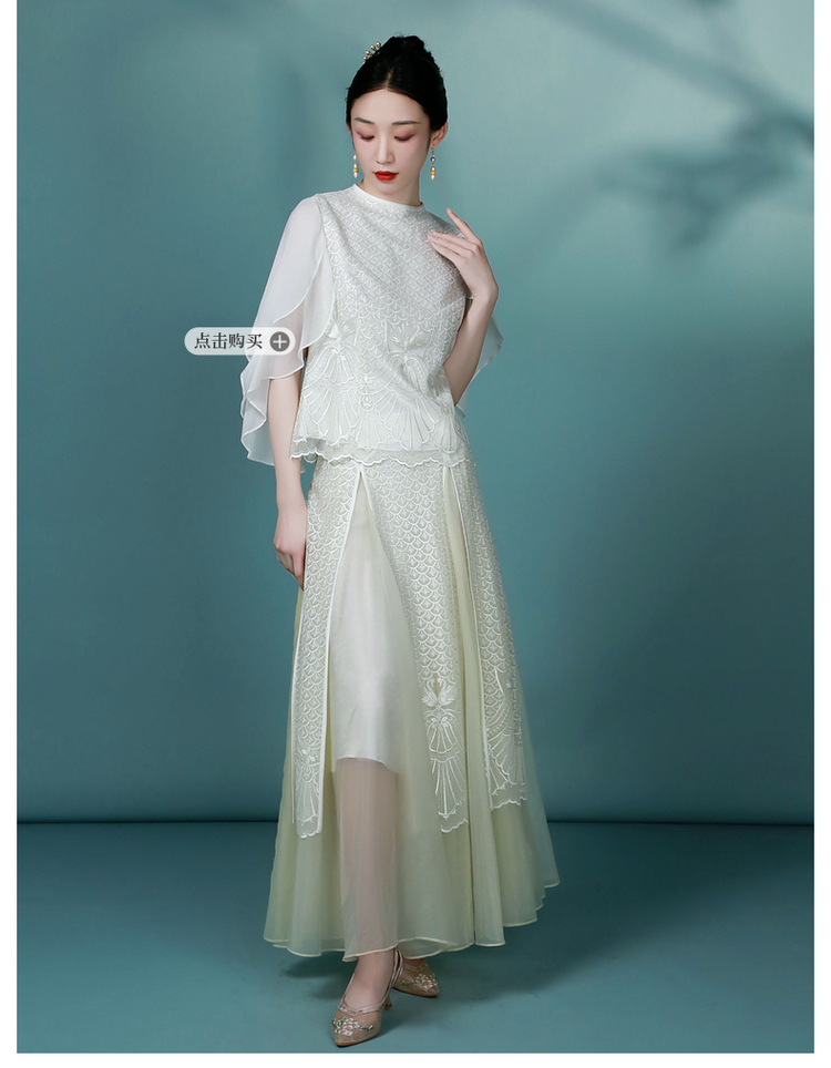 吉祥衣家新中式国风复古春夏新款高端气质显瘦修身女装暮成雪半裙