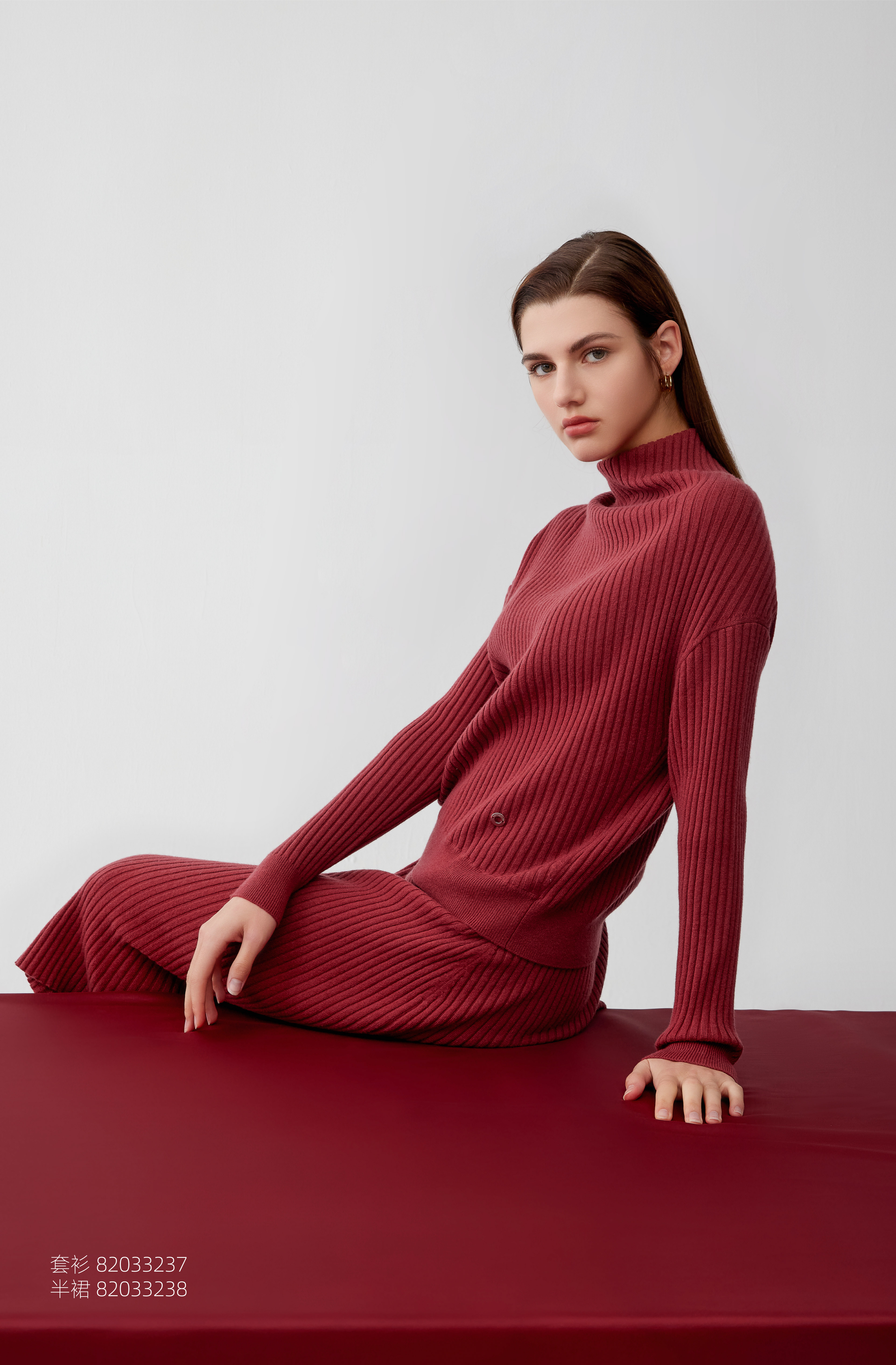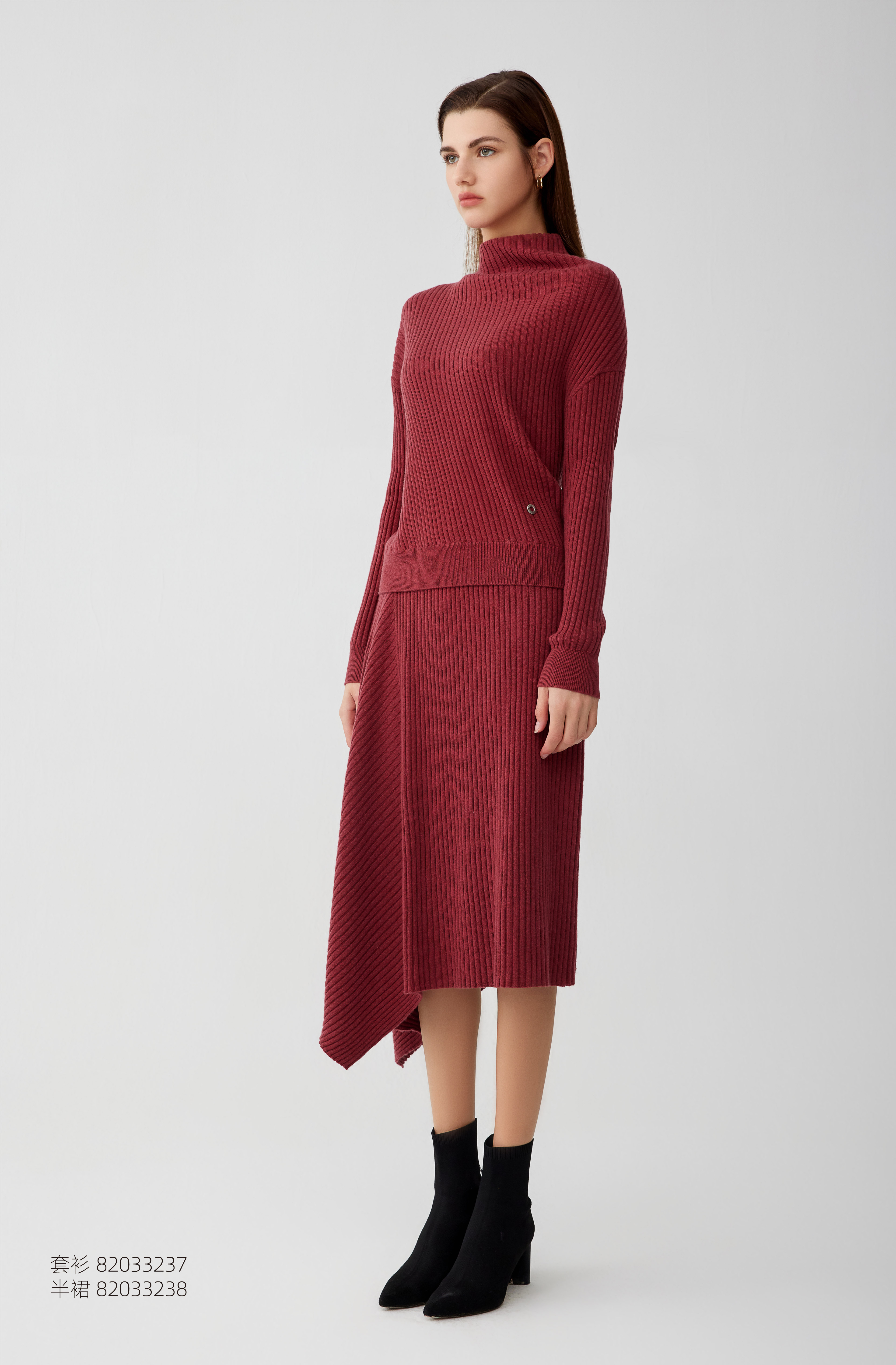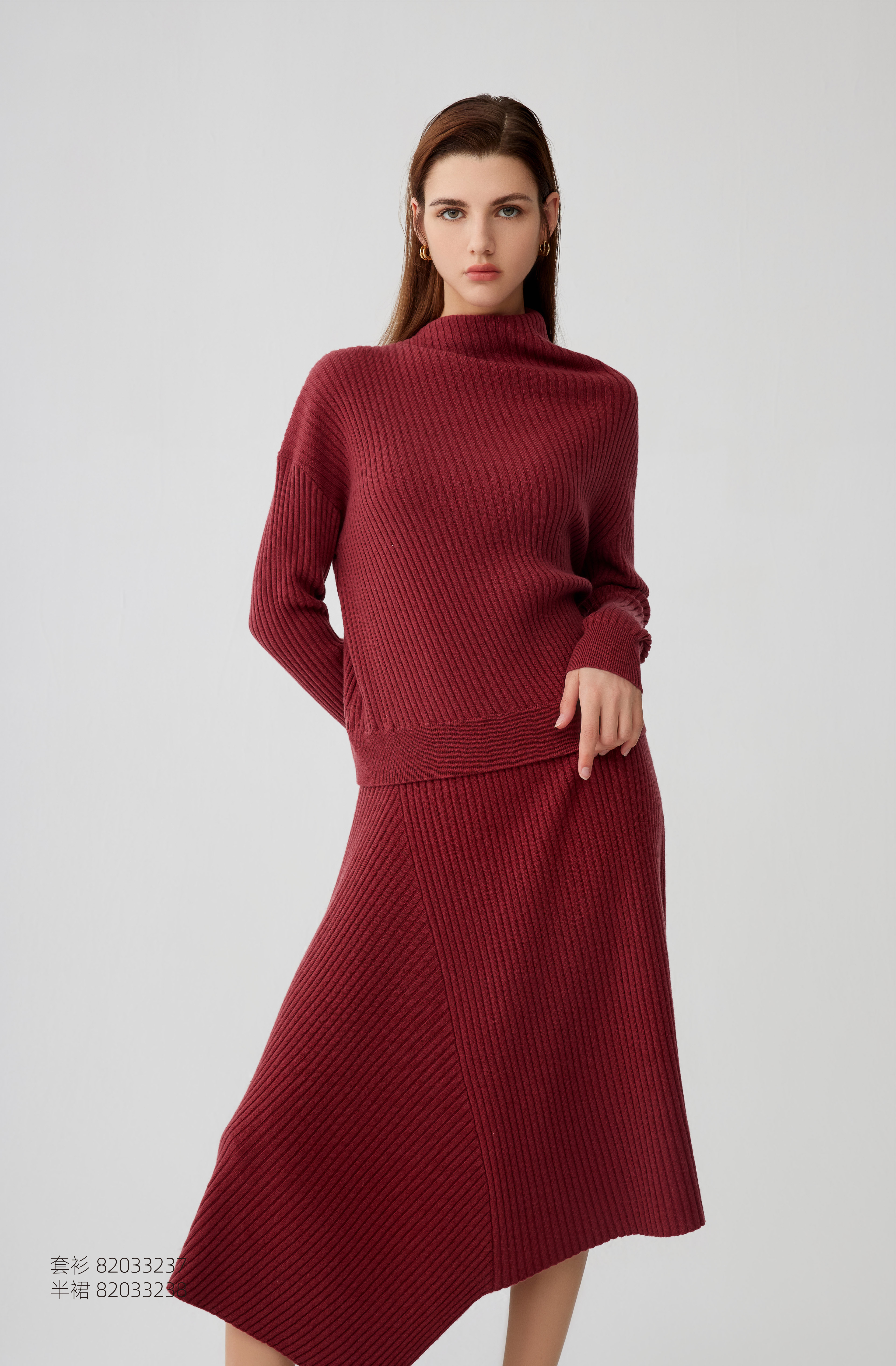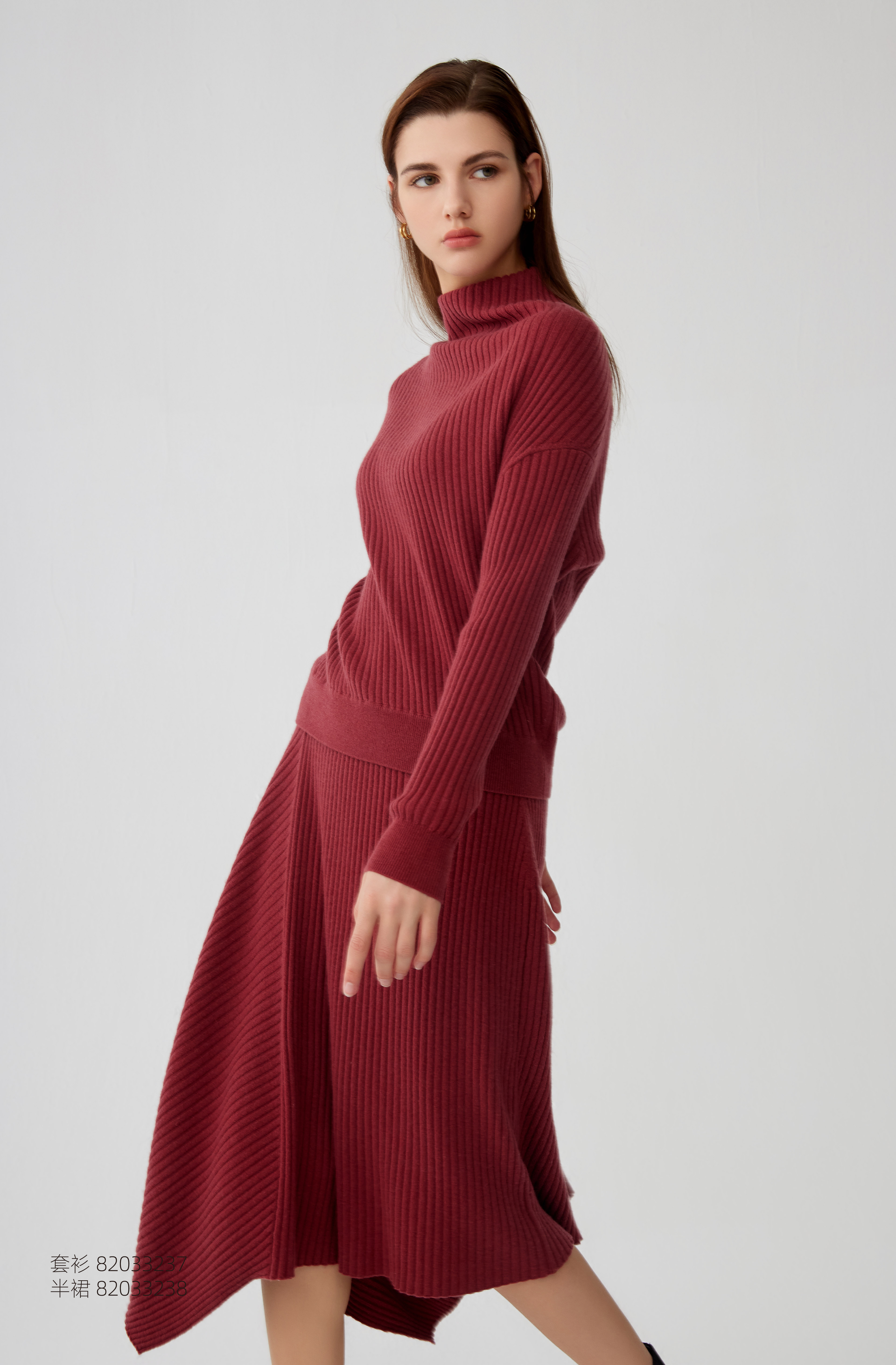 【纯羊绒针织套装】羊绒世家23年秋冬新品女士100%山羊绒不对称抽条毛衣