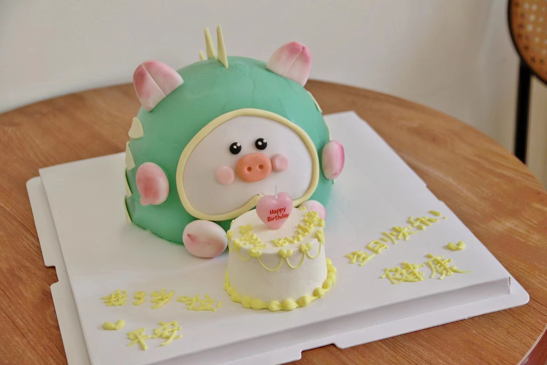 绿色lulu猪-翻糖造型蛋糕