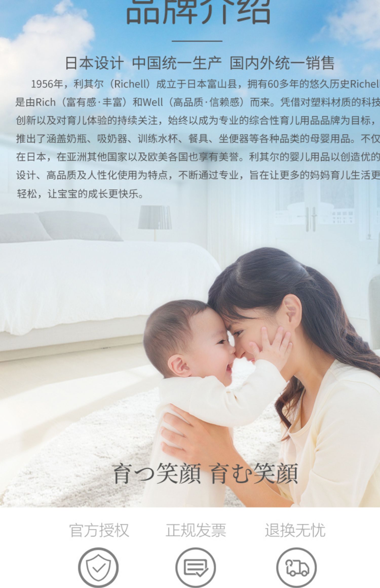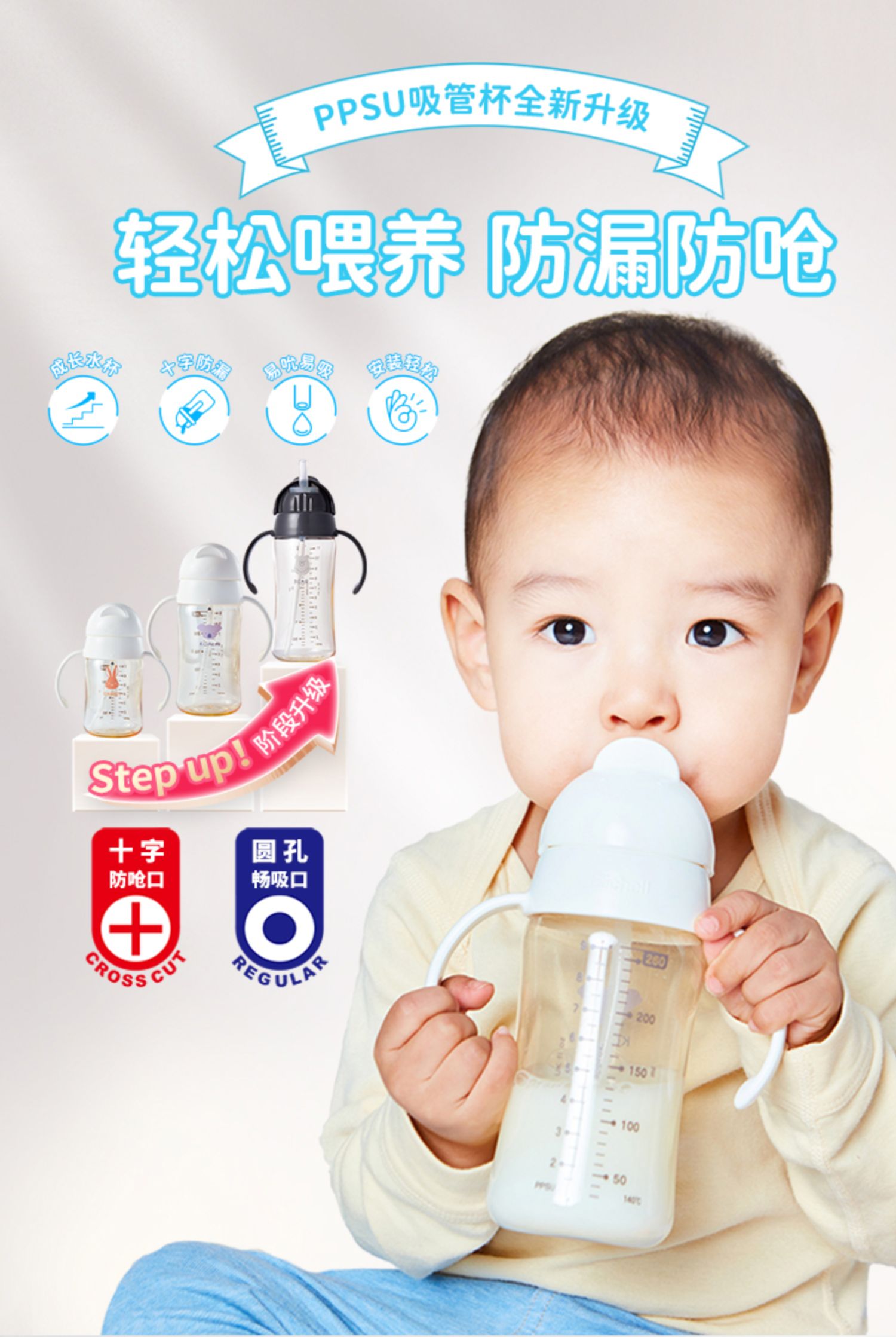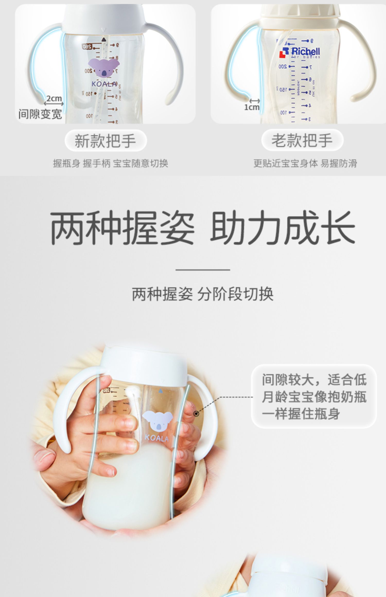 Richell利其尔吸管杯儿童喝奶水杯婴儿宝宝奶瓶PPSU防摔学饮杯LQE-202121-202176