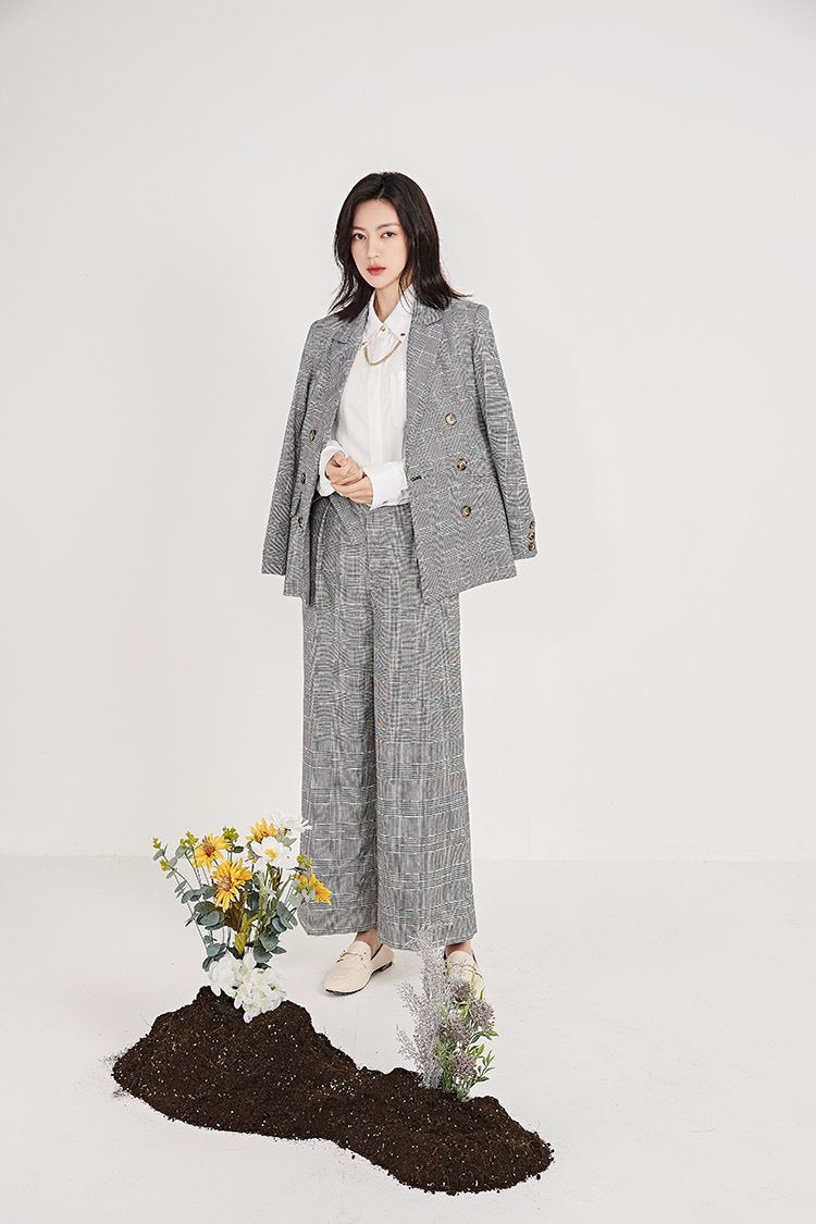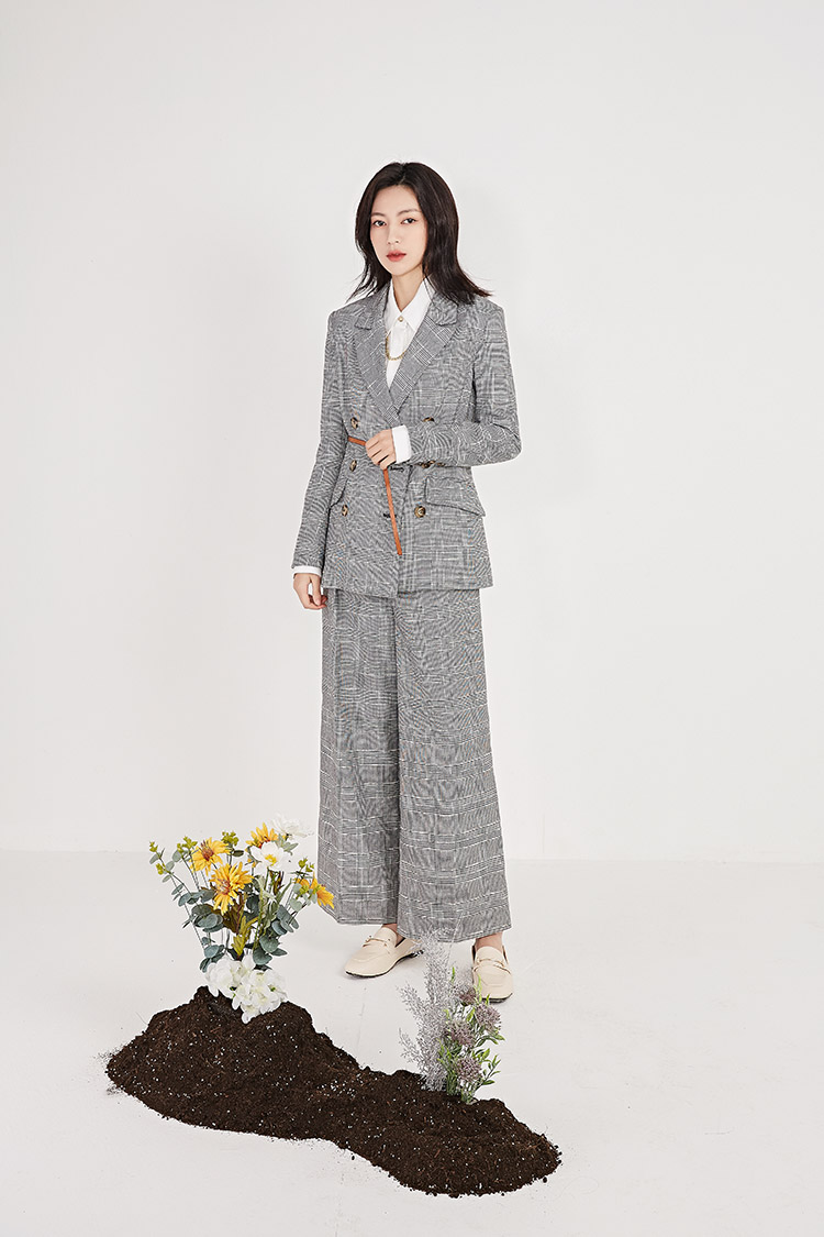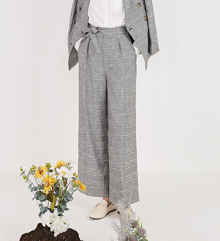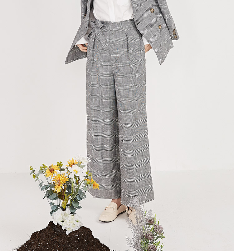 NUTS春秋时尚简约气质通勤灰色格子直筒西装长裤女211073016B