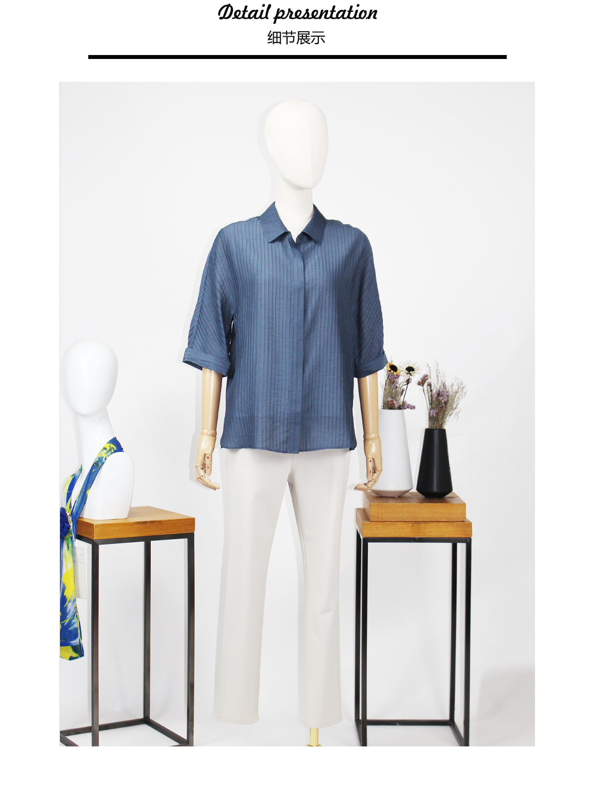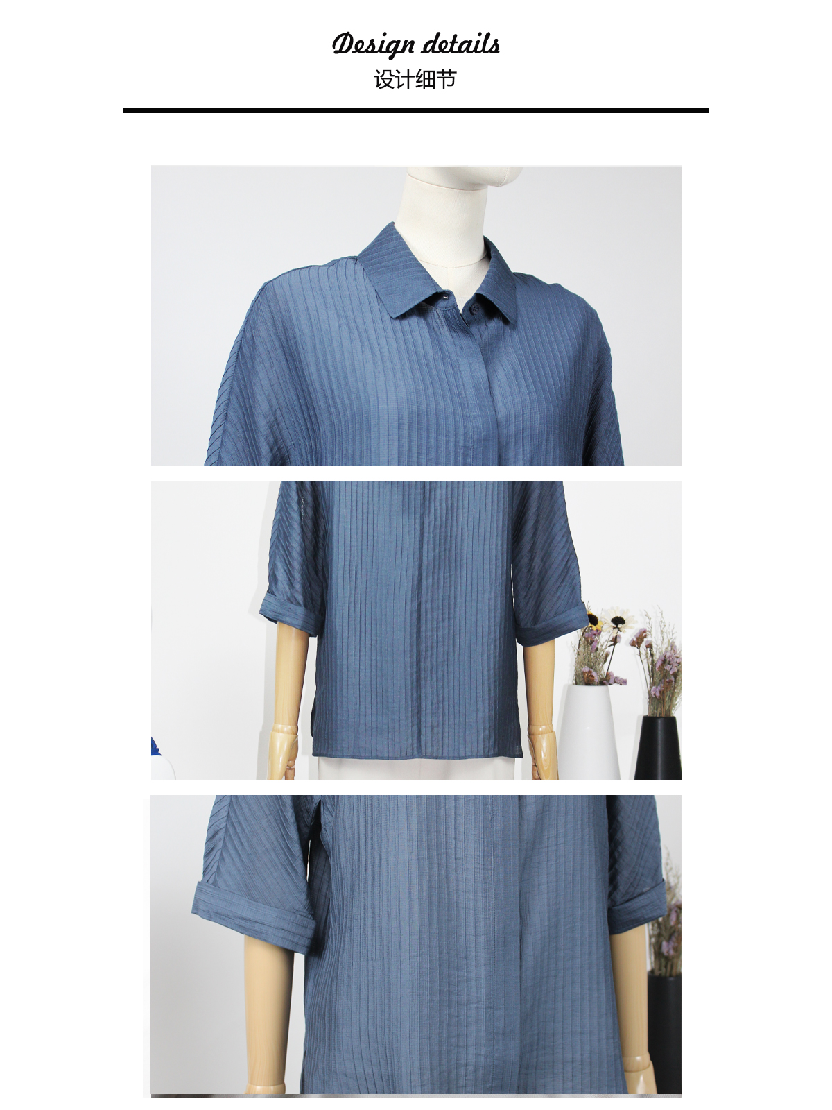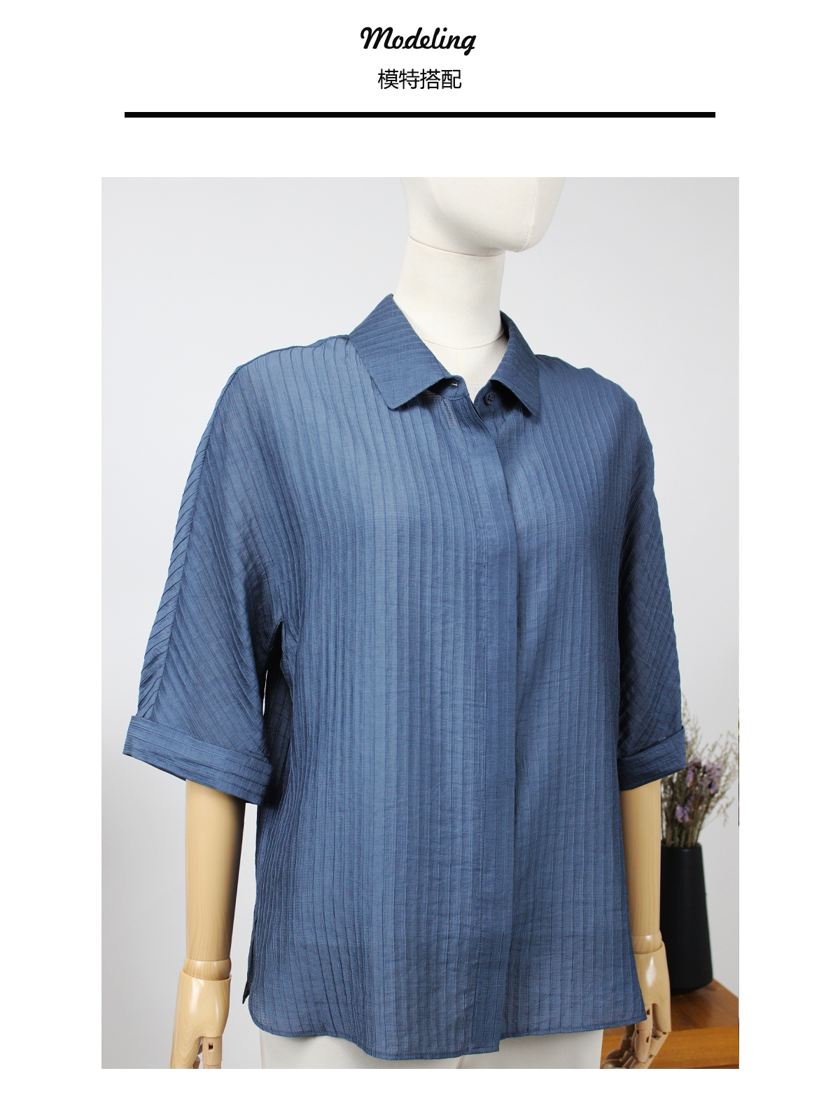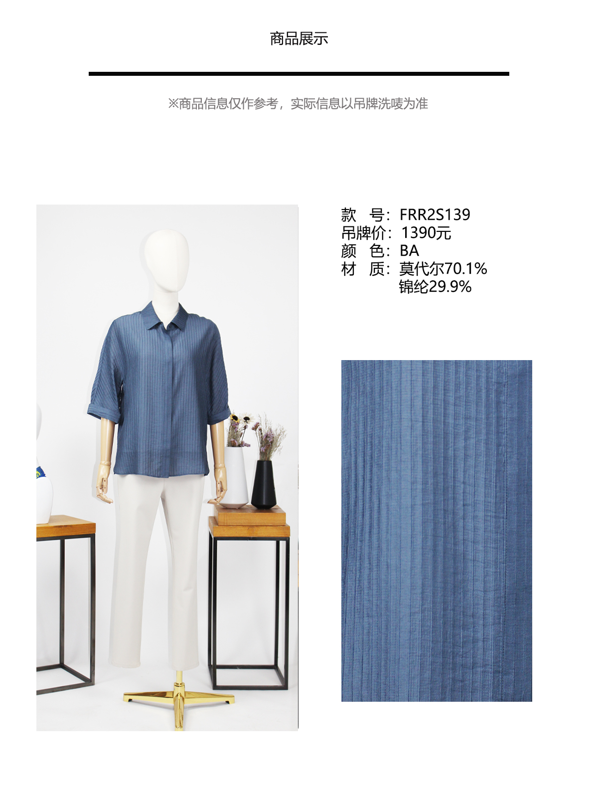 FOCALS福柯斯春夏新款直筒休闲连肩袖五分袖褶皱衬衫FRR2S139BA